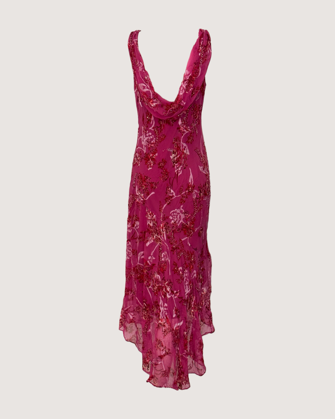 Luxurious 2000's Designer Silk-Blend Pink Floral Beaded Dress (M-L)