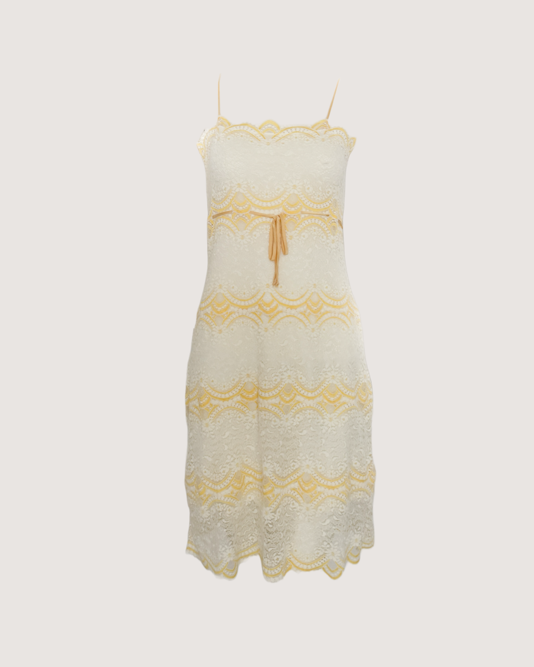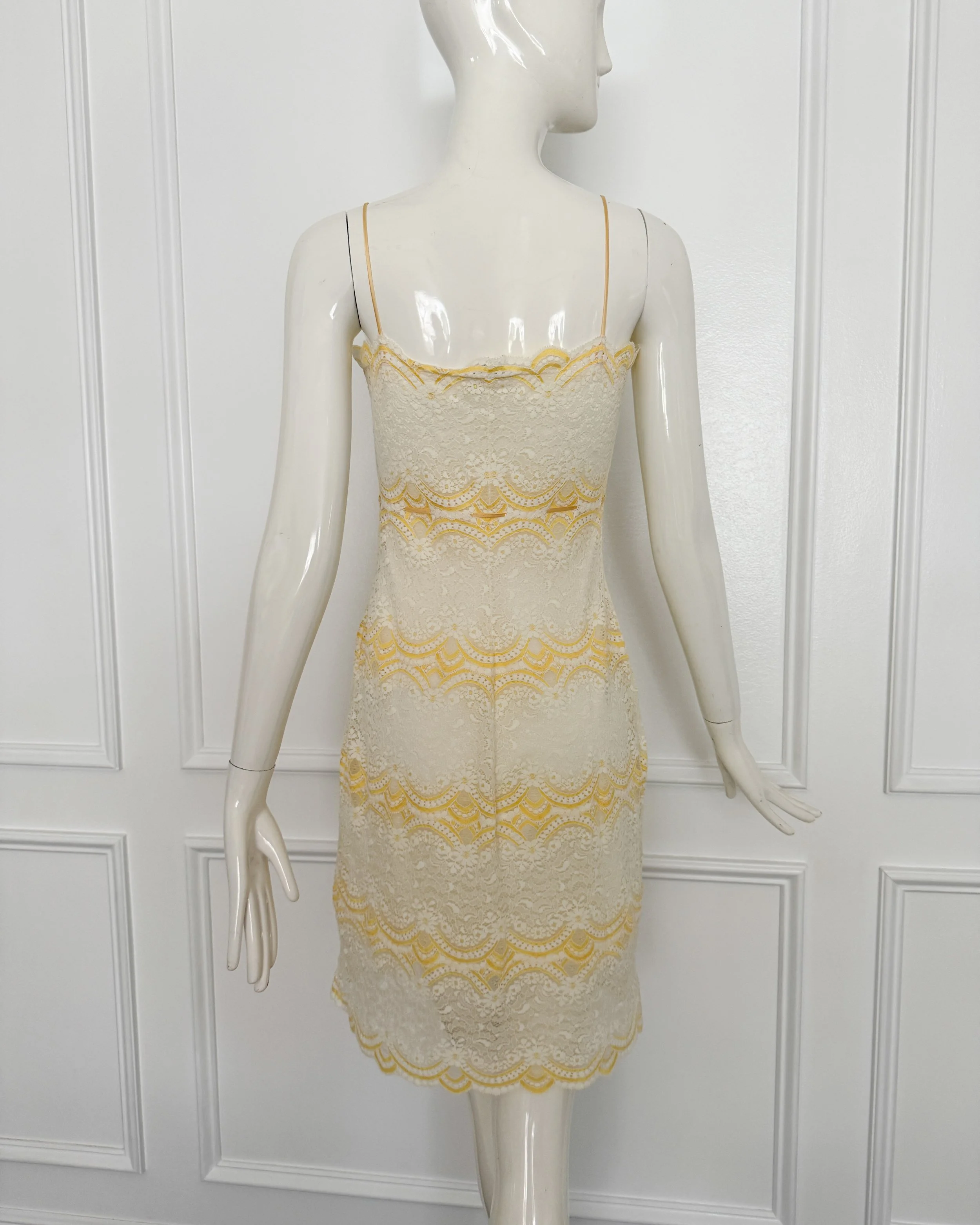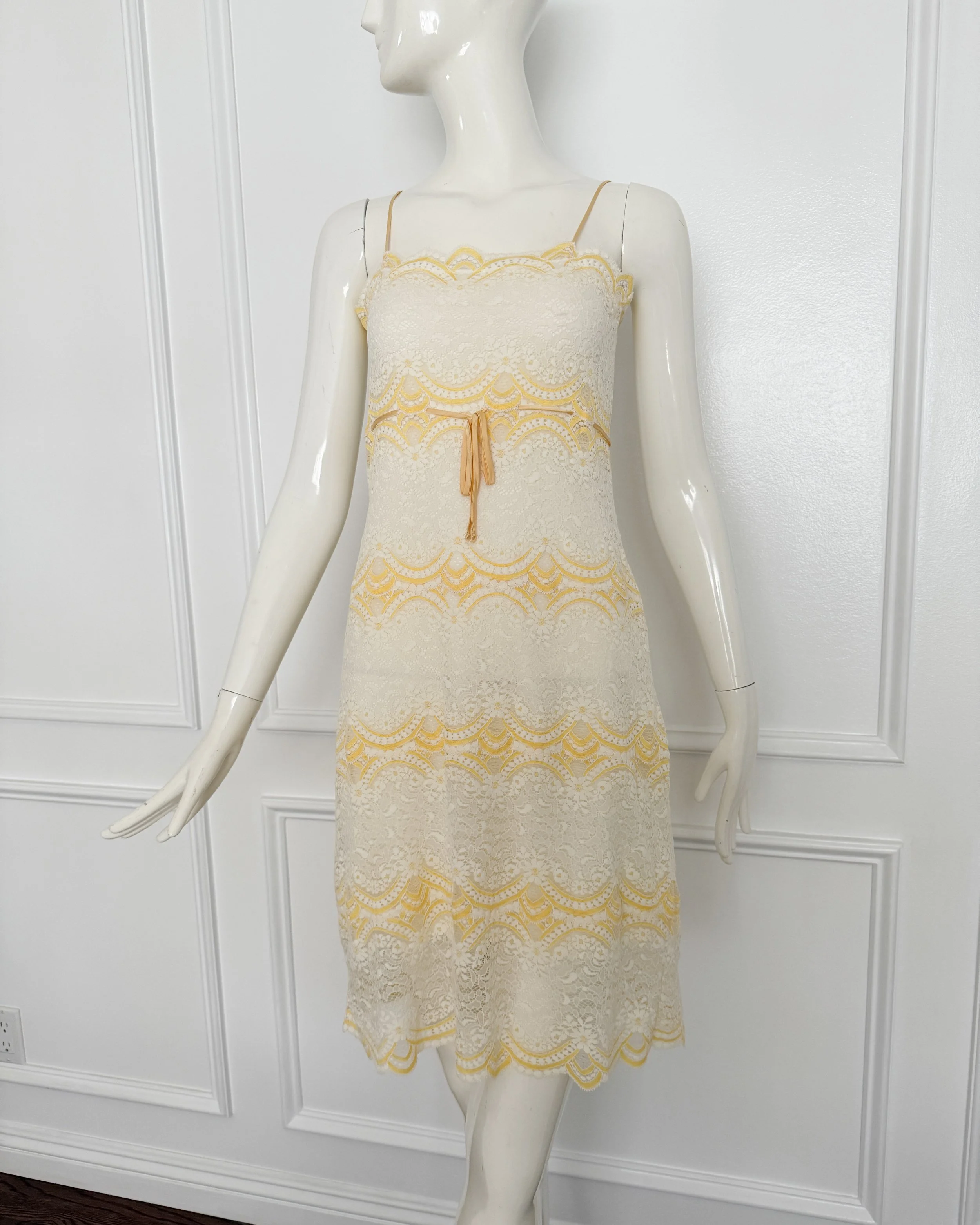 2000's Designer White & Yellow Floral Crochet Lace Dress (XS)