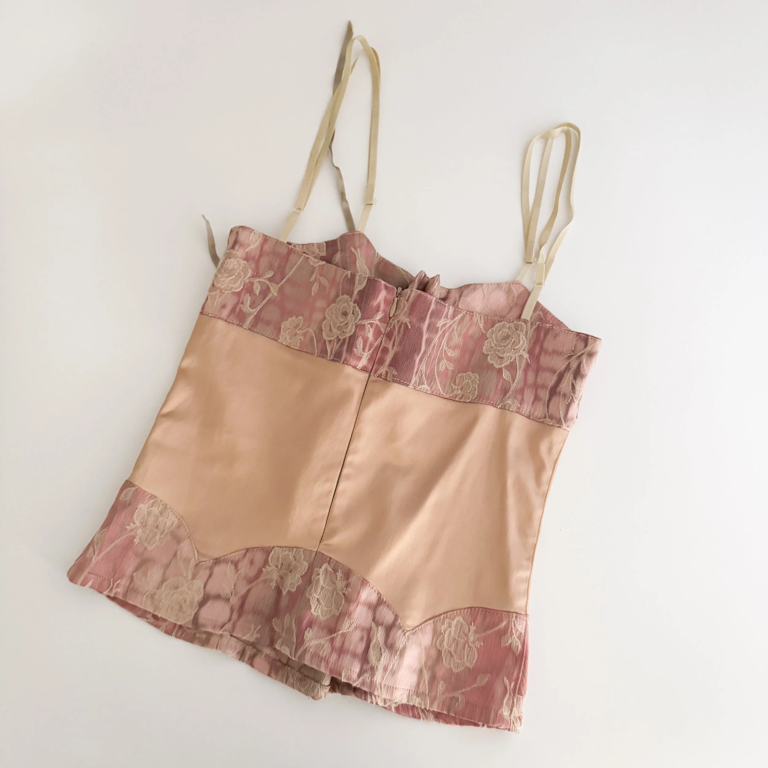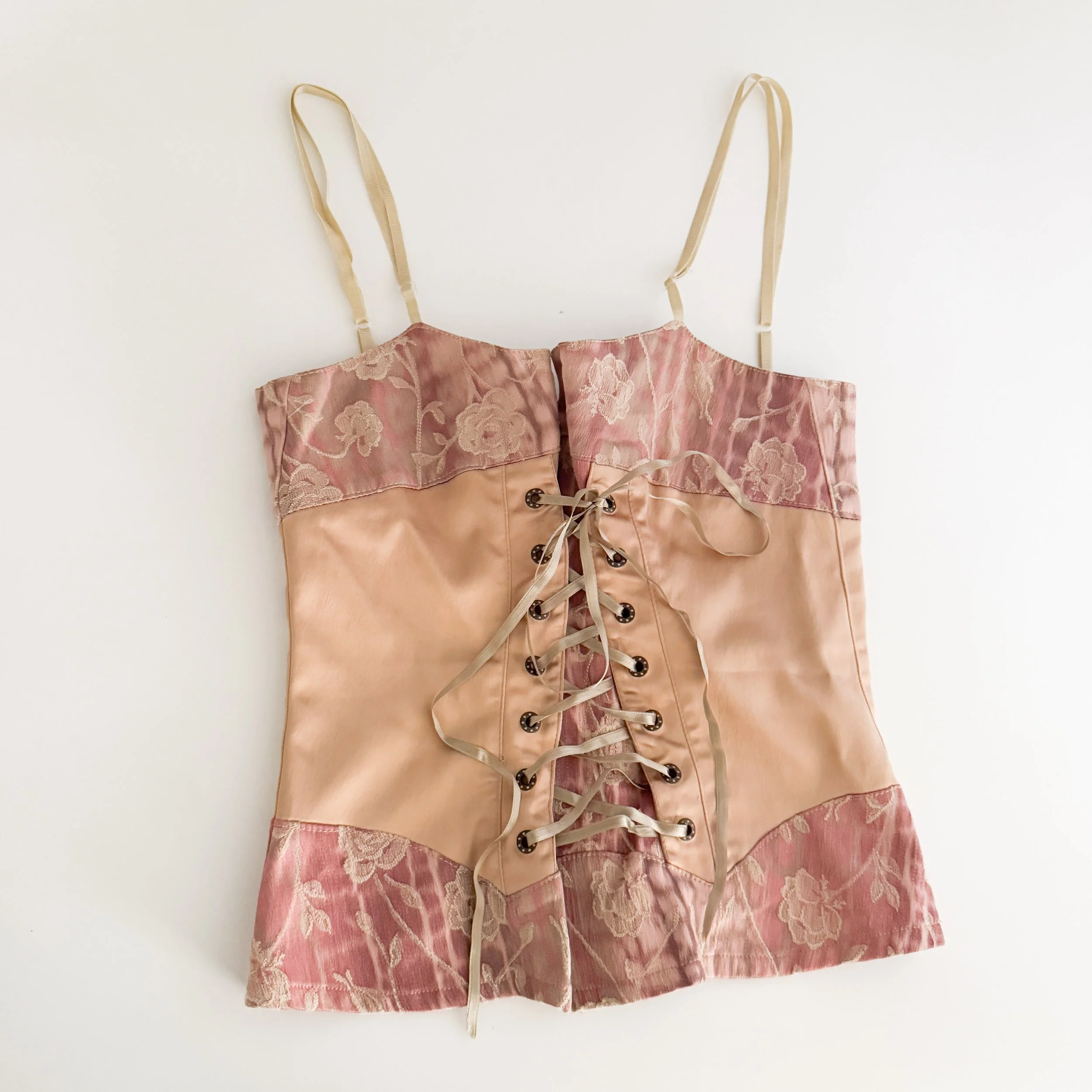 French 2000's Pink Floral Lace-Up Corset Bodice (S-M)