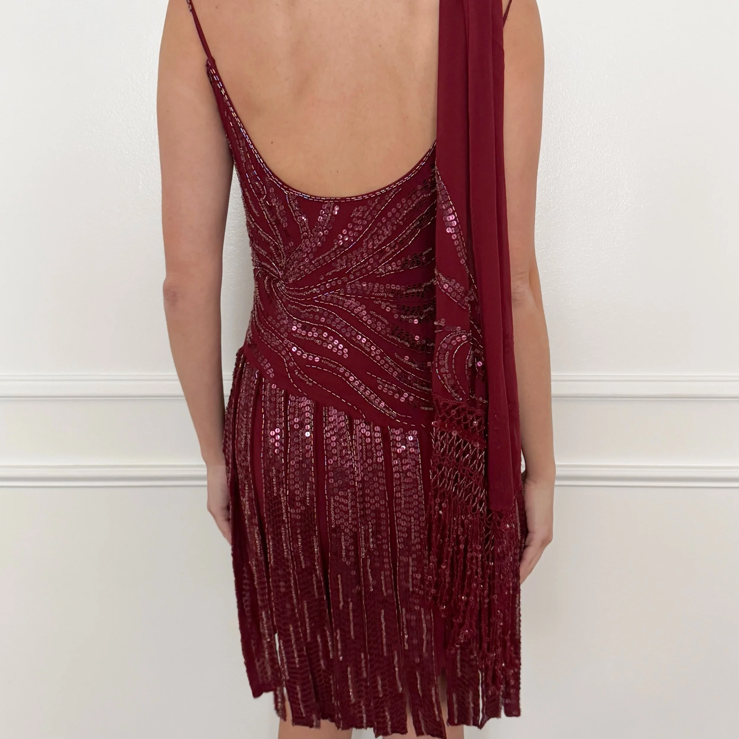 Please note that this garment is intricately beaded and may have small loose threads and/or small instances of missing sequins that are only visible upon very close inspection.