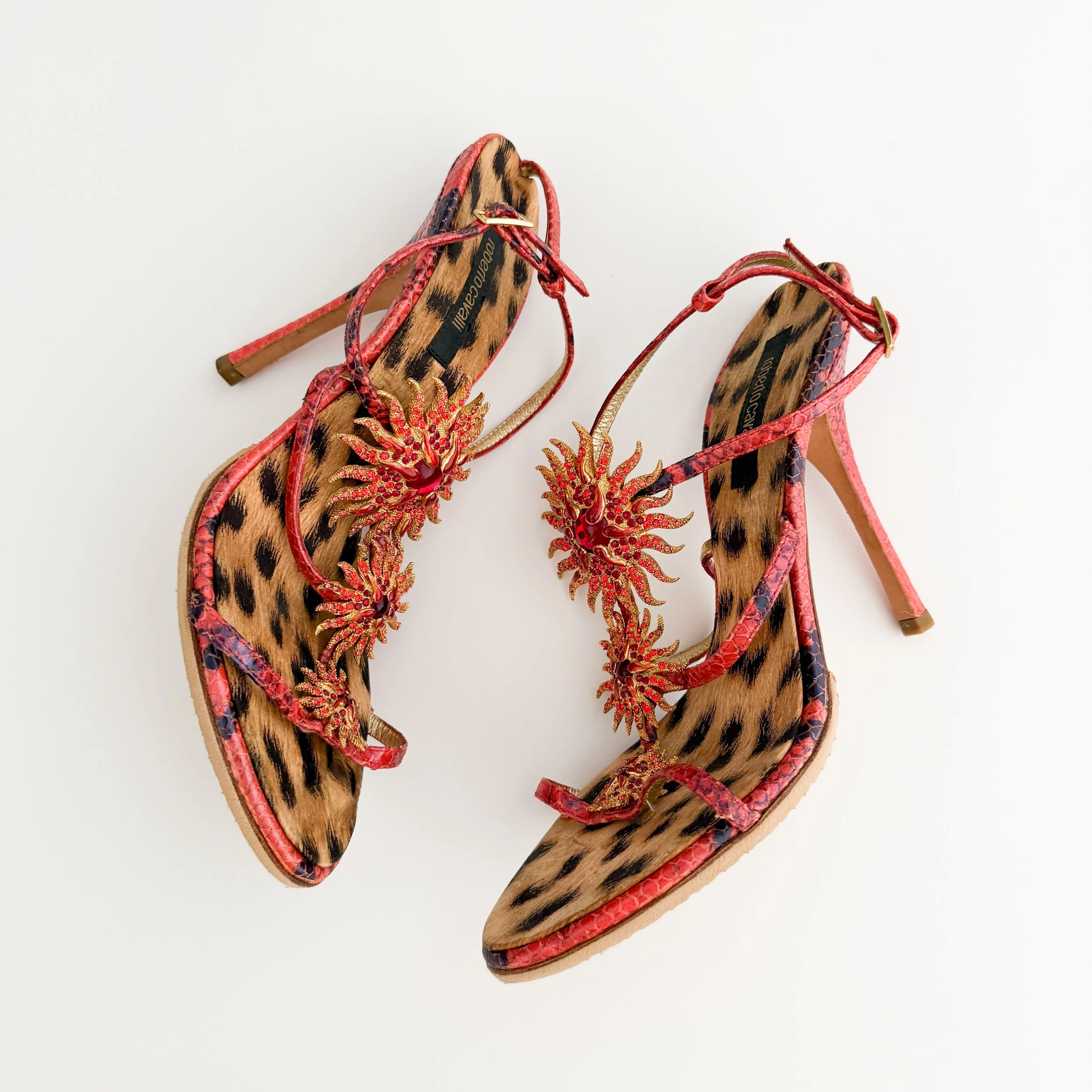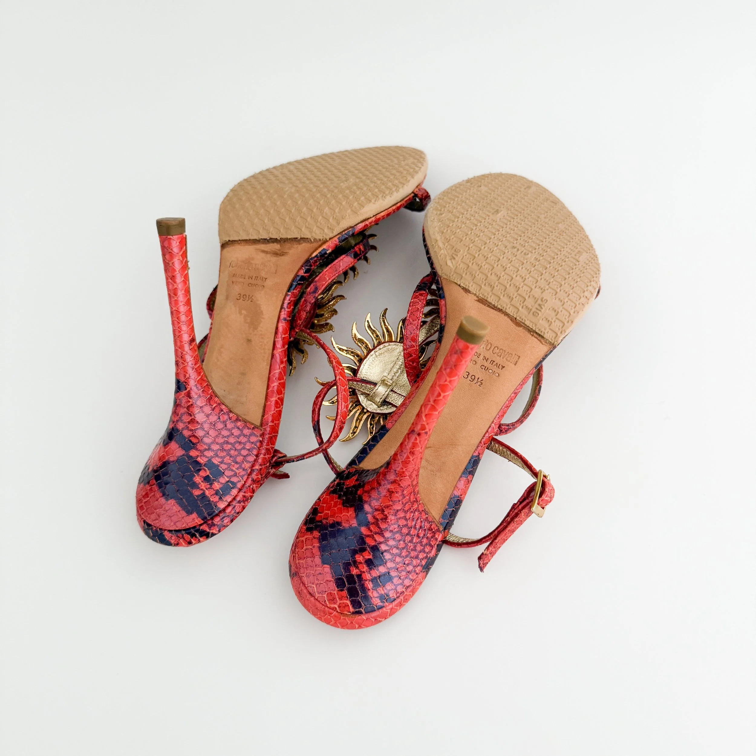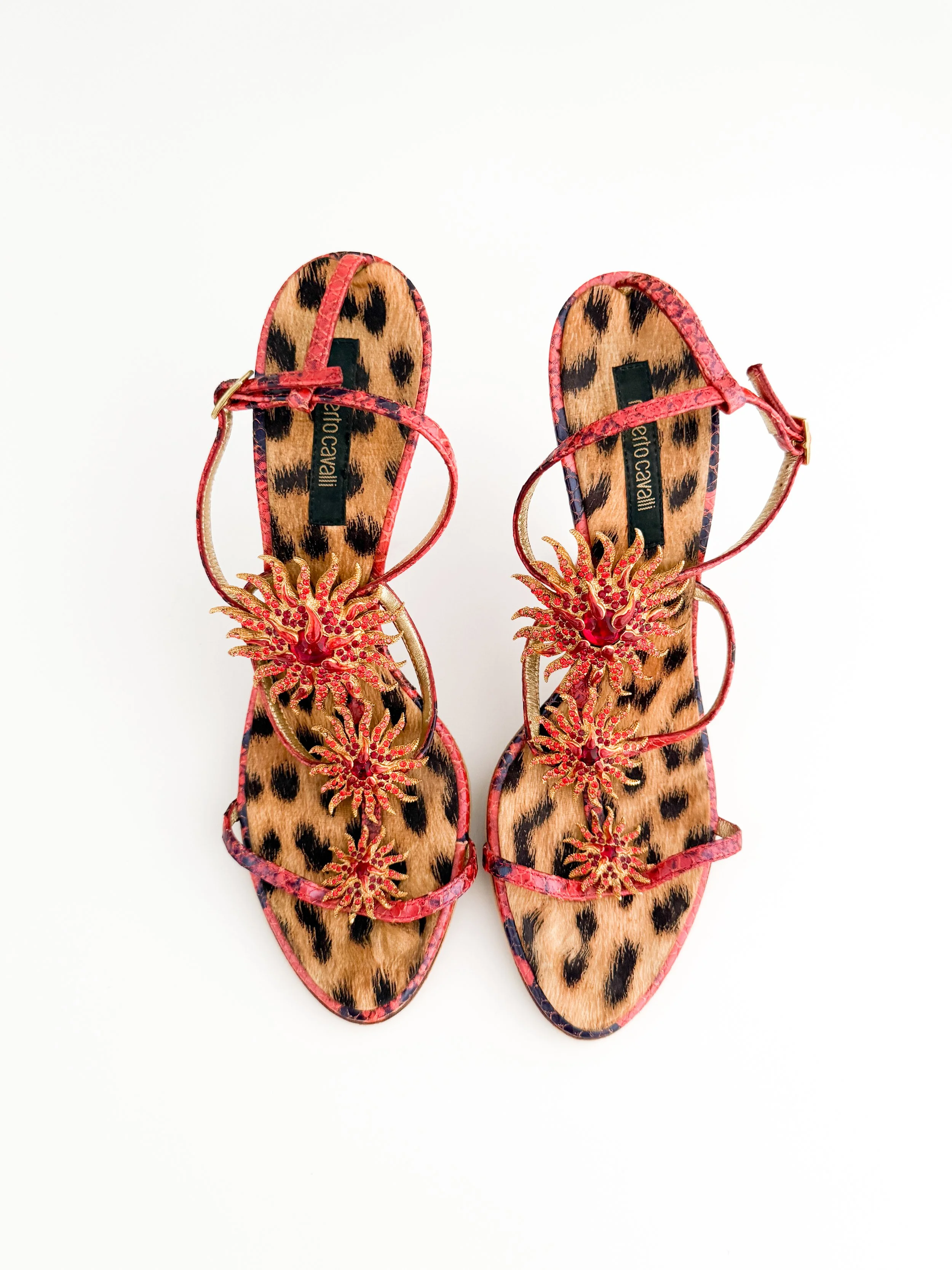 The most chic sun sandal heels from iconic luxury designer brand Roberto Cavalli. An archival pair of heels perfect for the vintage designer collector. A rare find. Perfect for the summer season.