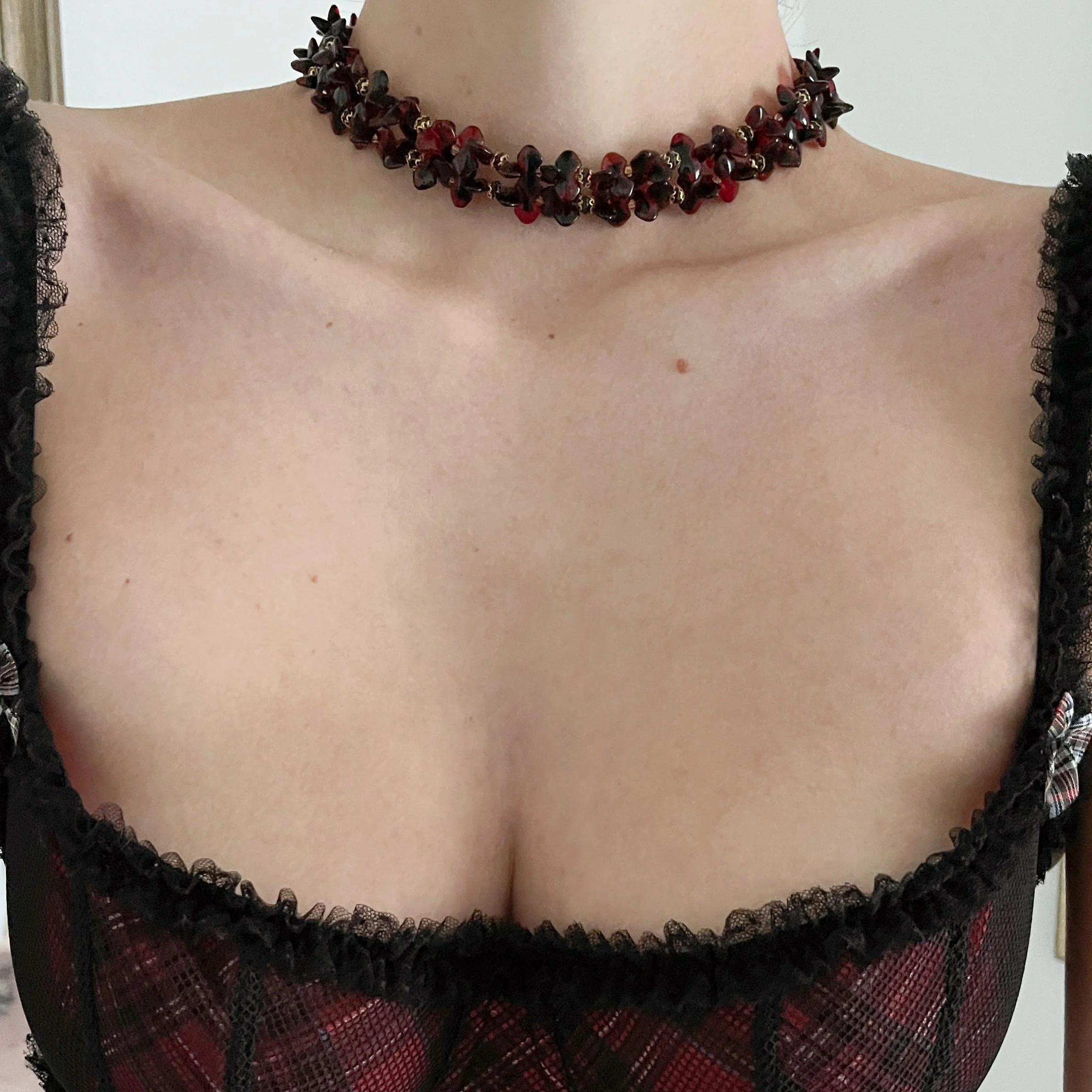 Christian Dior RARE 1967 Dark Red Crystal Beaded Layered Choker Necklace