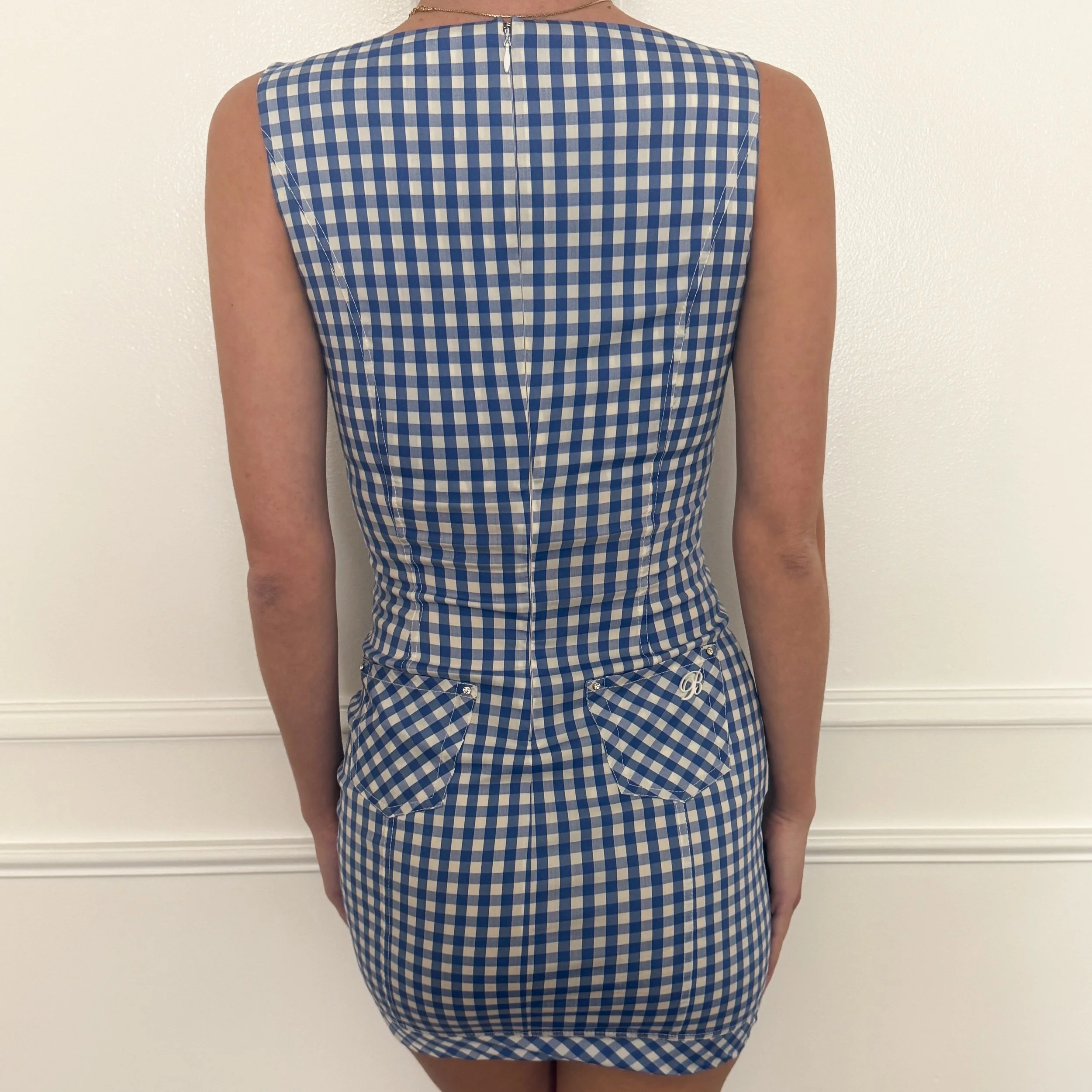Blumarine Blue & White Gingham Rhinestone Mini Dress (S-M)
