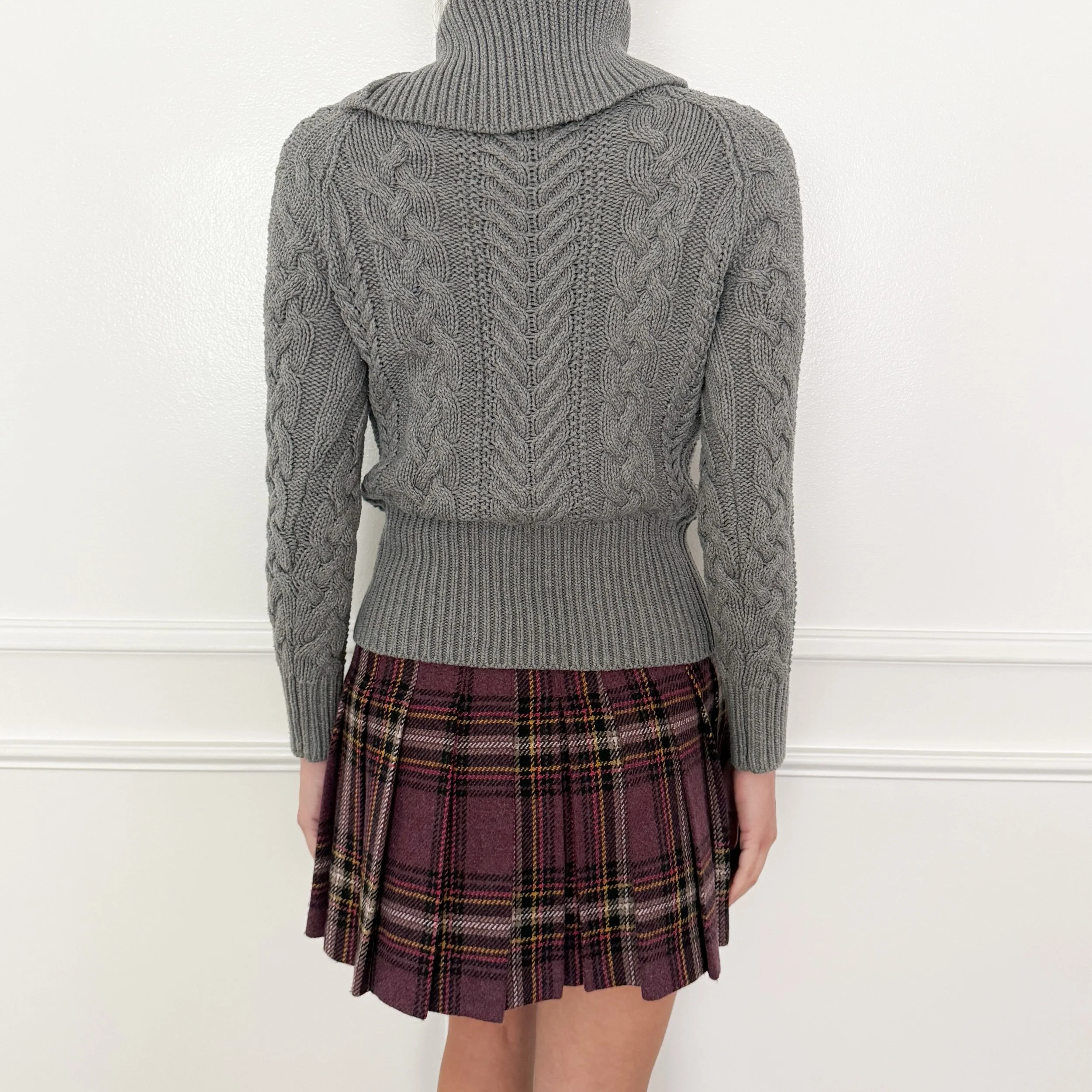 Burberry Iconic Nova Mulberry Pleated Wool Mini Skirt (S-M)