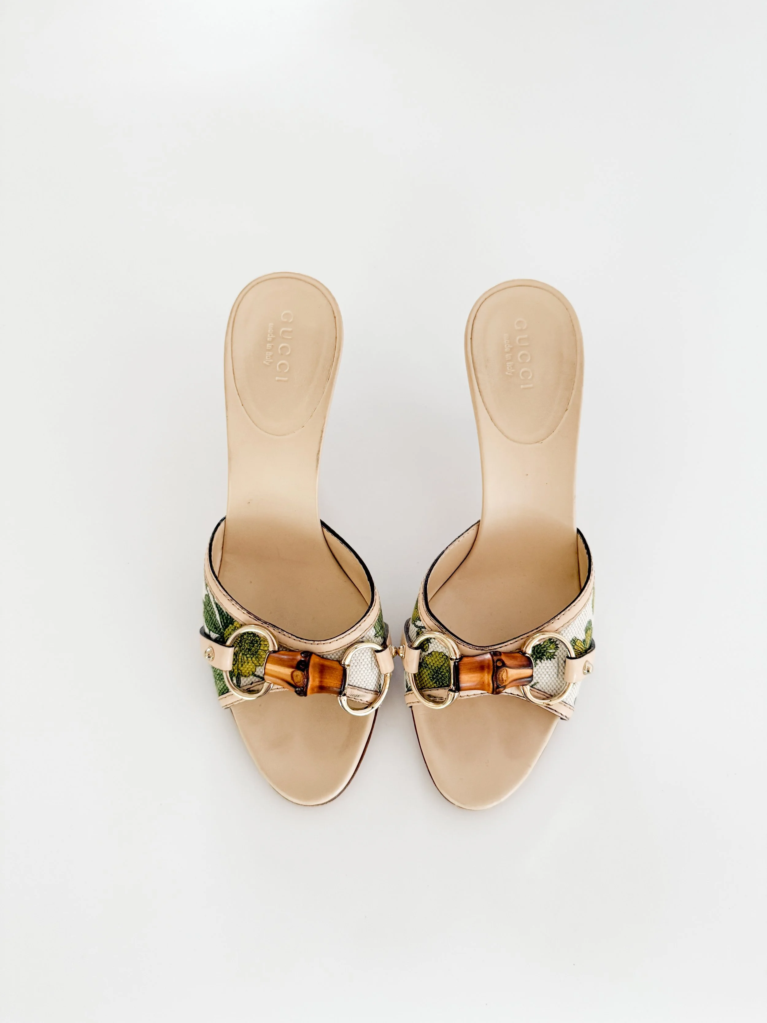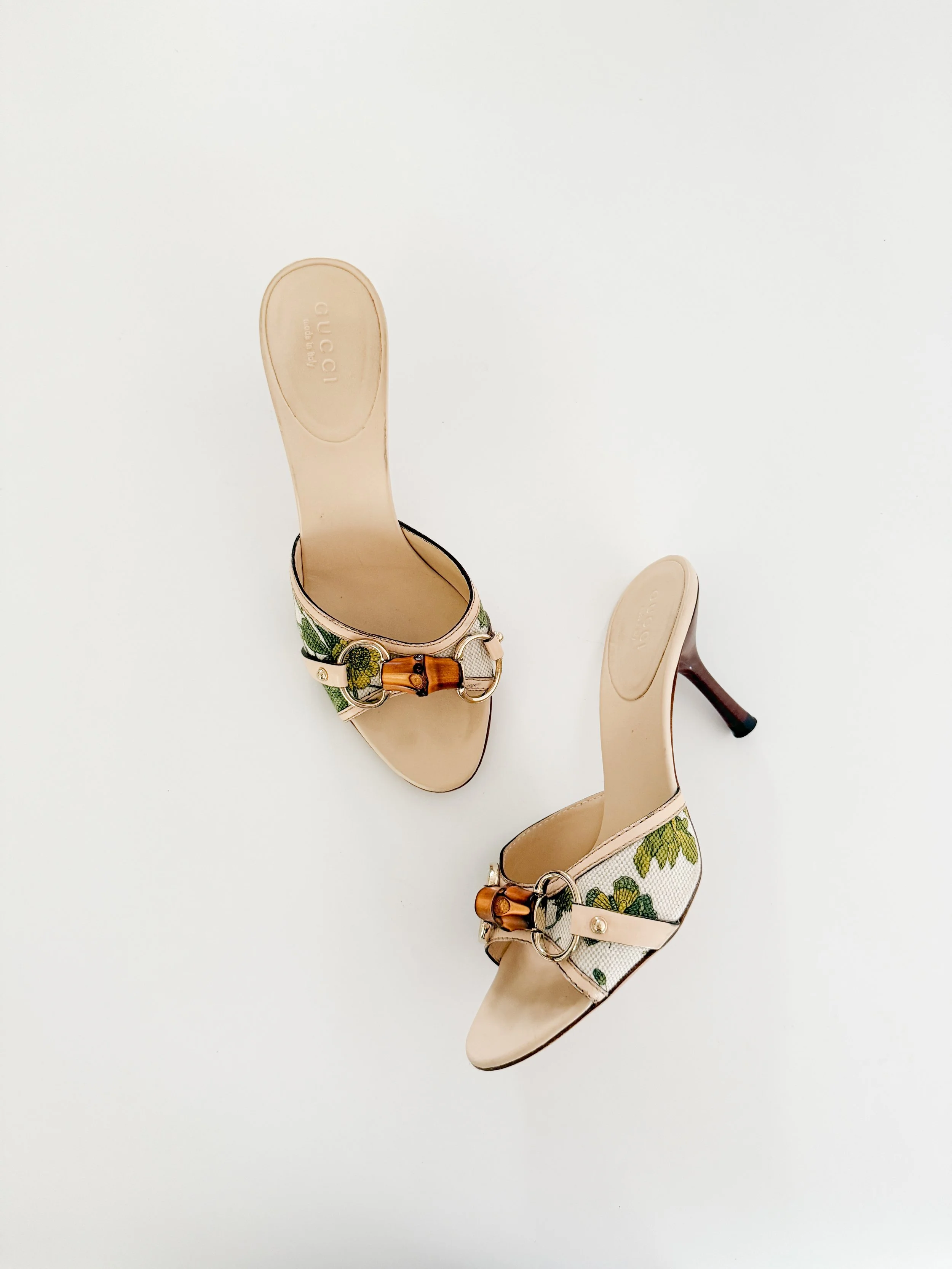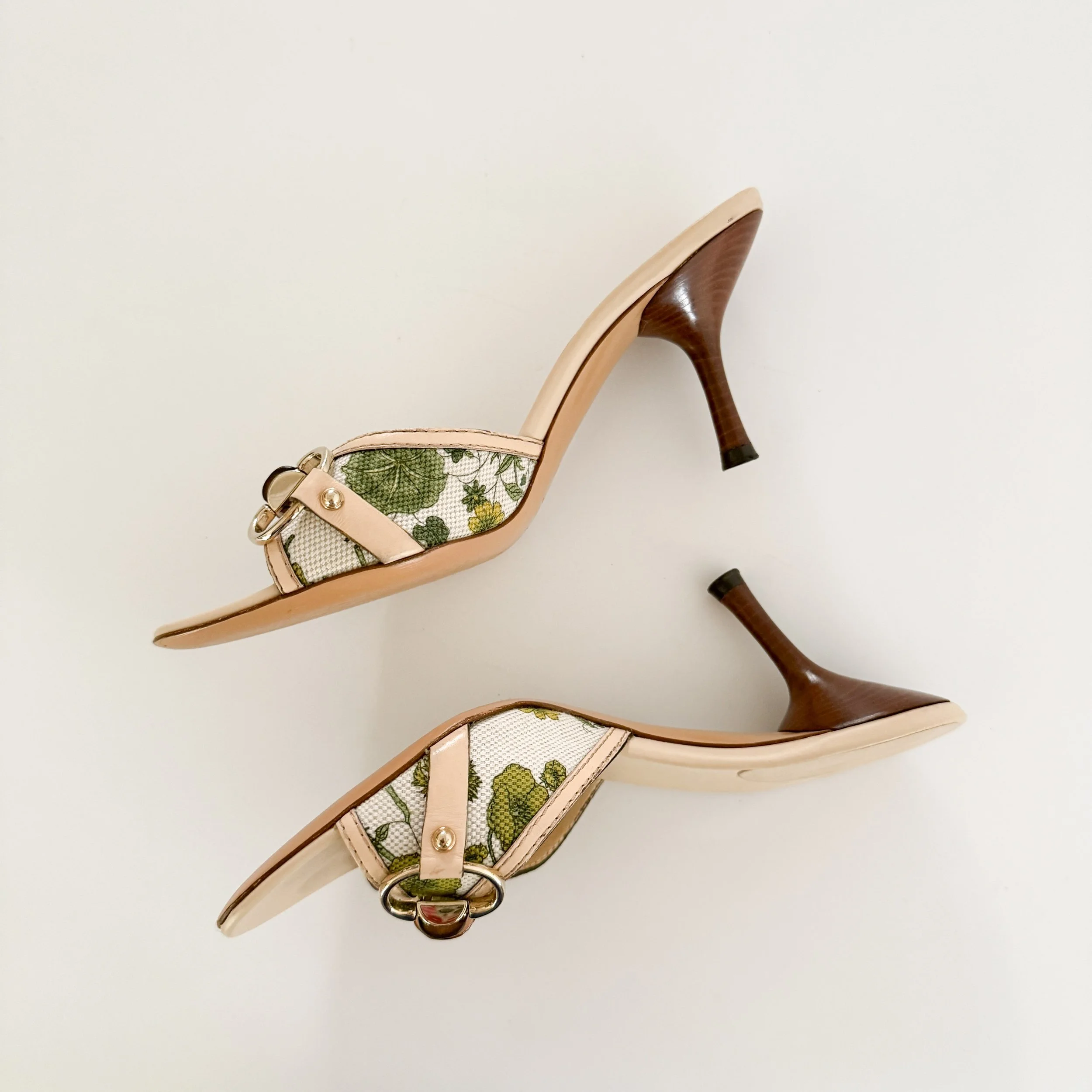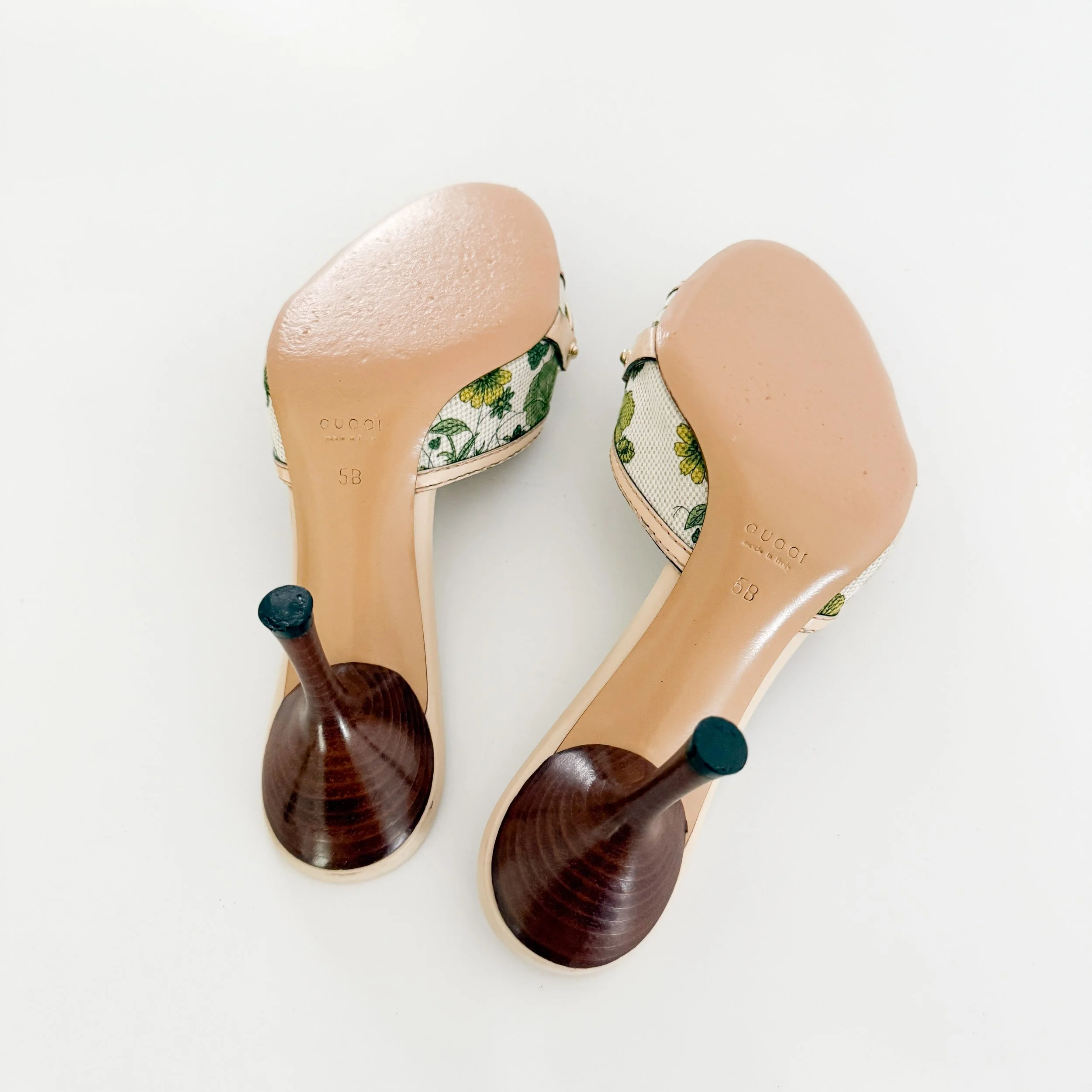 Gucci Iconic Horsebit Butterfly Floral Sandal Heels (US 5 B)