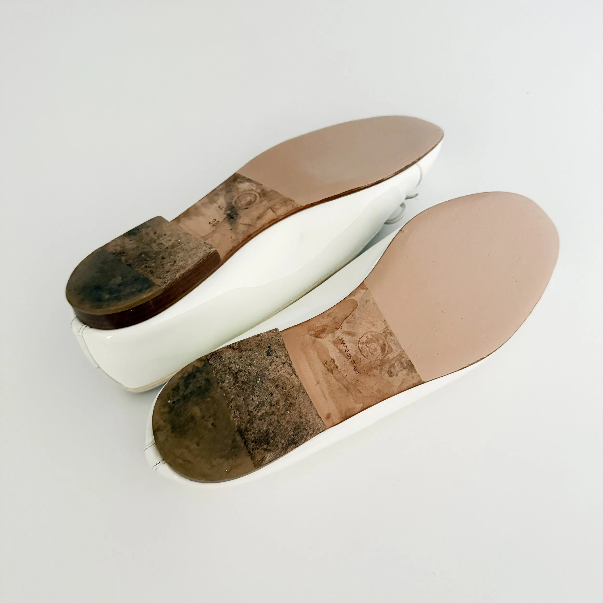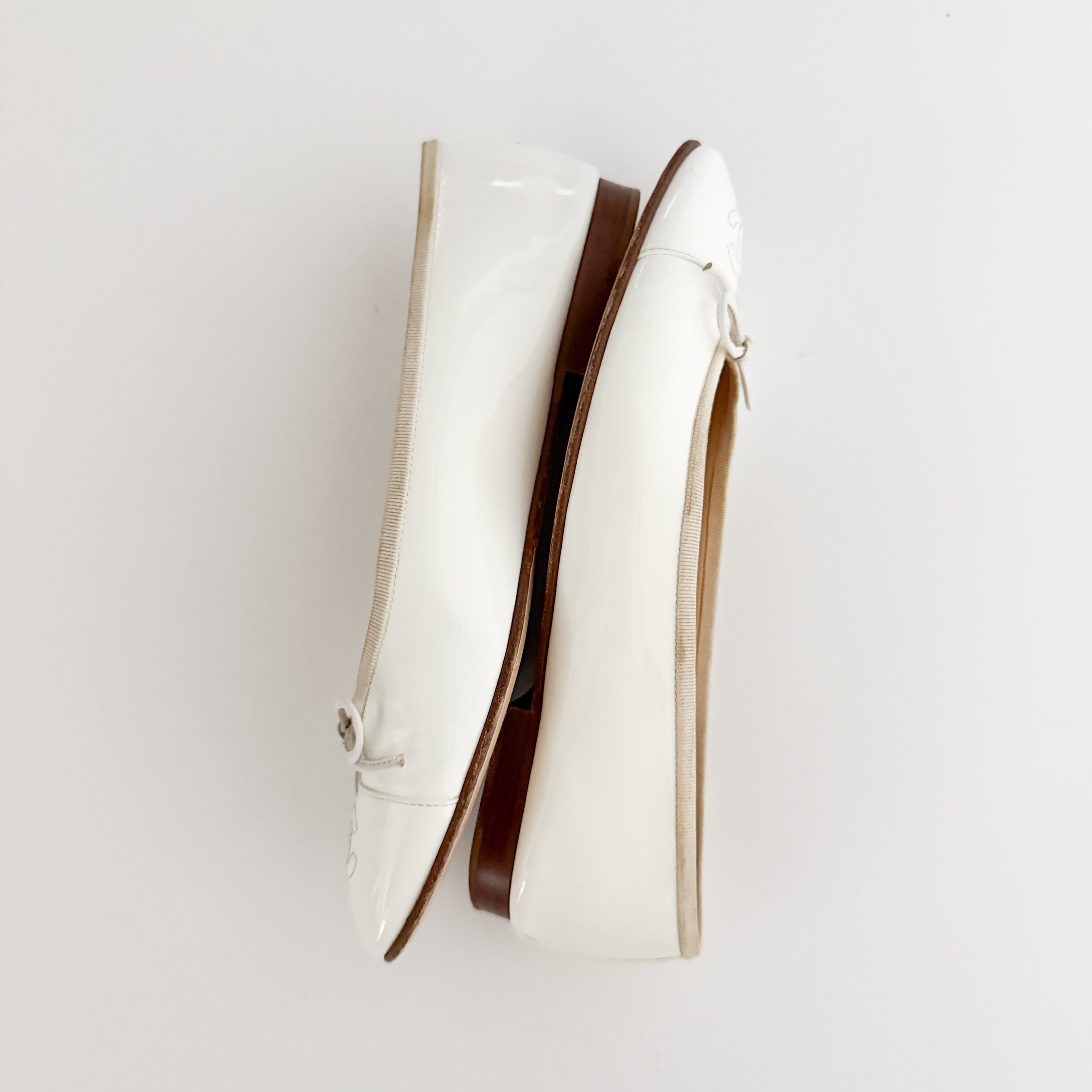 Chanel Iconic "CC" White Toe Cap Patent Leather Ballet Flats (US 8 / IT 38)