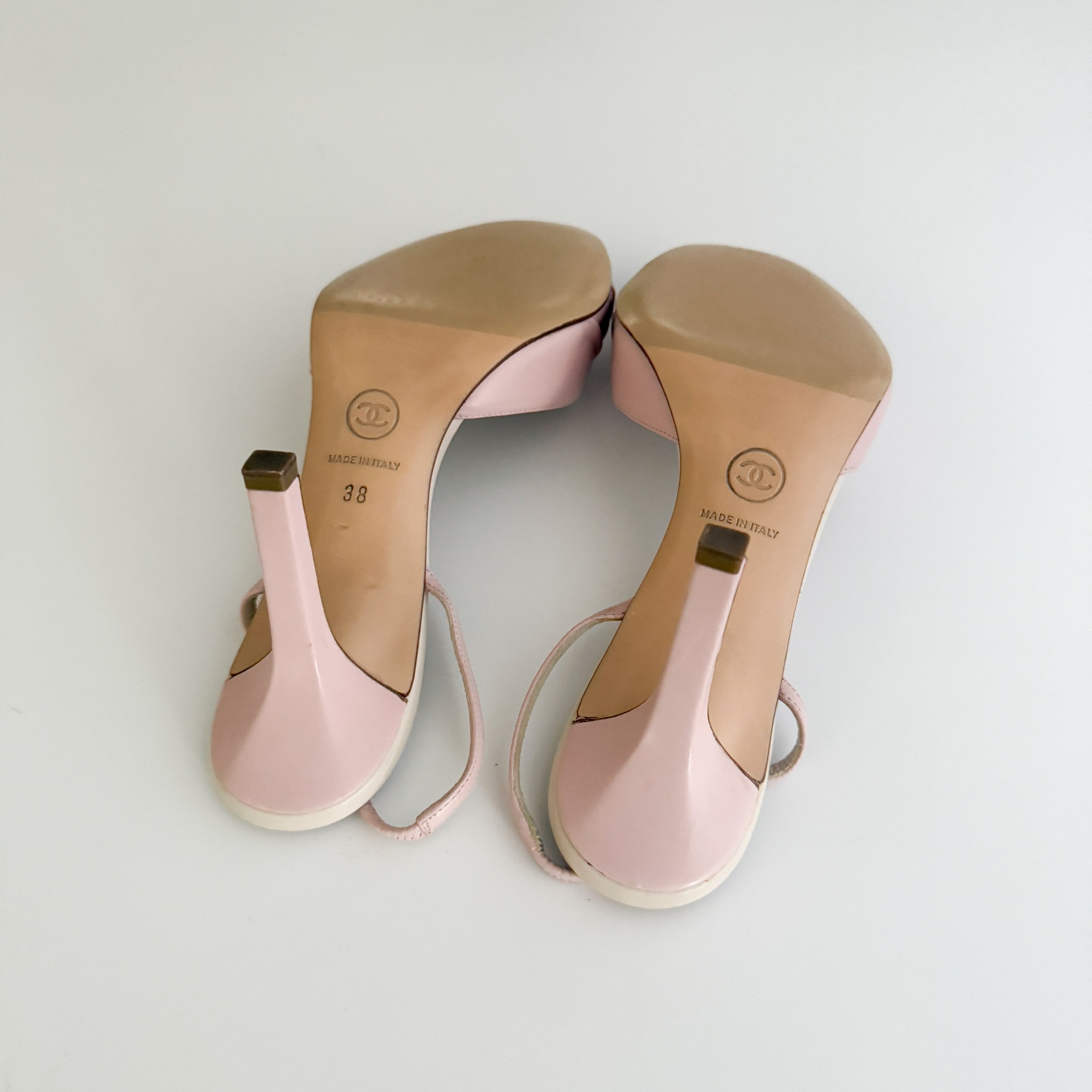 Chanel Iconic "CC" Faux Pearl Soft Pink Slingback Heels (US 8 / IT 38)