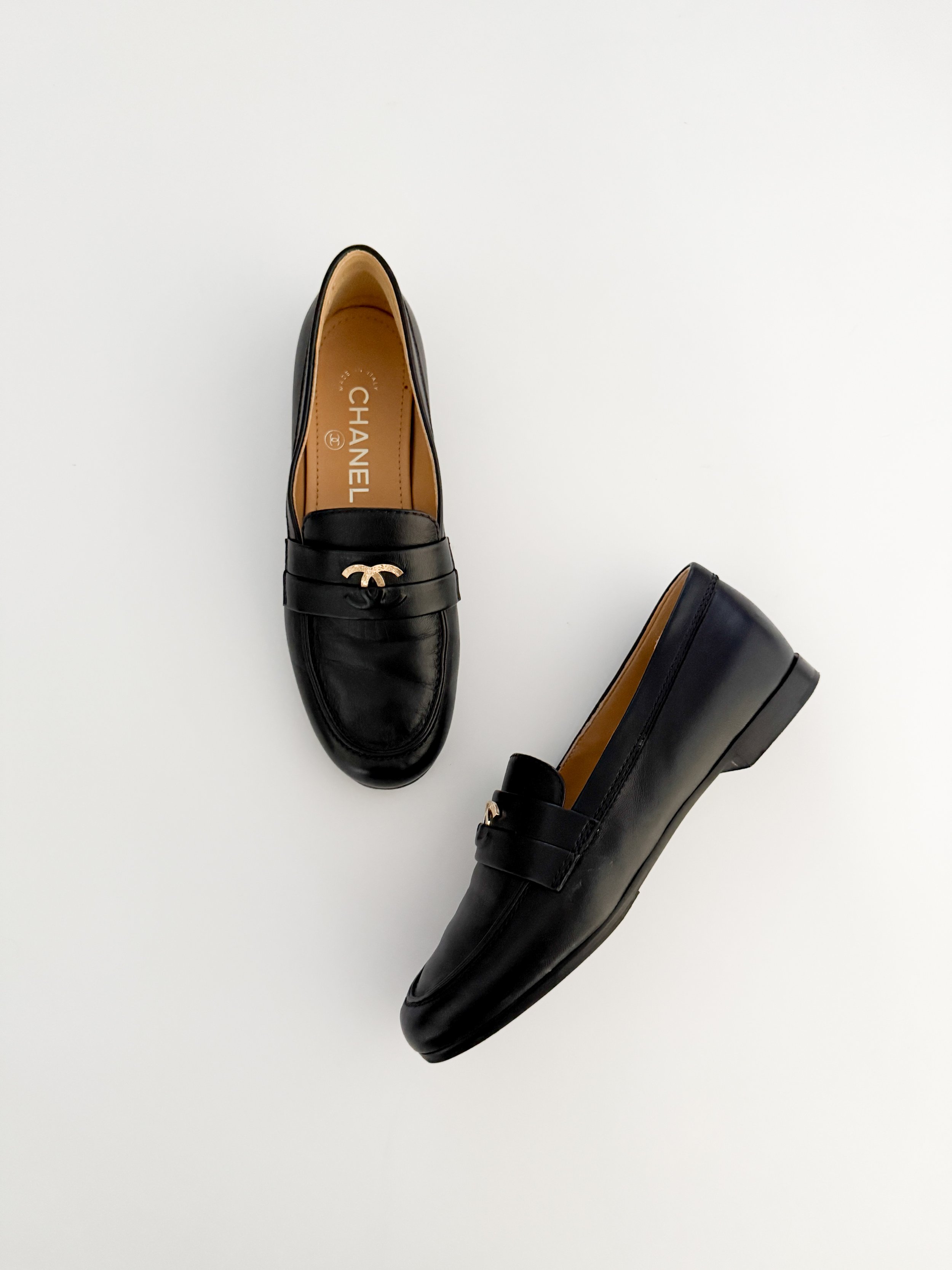 Chanel Iconic "CC" Black Leather Loafers (IT 35)