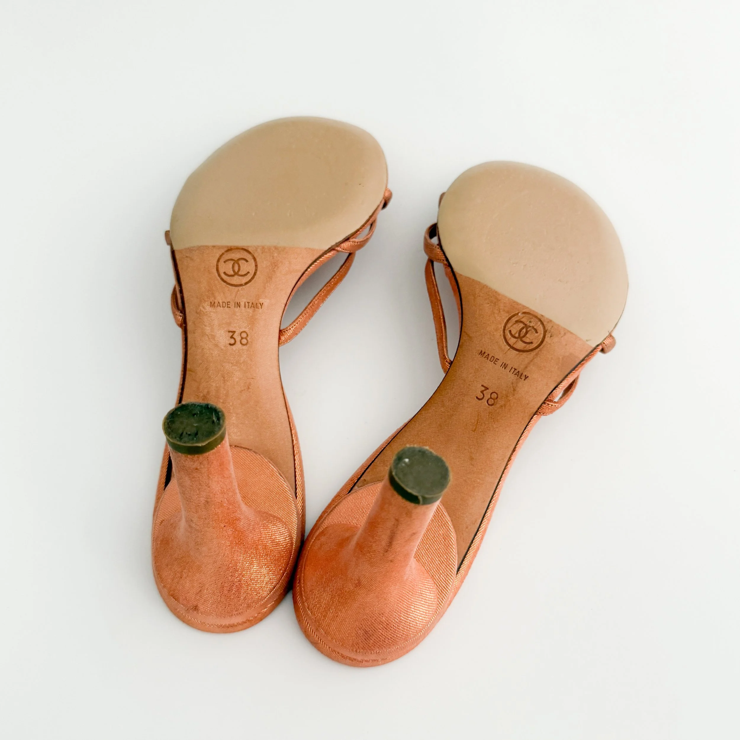 Chanel Vintage "CC" Pearlescent Shell Sandal Heels (US 7.5 / IT 38)