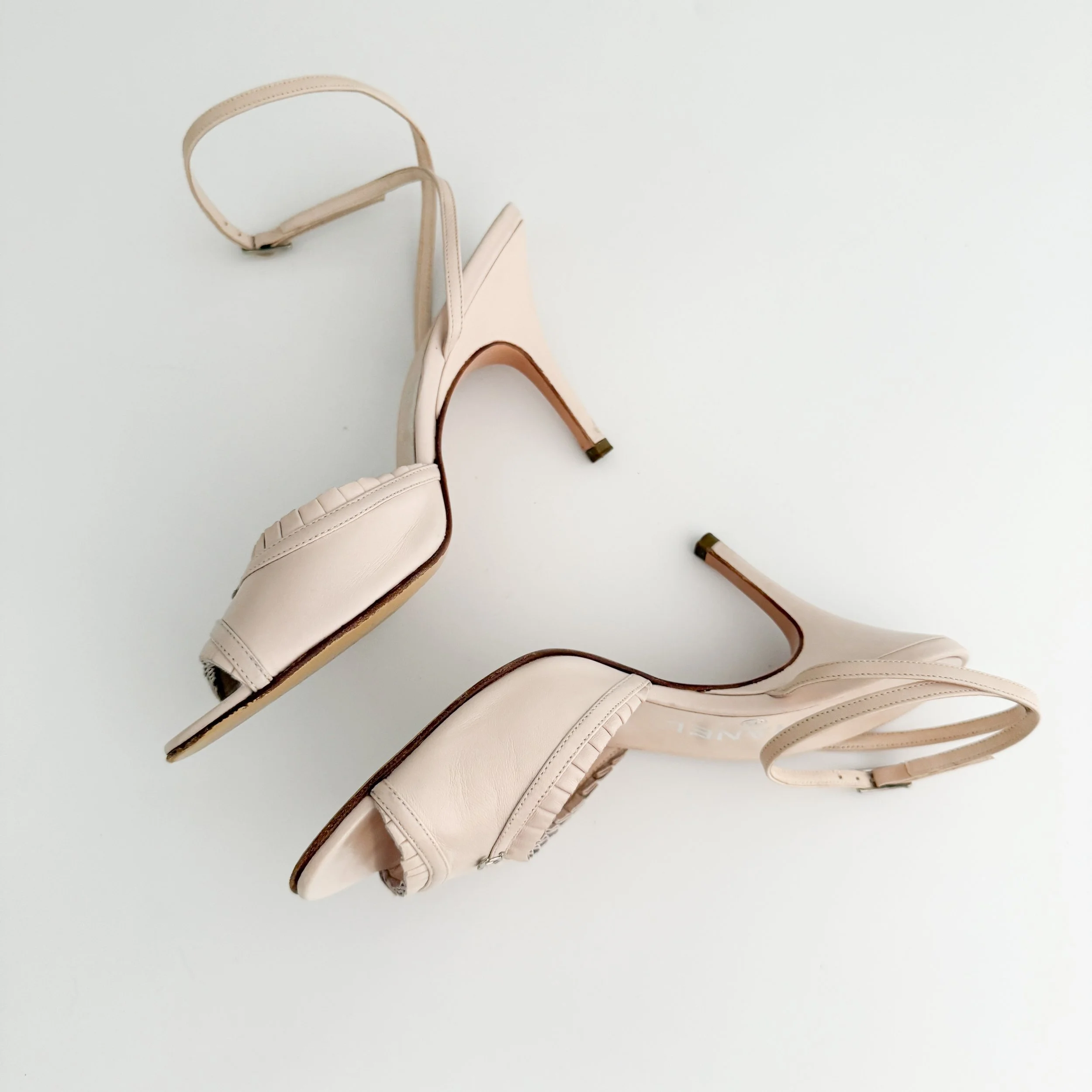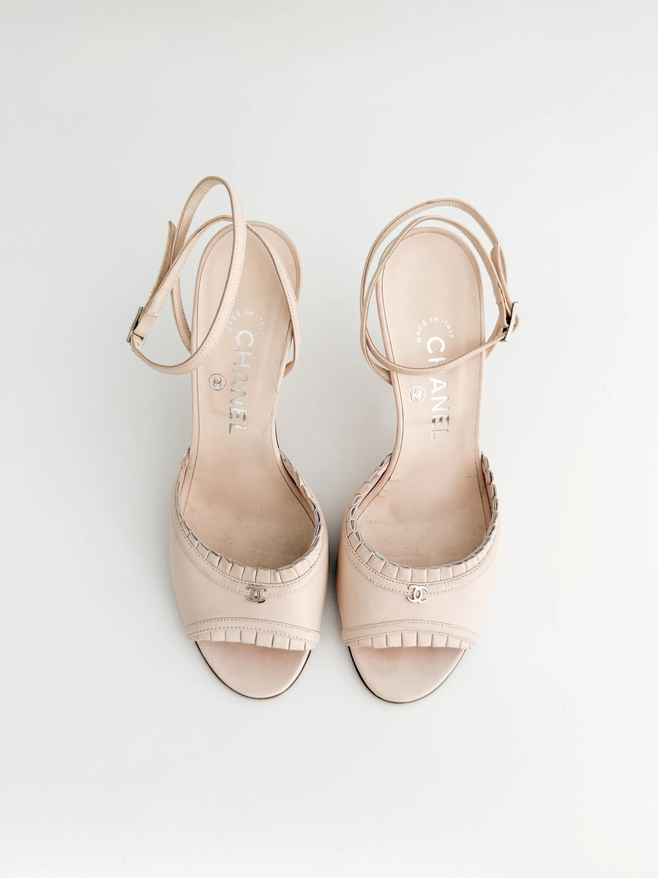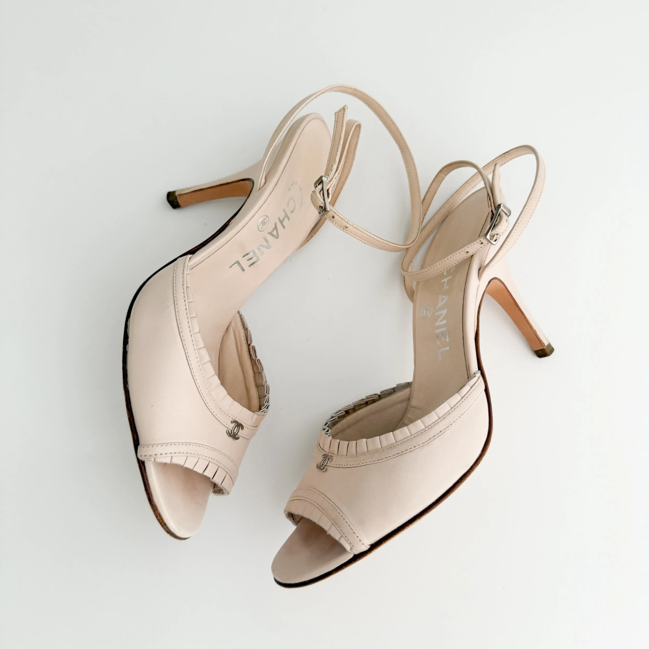 Chanel Vintage "CC" Ruffled Soft Pink Leather Heels (US 7.5 / IT 38)