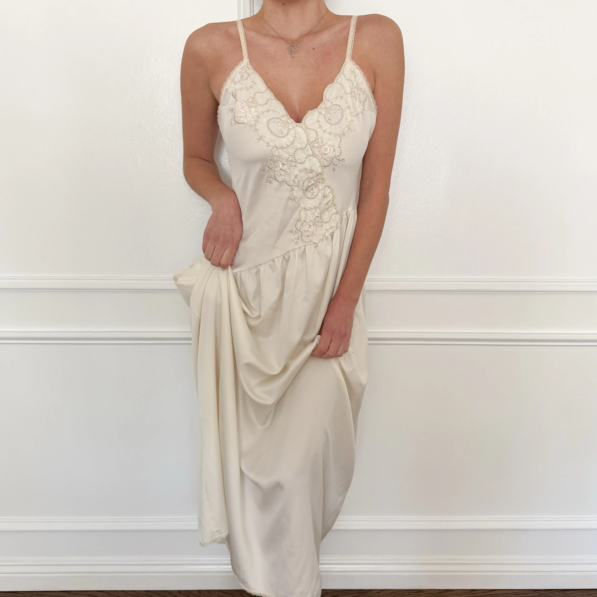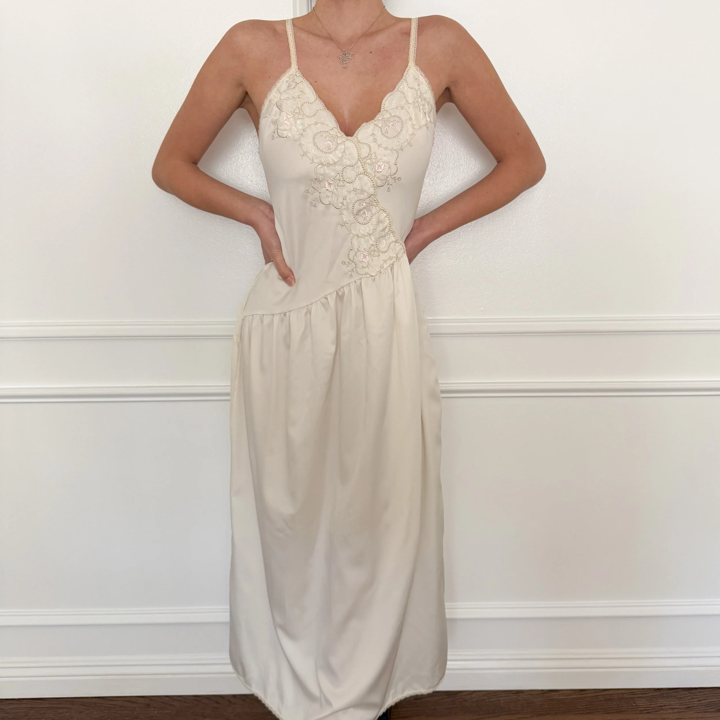Christian Dior "Miss Dior" Vintage 1970's Ivory Floral Embroidered Dress (M-L)