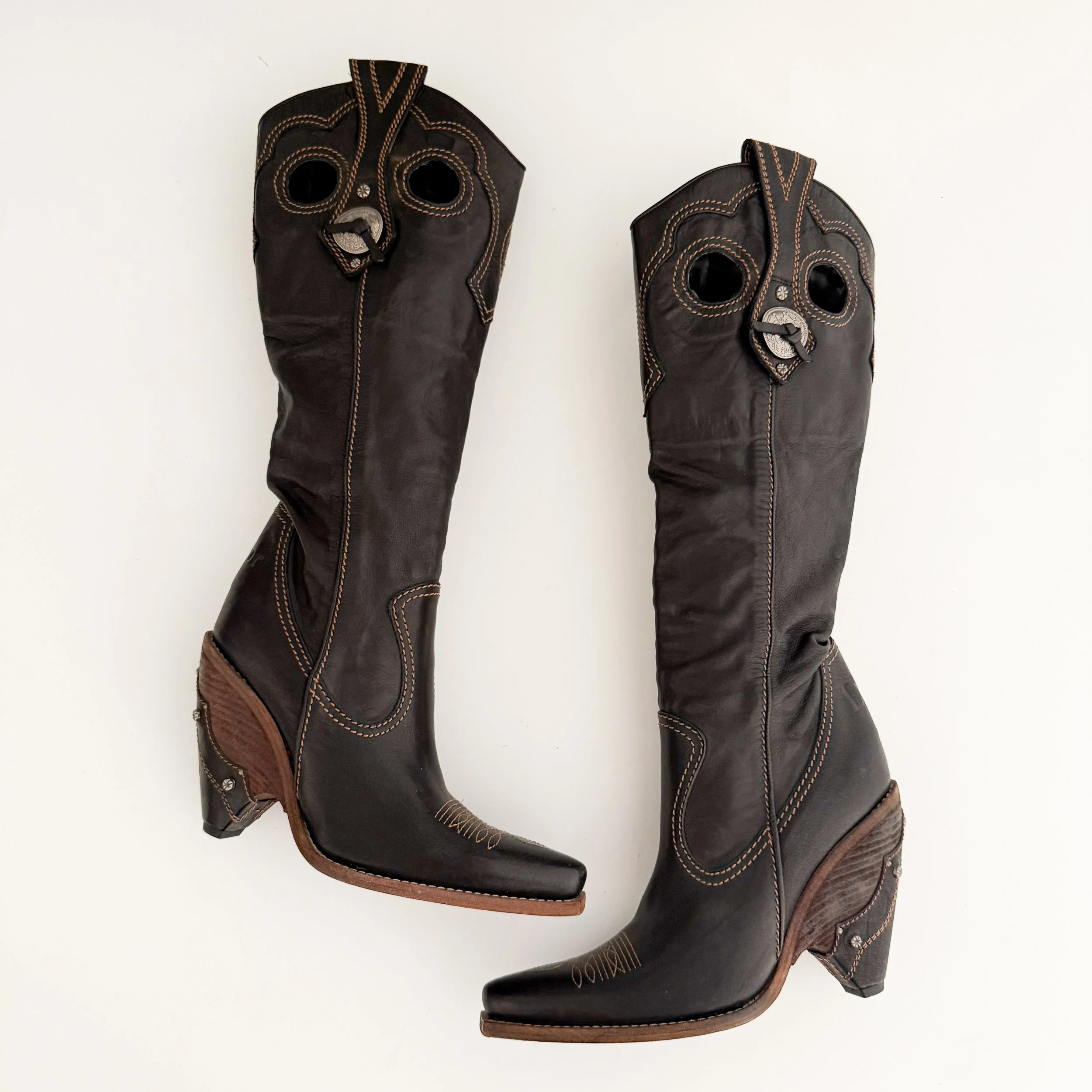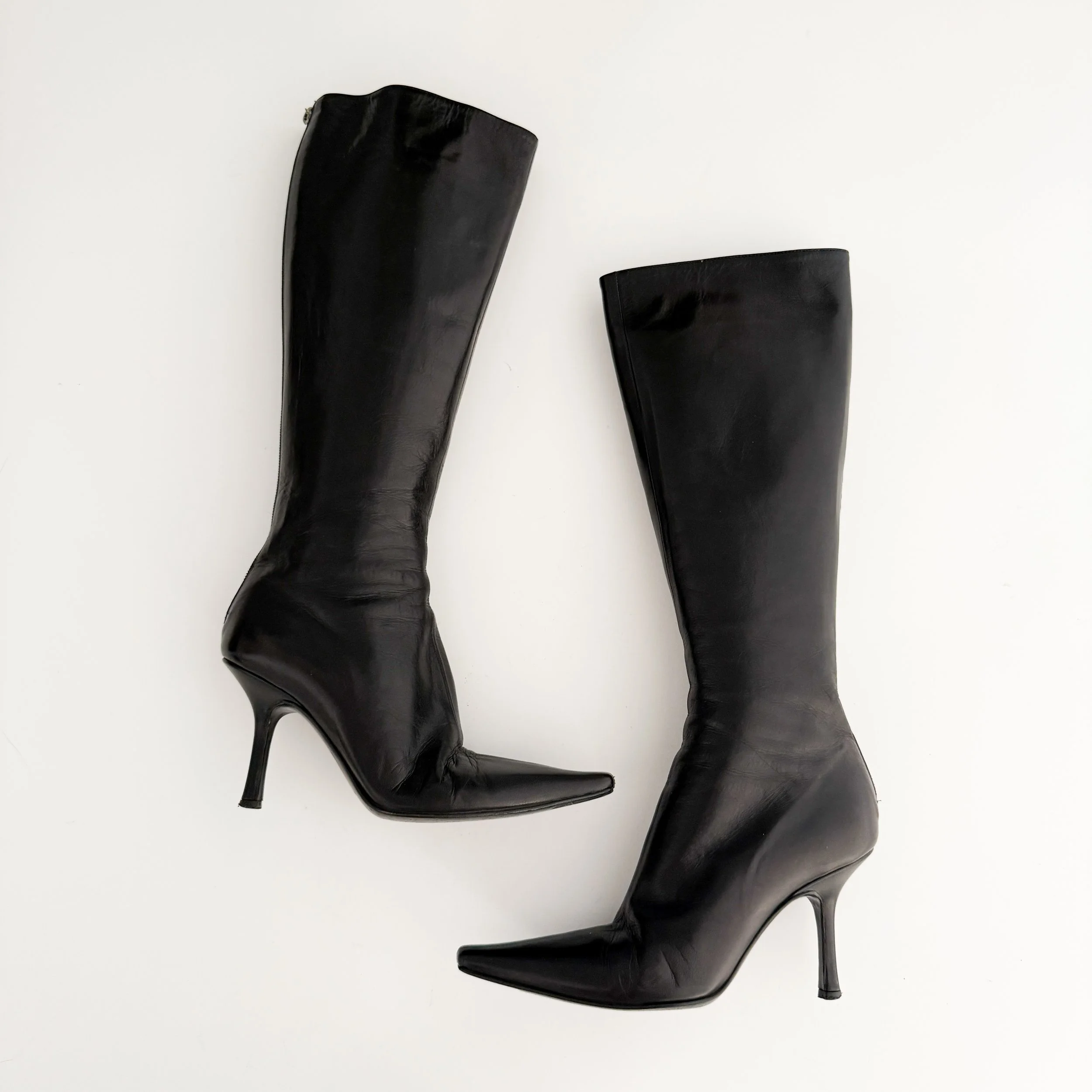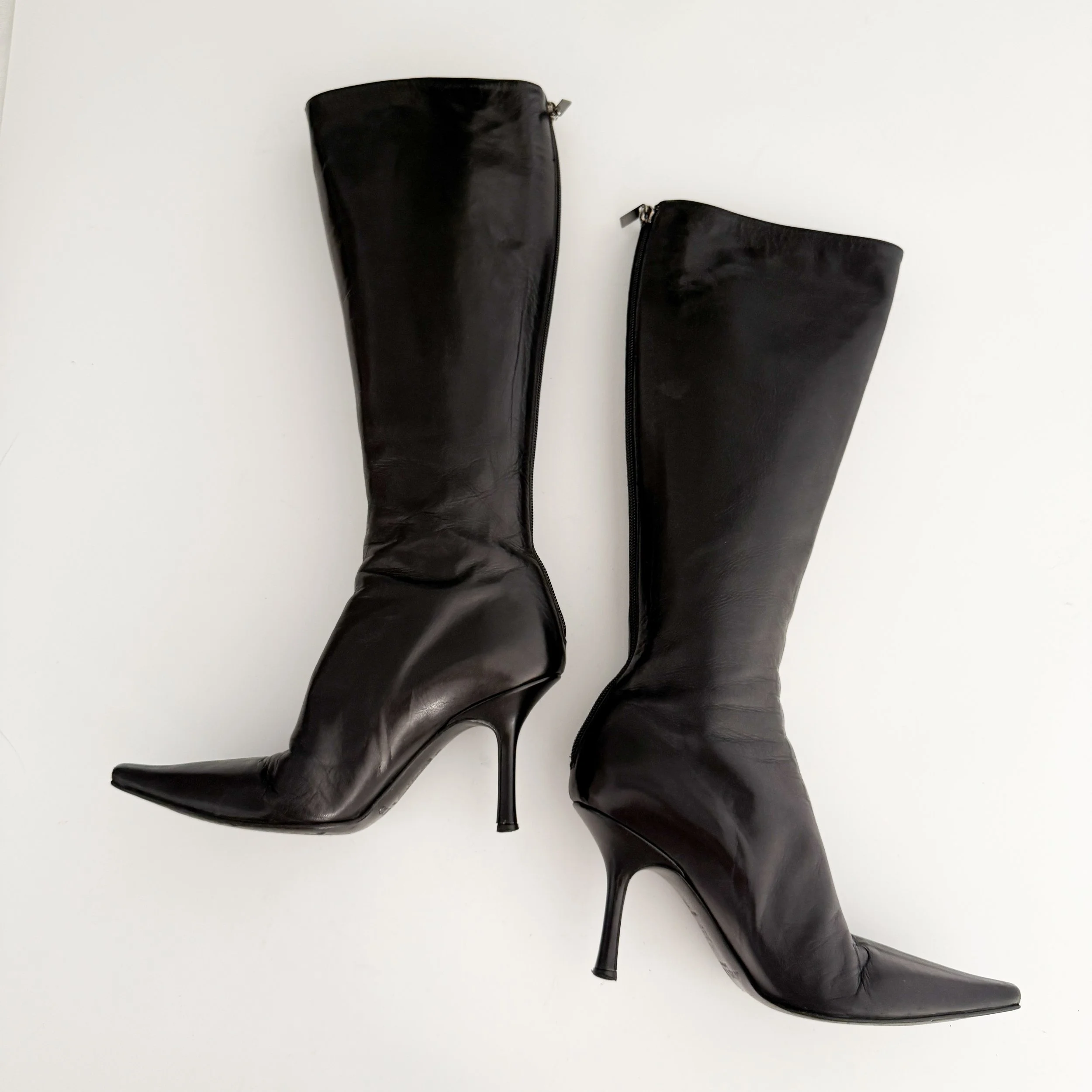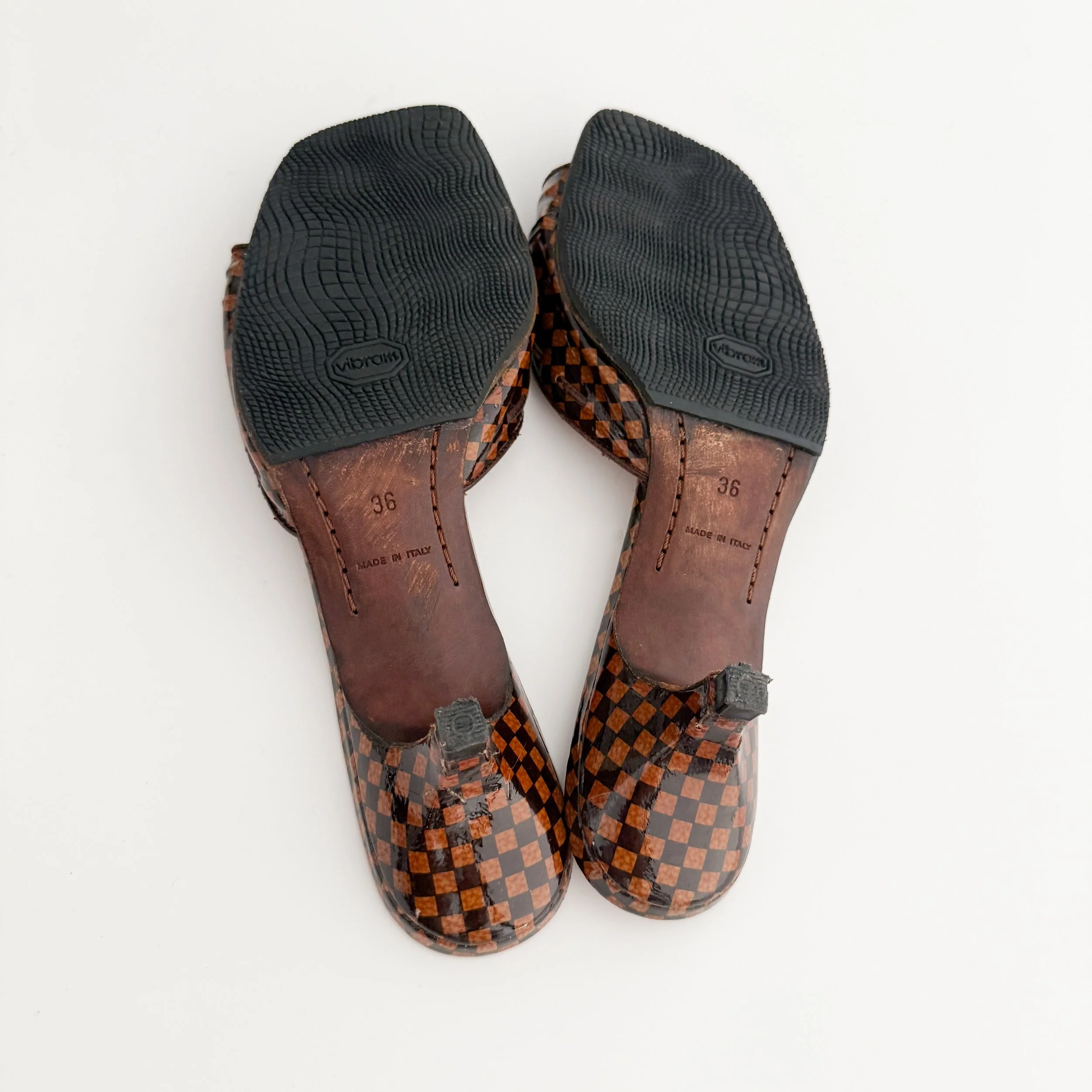Christian Louboutin Pink & Black Ruffle Sandal Heels (IT 36)