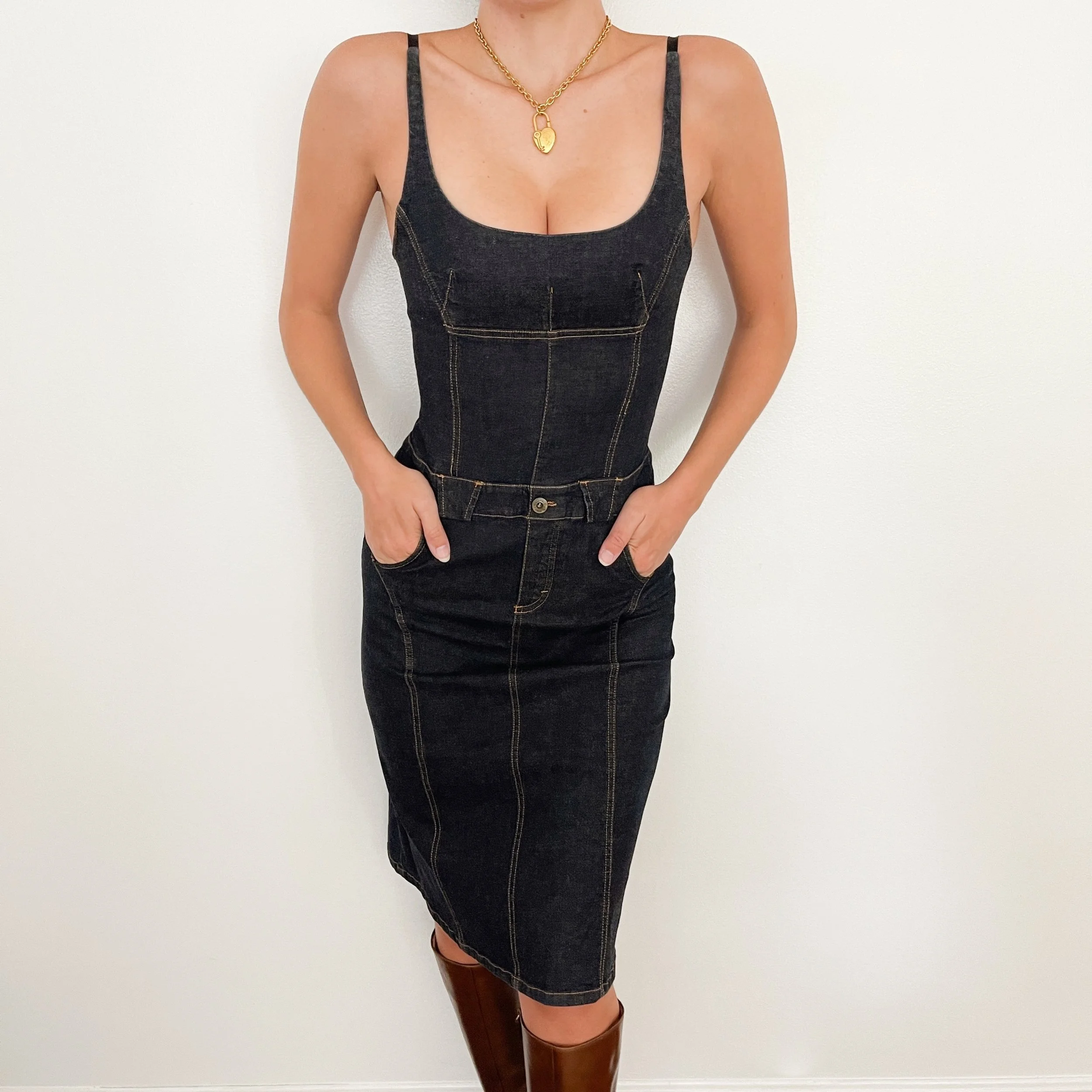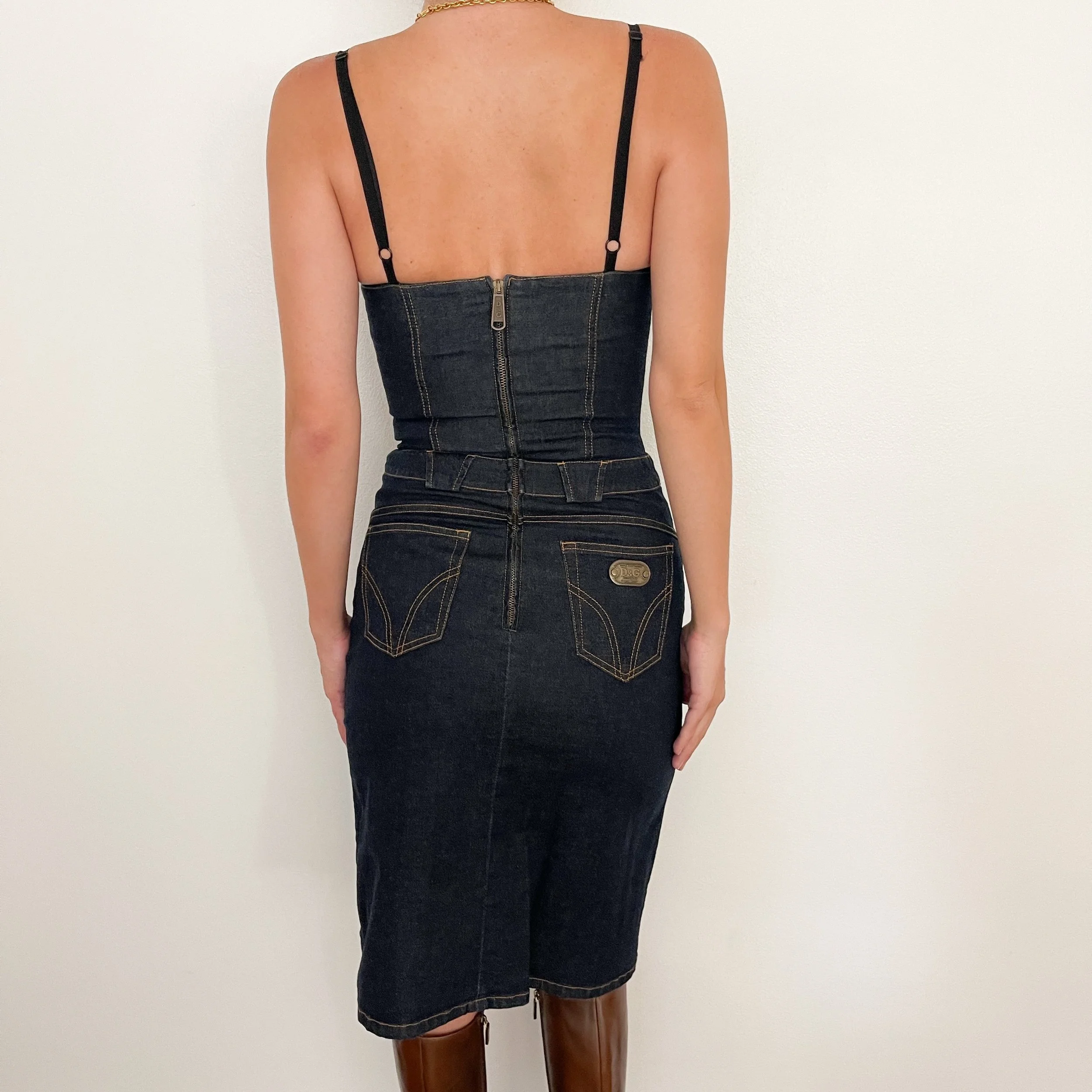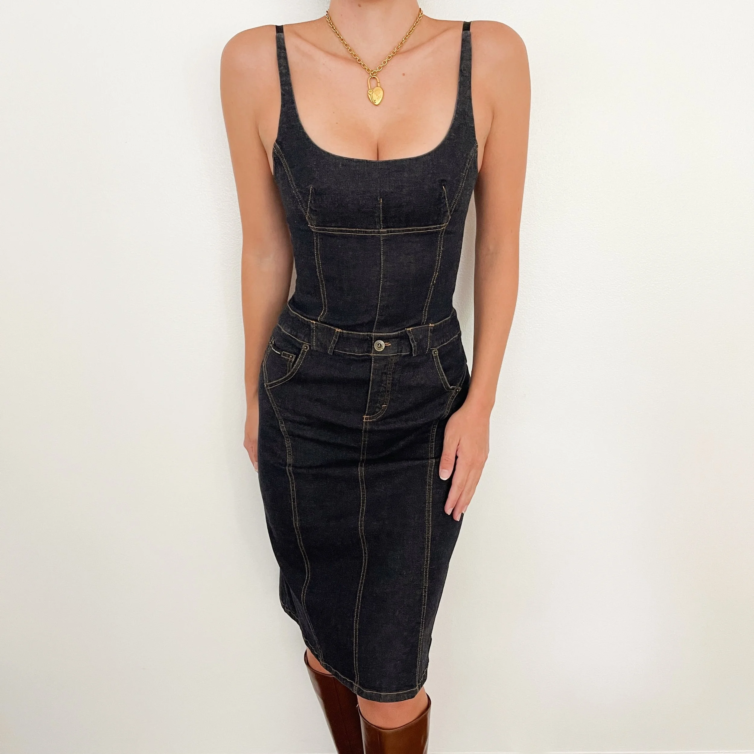 The most chic denim dress from iconic Italian fashion house Dolce & Gabbana. This statement dress can be styled both casually and formally year ‘round, and is meant to be shown off.