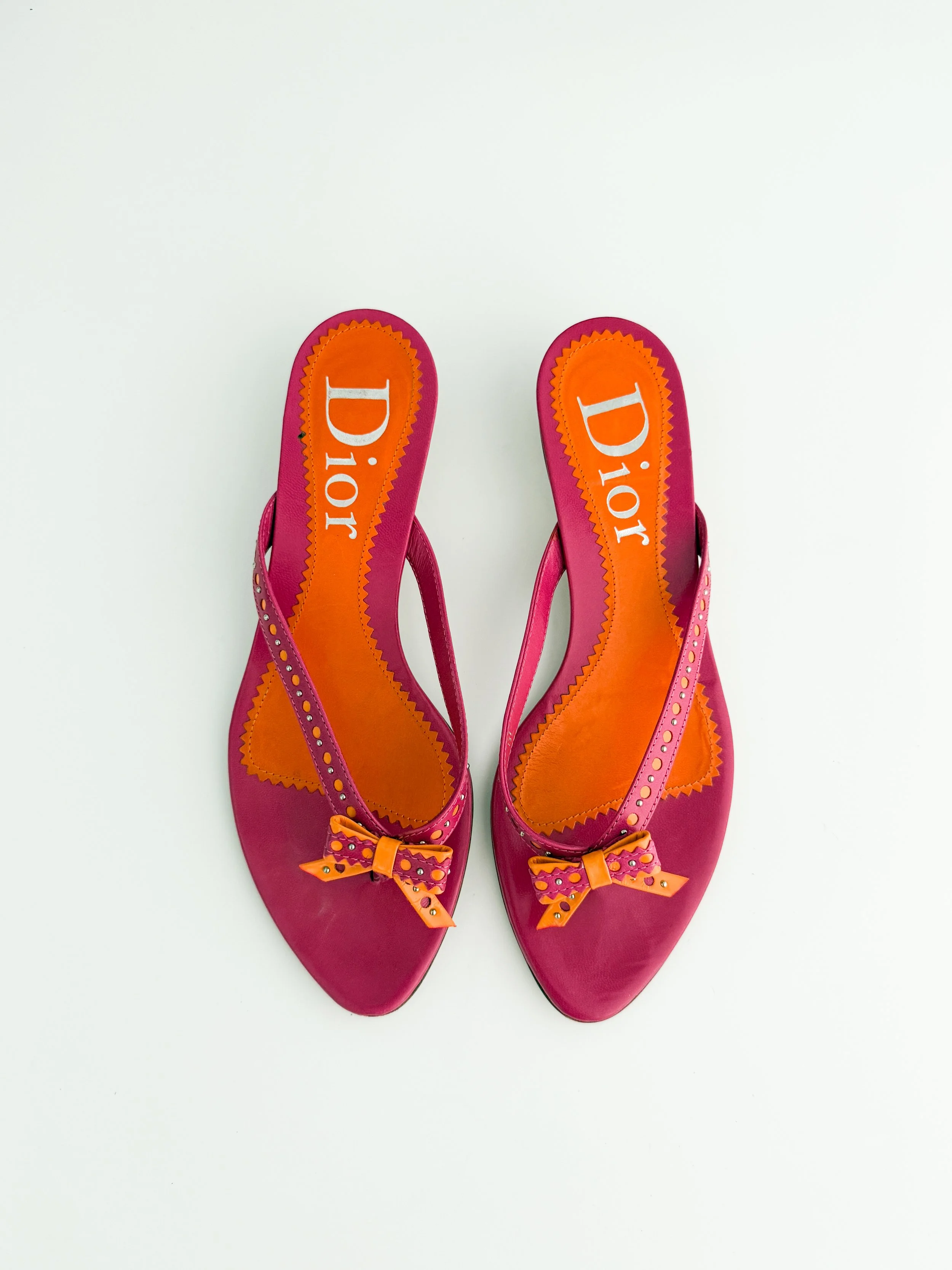 Christian Dior 2000's Hot Pink & Orange Kitten Bow Kitten Sandal Heels (US 8 / IT 38.5)