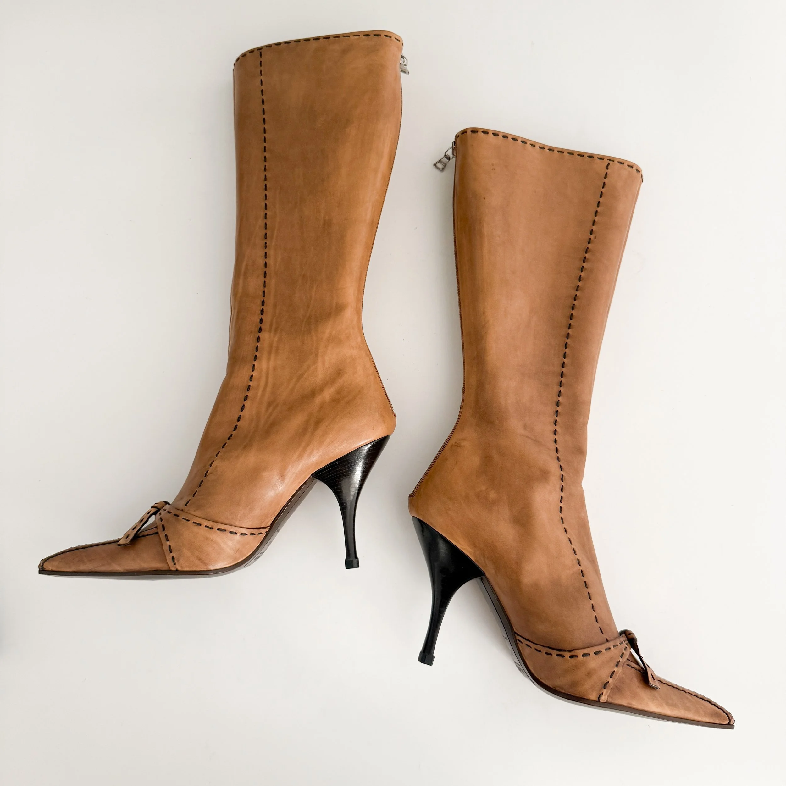 Christian Dior 2000's Blue Bow Ankle Wrap Woven Wedge Sandal Heels (US 7.5 / IT 37.5)