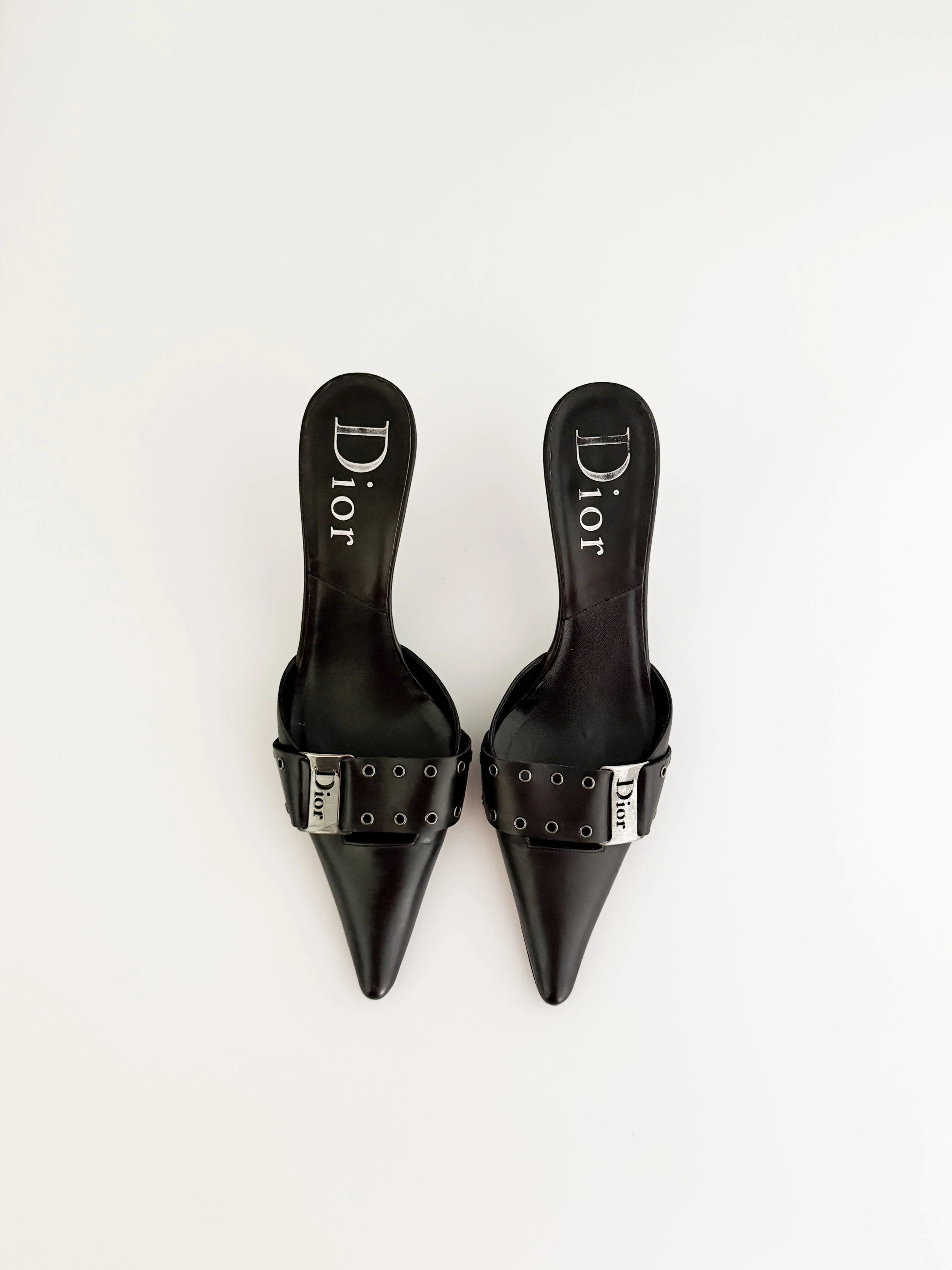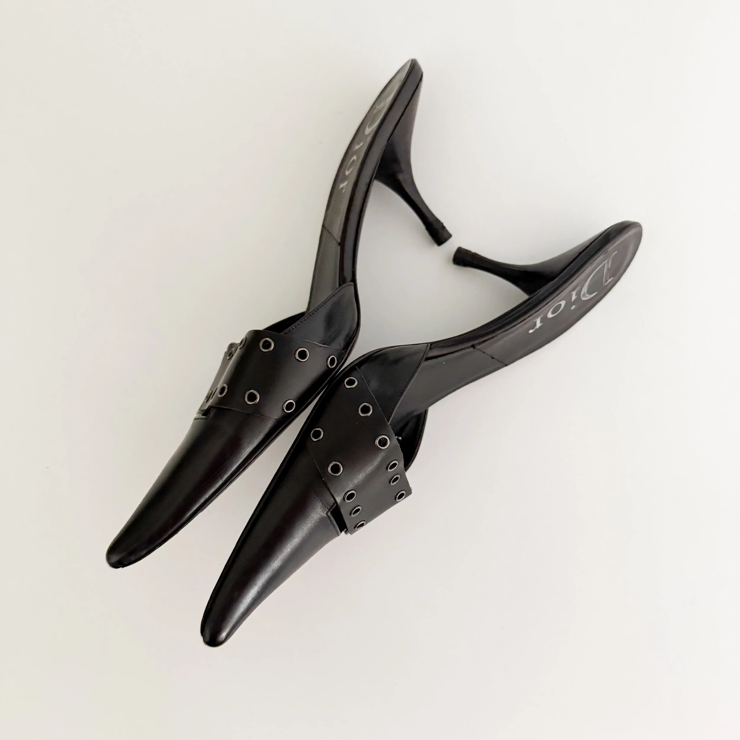 Christian Dior by John Galliano 2000's Black Leather Buckle Mule Heels (US 9 / IT 40)