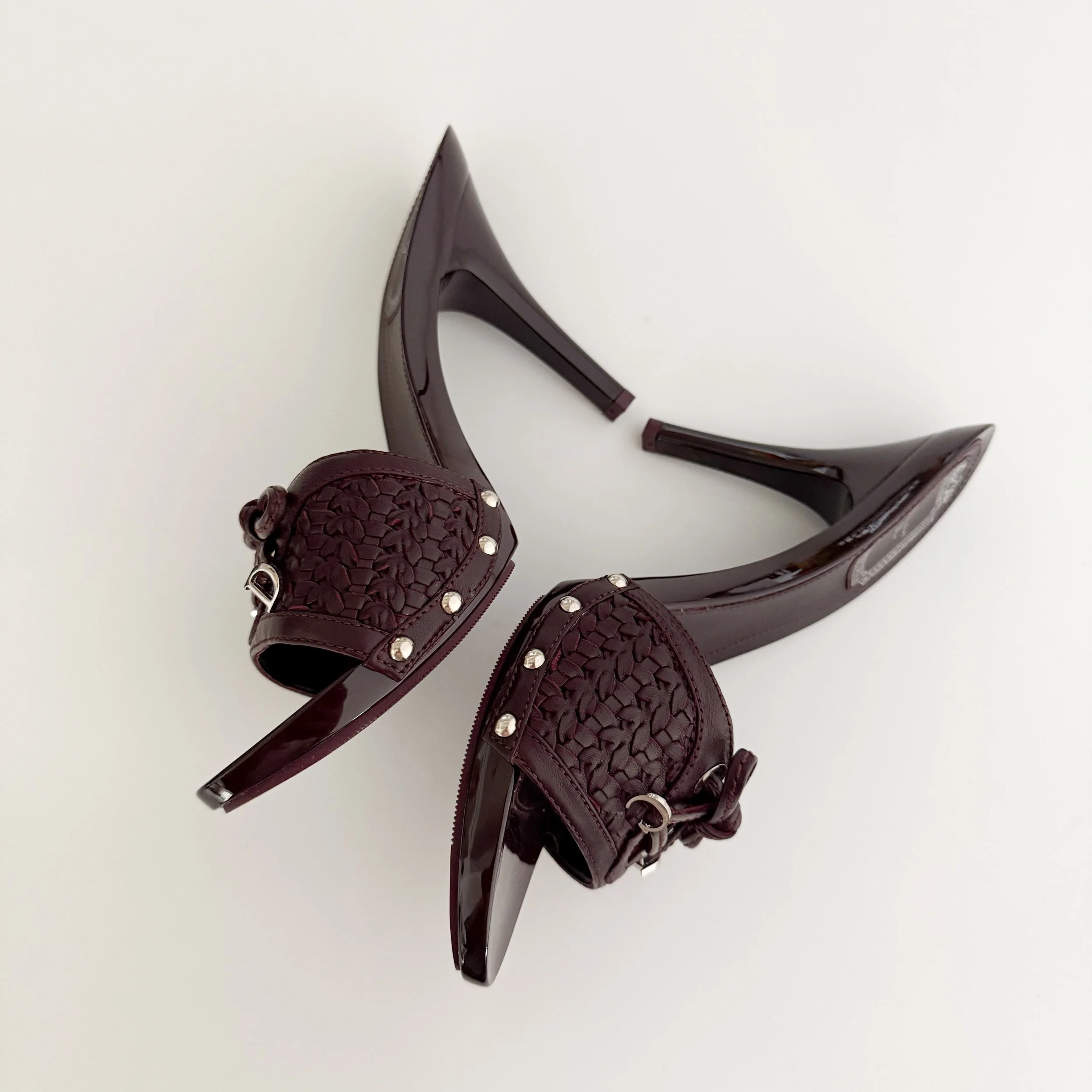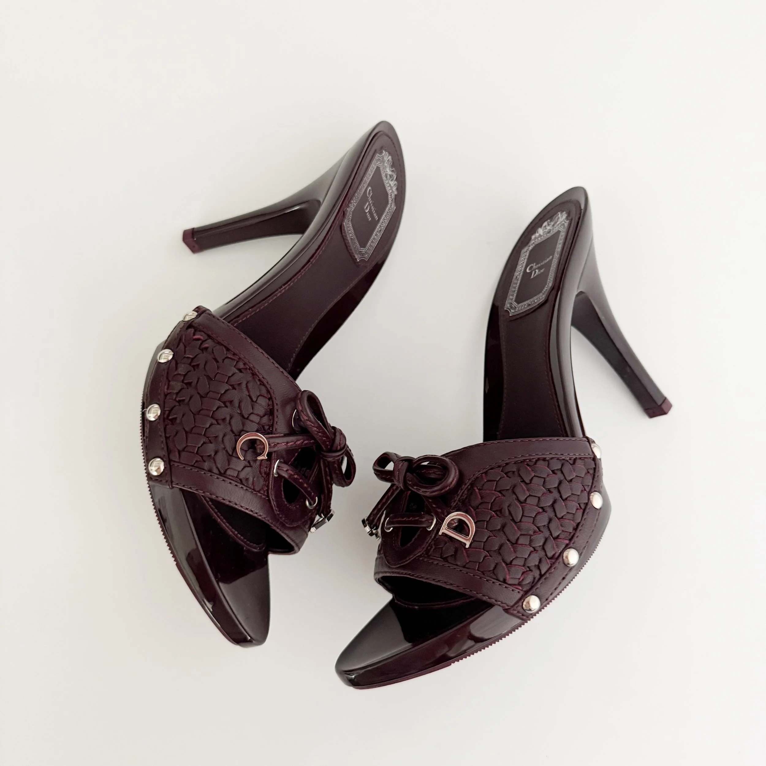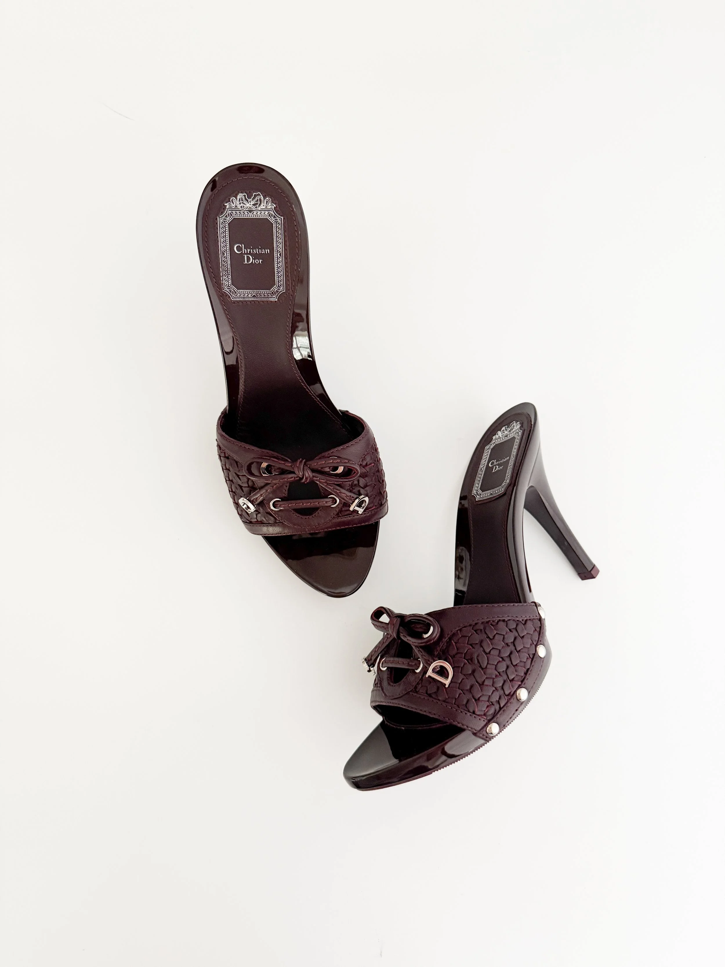 Christian Dior Plum Woven "CD" Charm Bow Heels (US 8 / IT 38)