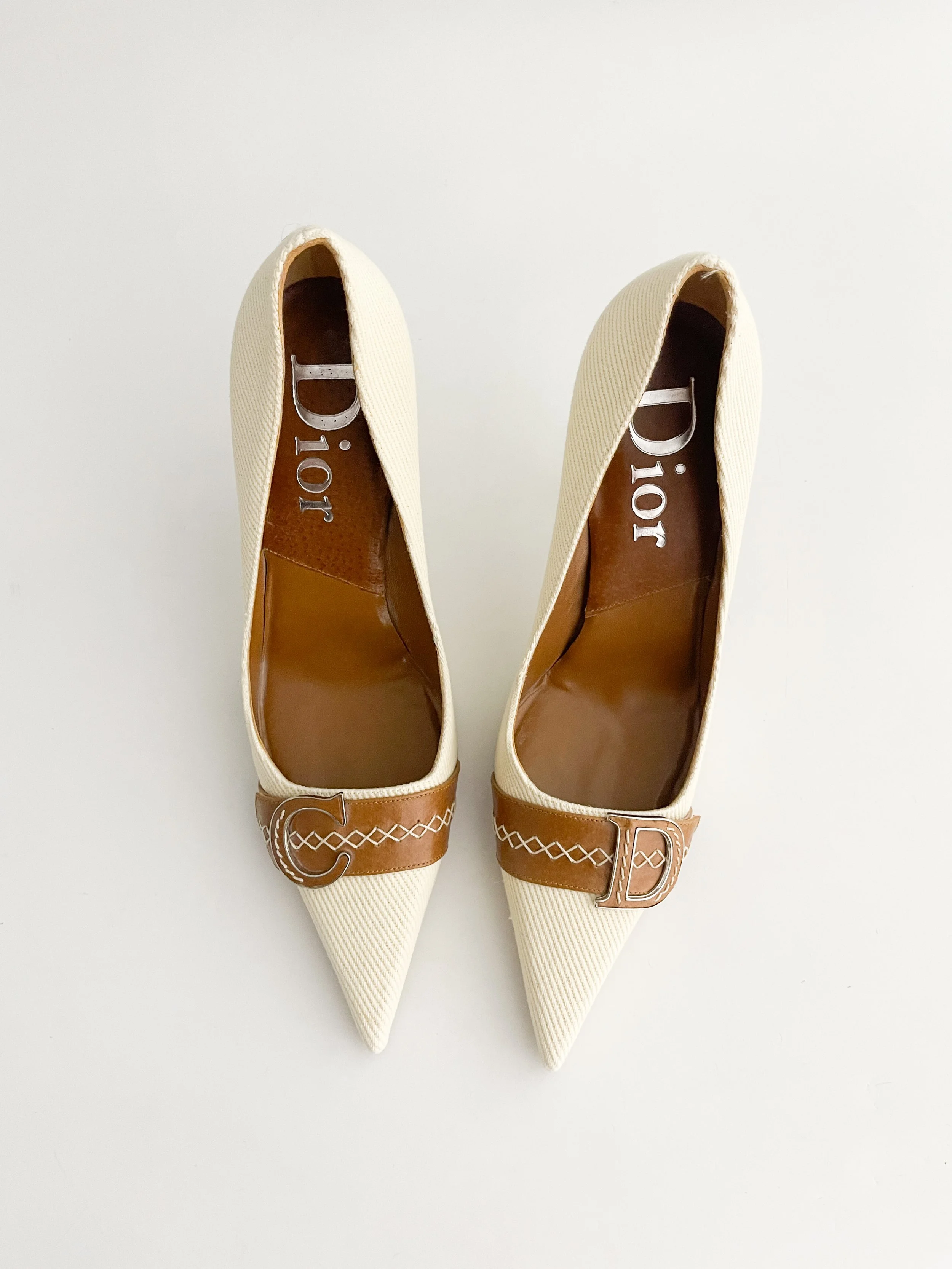 Christian Dior "CD" Canvas & Leather Heels (US 9 / IT 39)