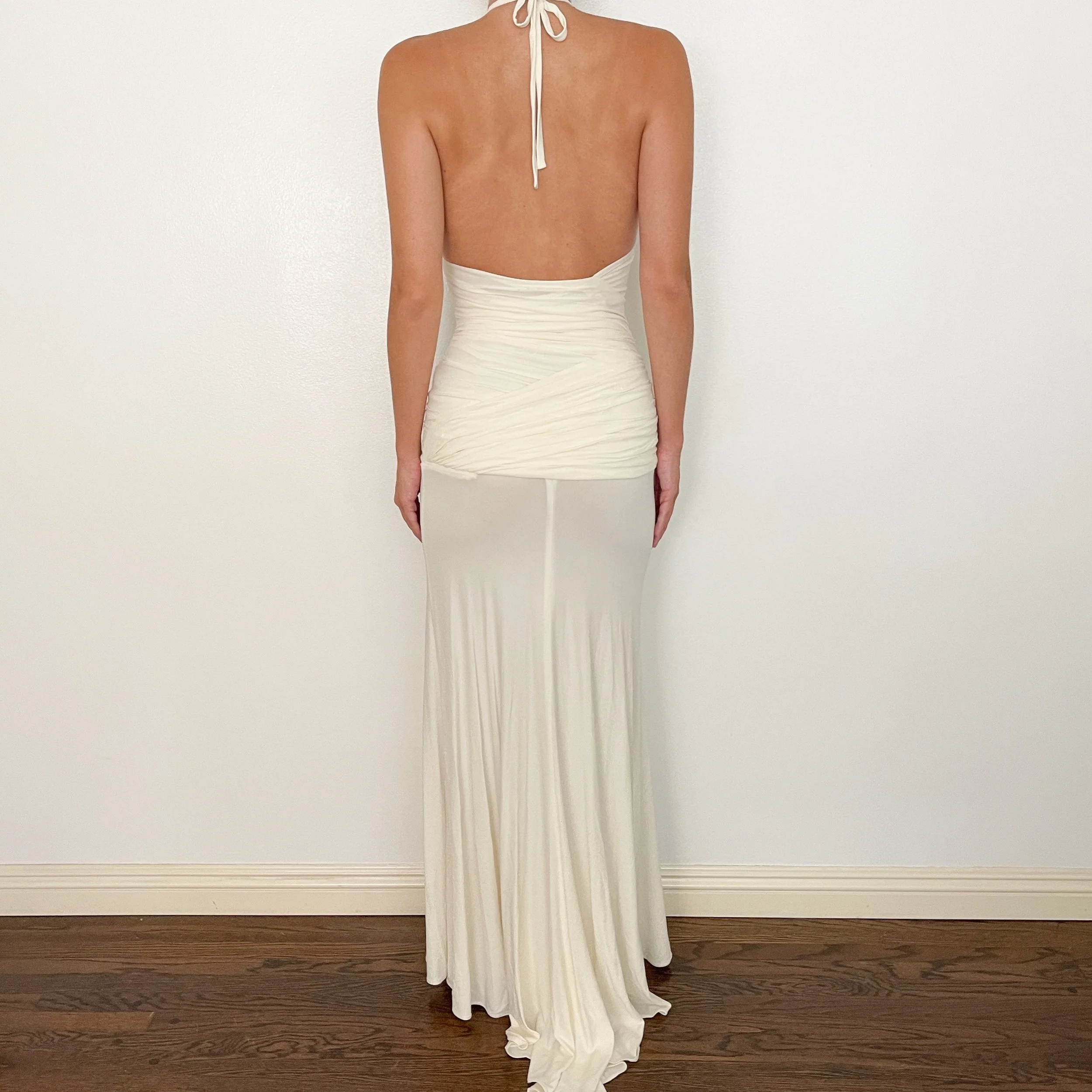 Donna Karan Black Label Statuesque Ruched Halter Backless Gown (XS-S)
