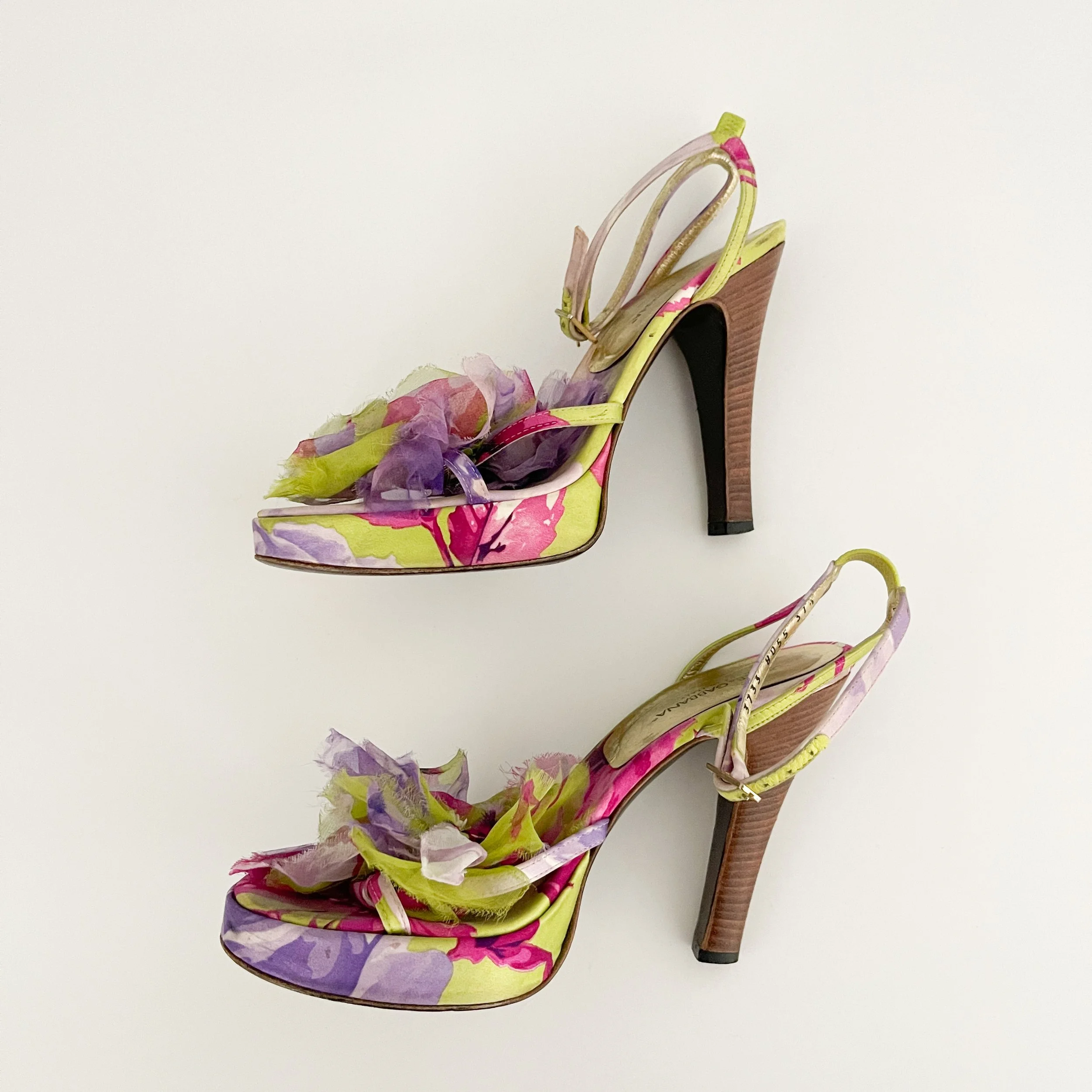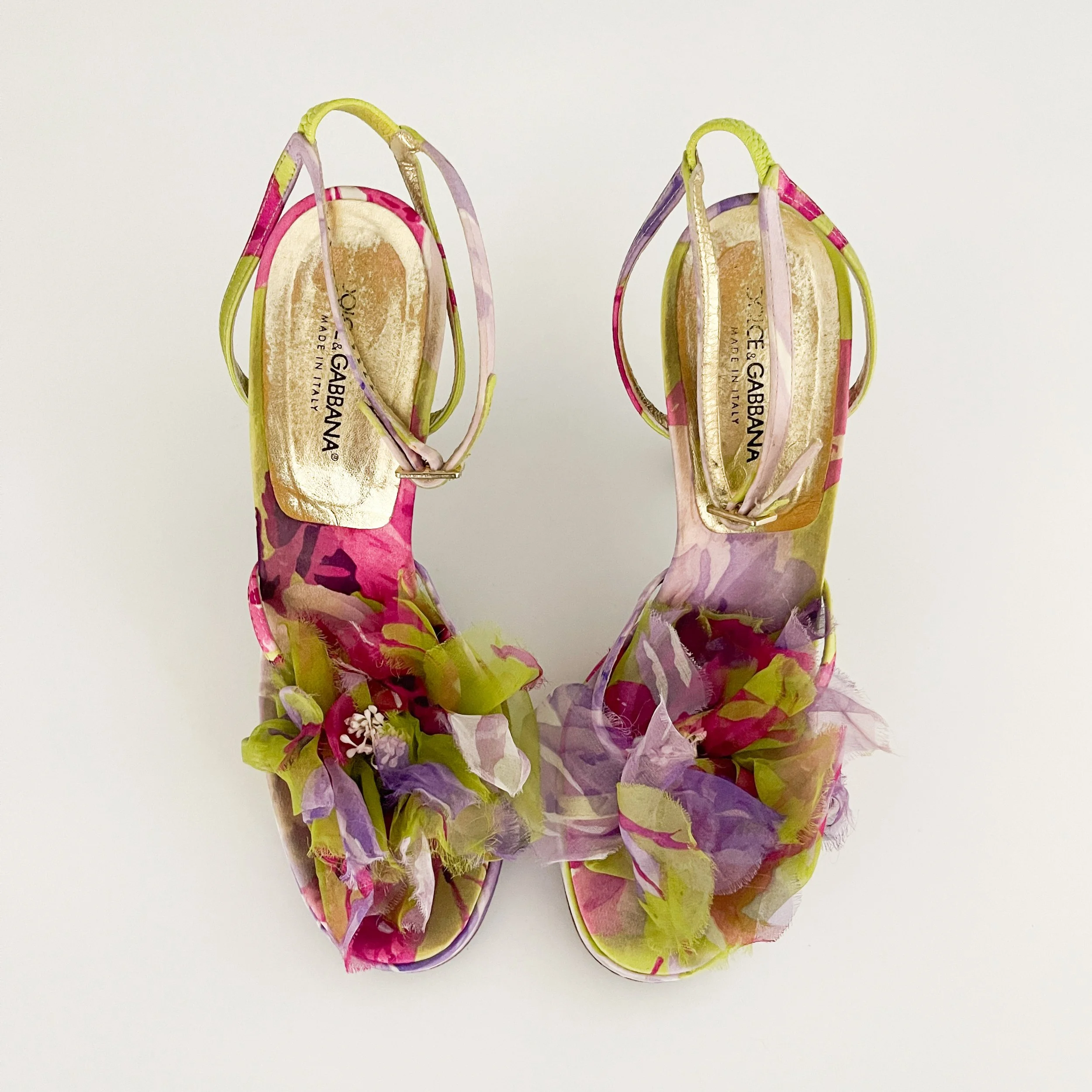 Dolce & Gabbana Vintage Multicolor Floral Ankle Strap Heels (US 7.5 / IT 37.5)