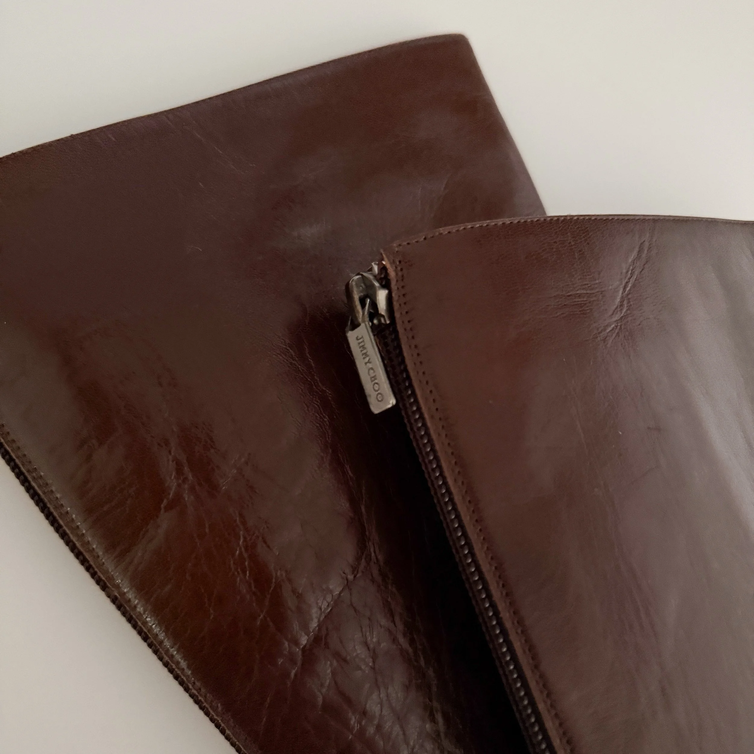 The most chic brown leather boot heels from luxury shoe designer Jimmy Choo. An iconic and classic silhouette that never goes out of style.