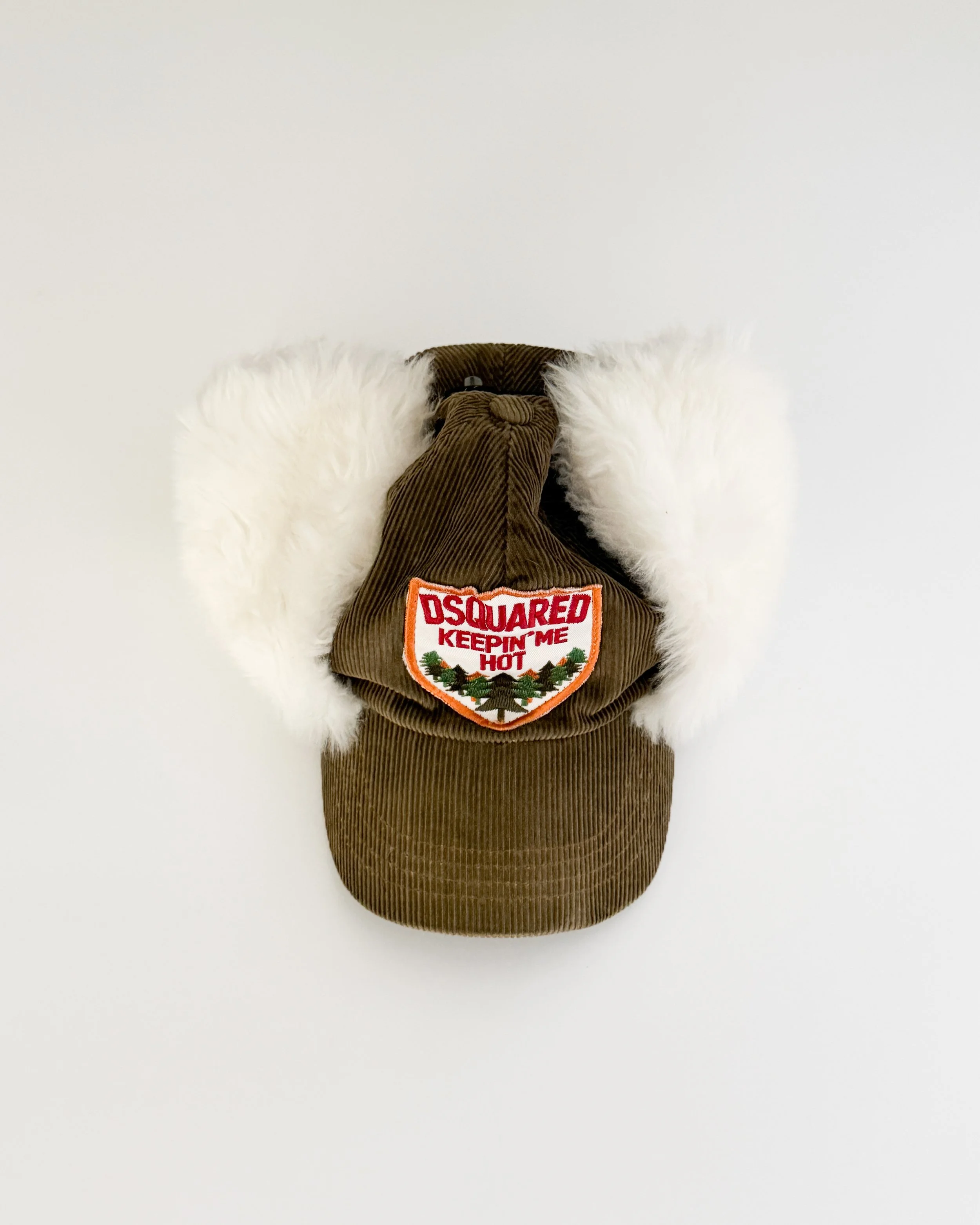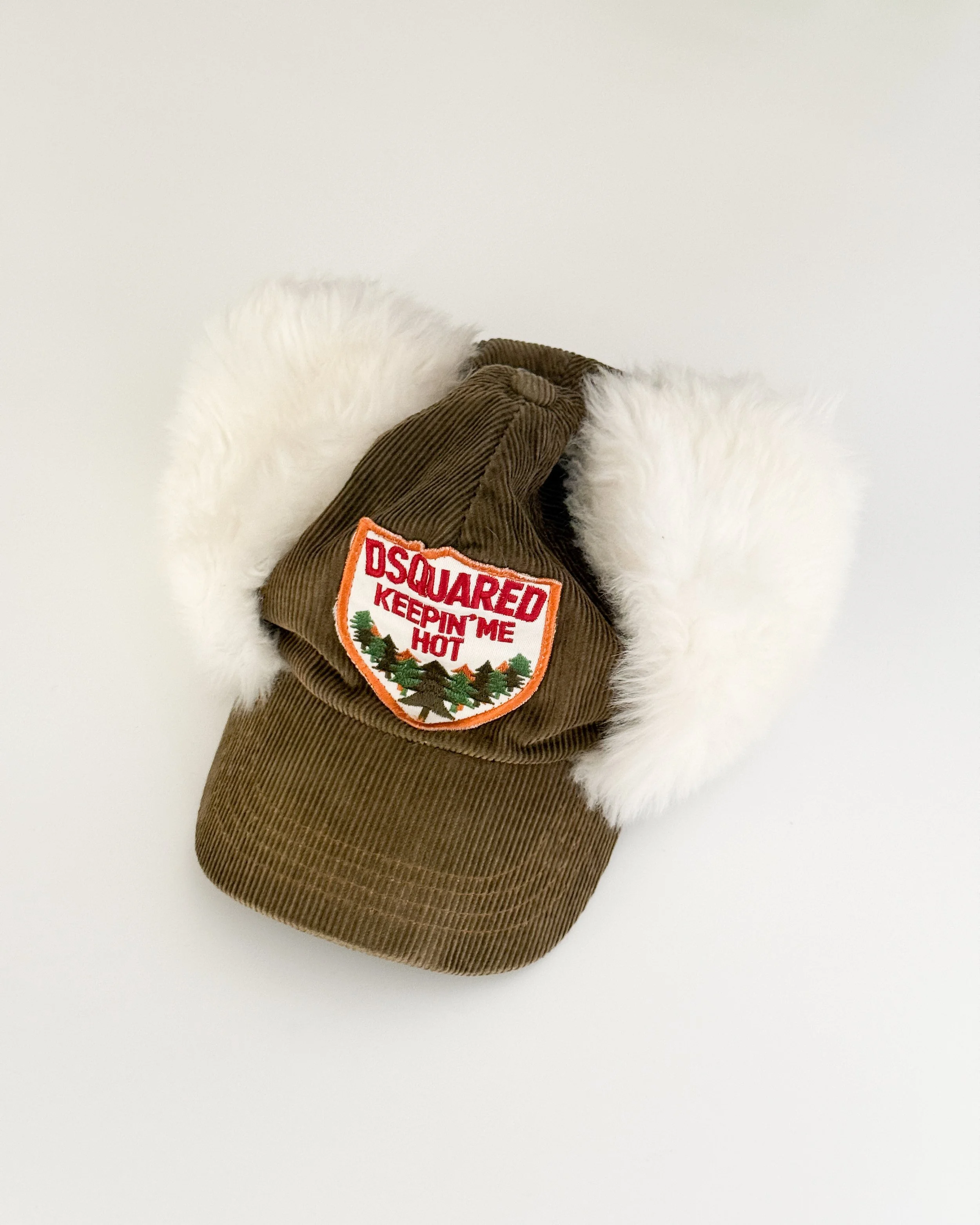 Dsquared2 F/W 2004 Iconic "Keepin' Me Hot" Fur Corduroy Runway Hat