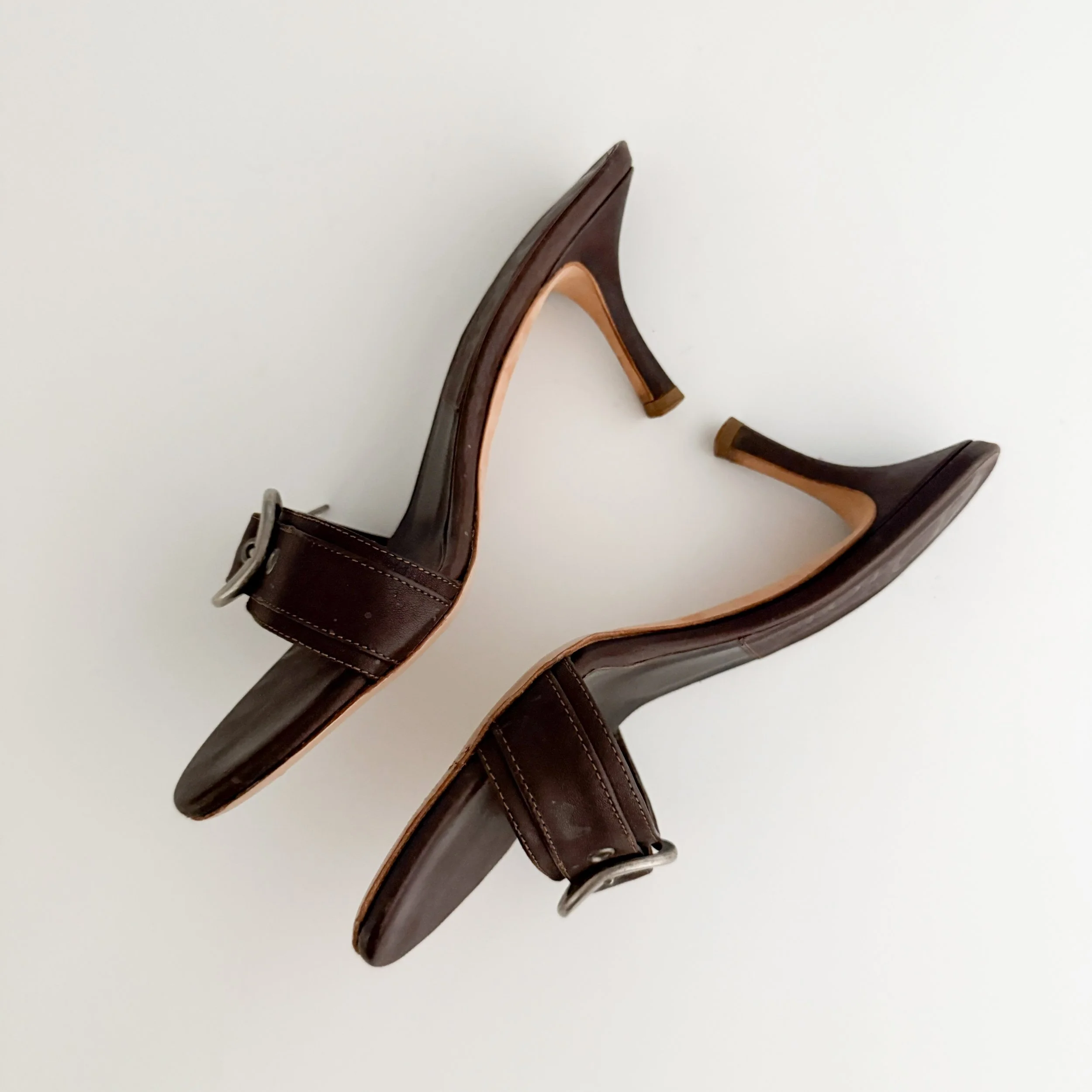 Manolo Blahnik Tennis Ball Reworked Suede Kitten Sandal Heels (IT 35)