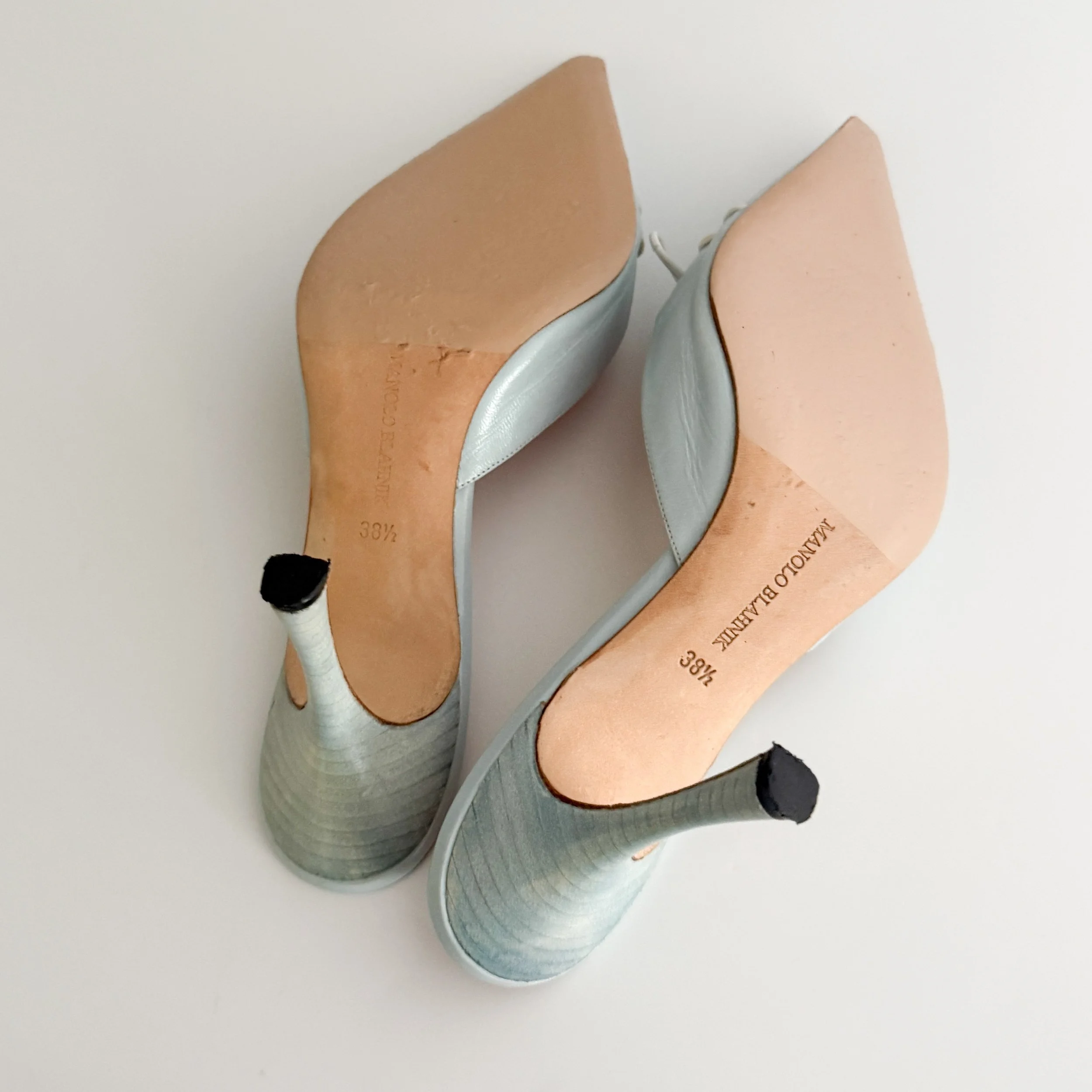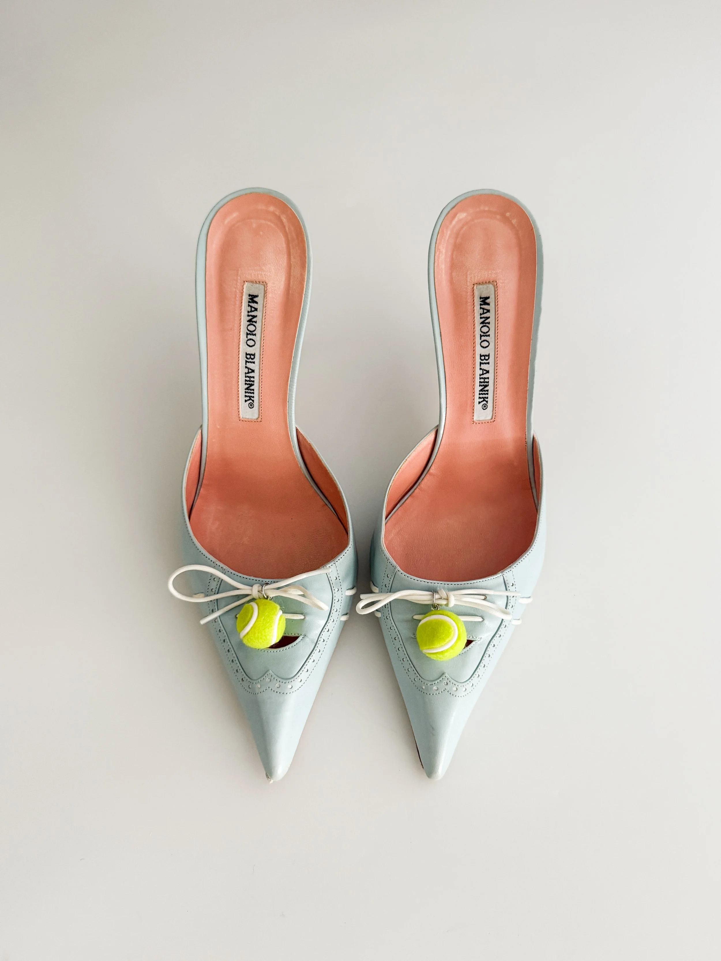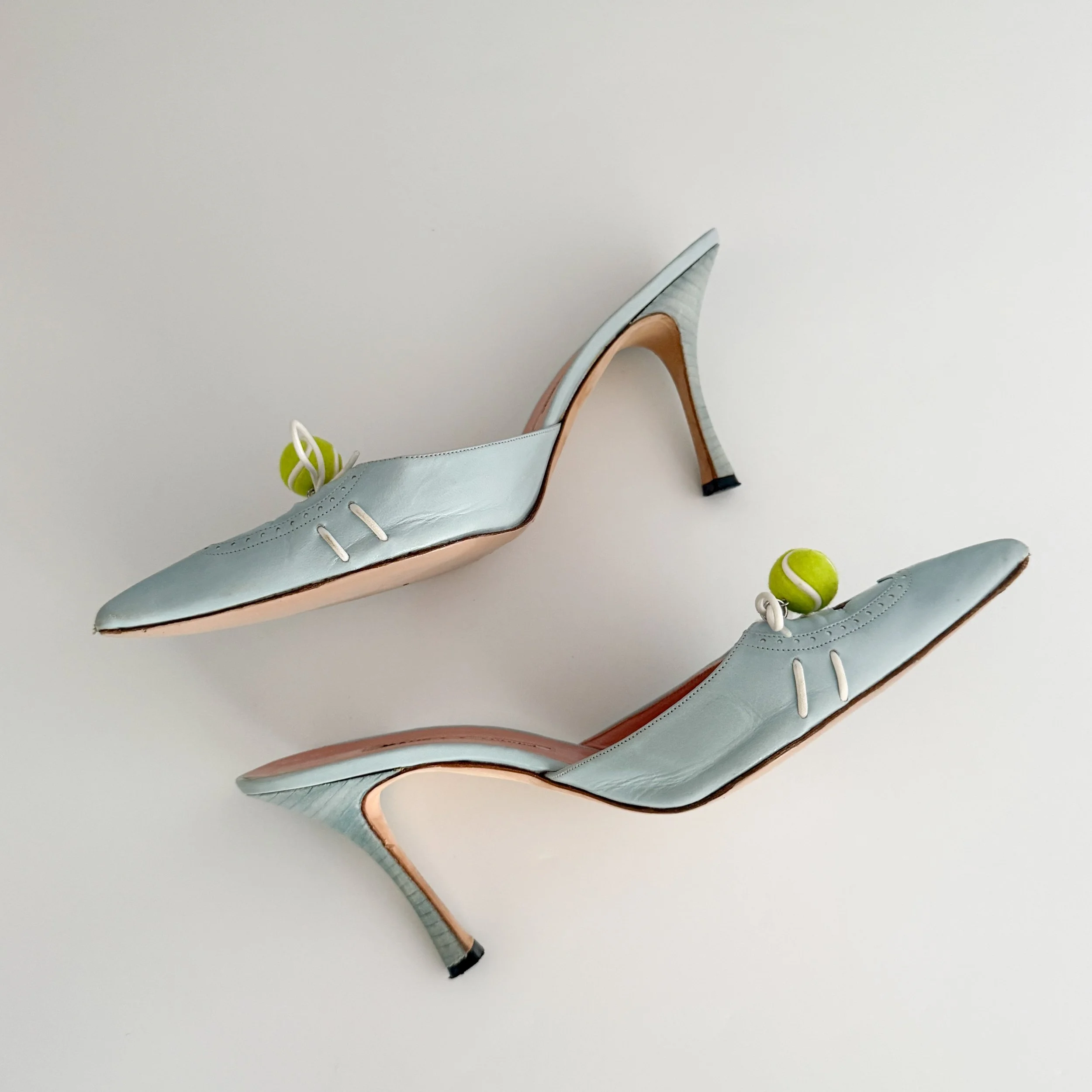 Manolo Blahnik Tennis Ball Reworked Blue Leather Mule Heels (US 8 / IT 38.5)