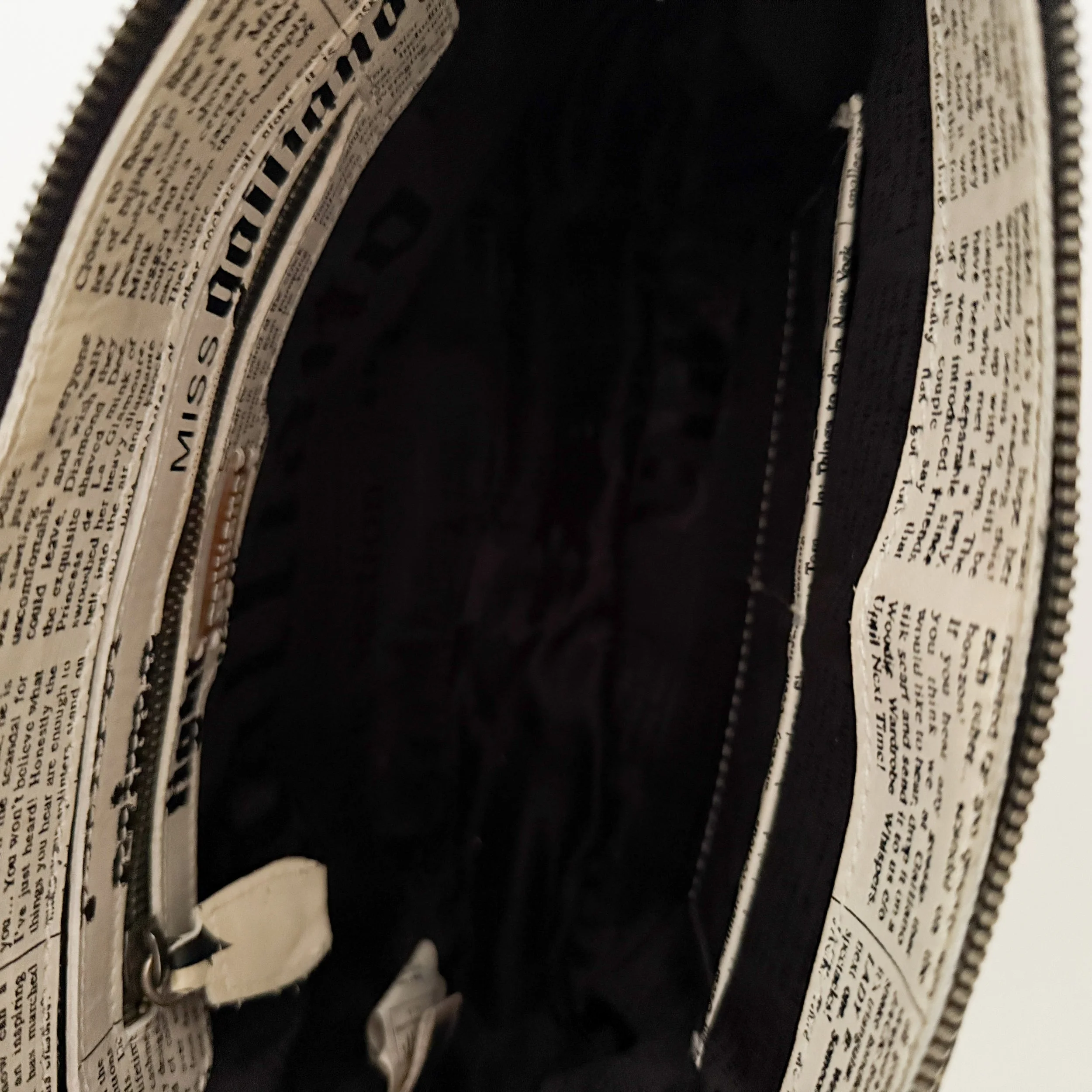 The most chic vintage John Galliano gazette newspaper purse. John Galliano debuted his iconic newspaper print clothing while he was creative director of Dior and continued his famous newspaper pieces within his own label. This purse is extremely unique and can be styled in endless ways year ‘round. Perfect for the vintage designer collector.