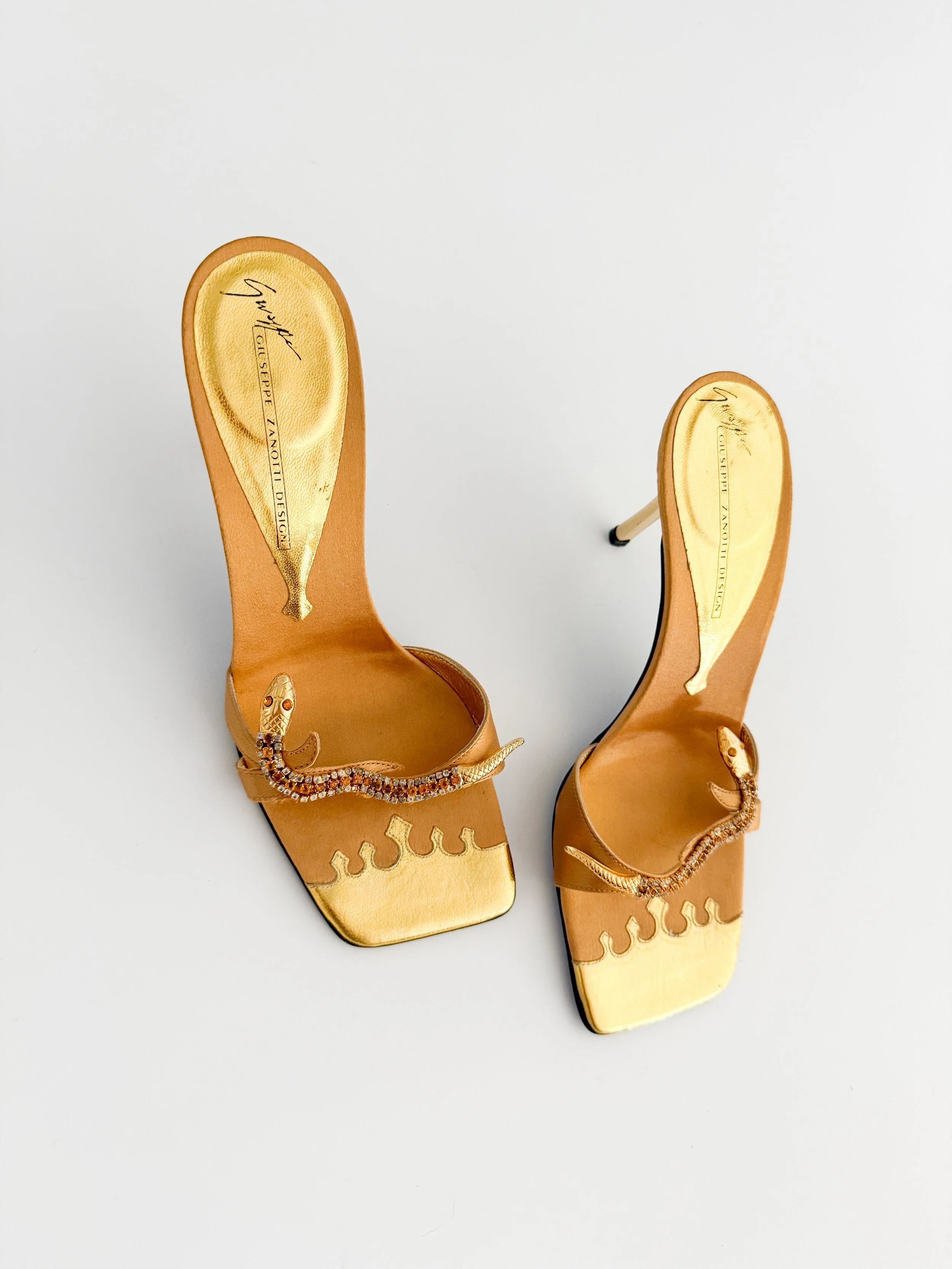 The most incredible snake sandal heels from luxury designer Giuseppe Zanotti. A luxurious pair of heels to treasure forever. The quintessential sandals to style year ‘round. A statement piece.
