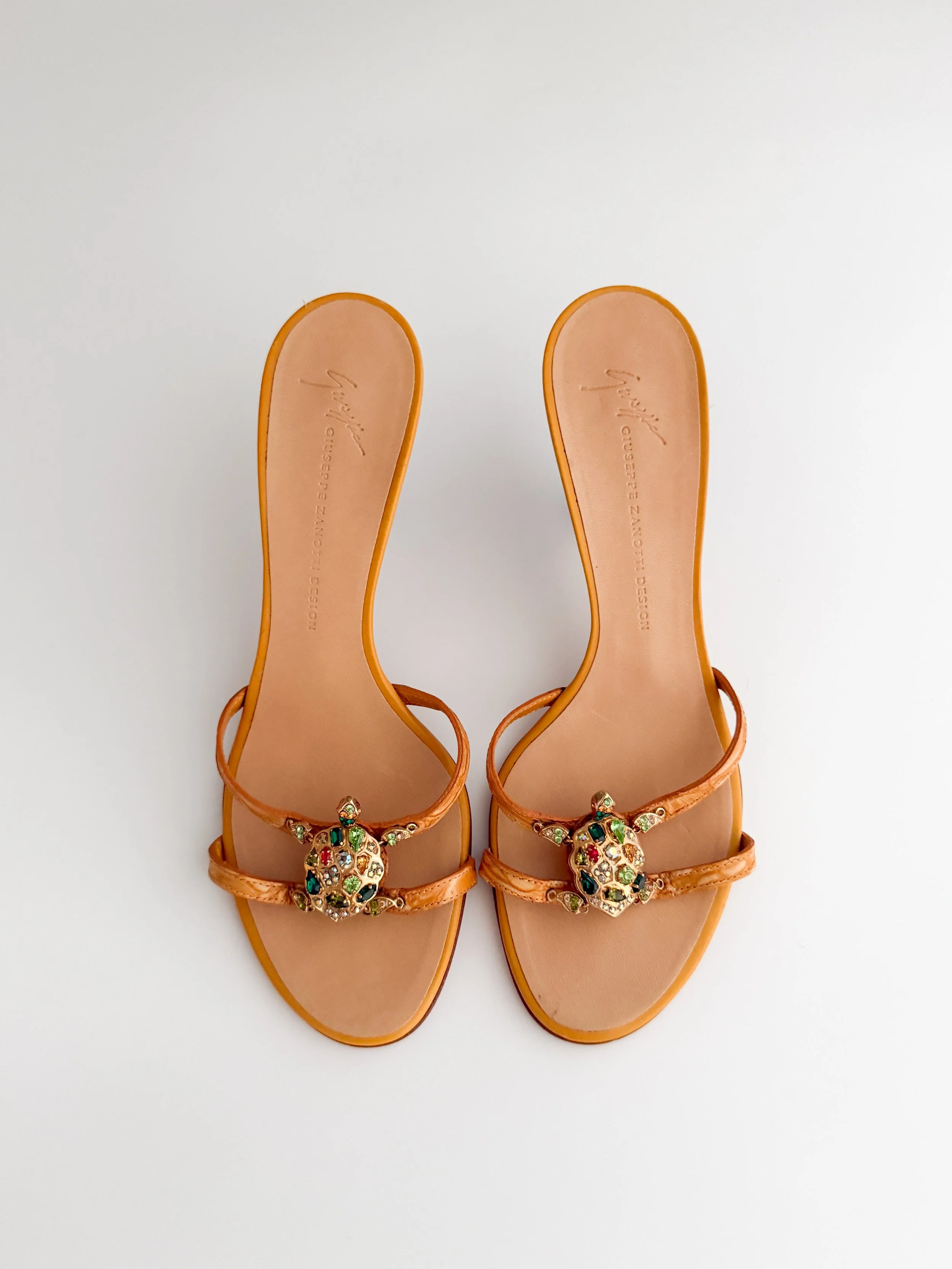 Giuseppe Zanotti Italian Luxury Turtle Jewel Sandal Heels (US 8.5 / IT 38.5)