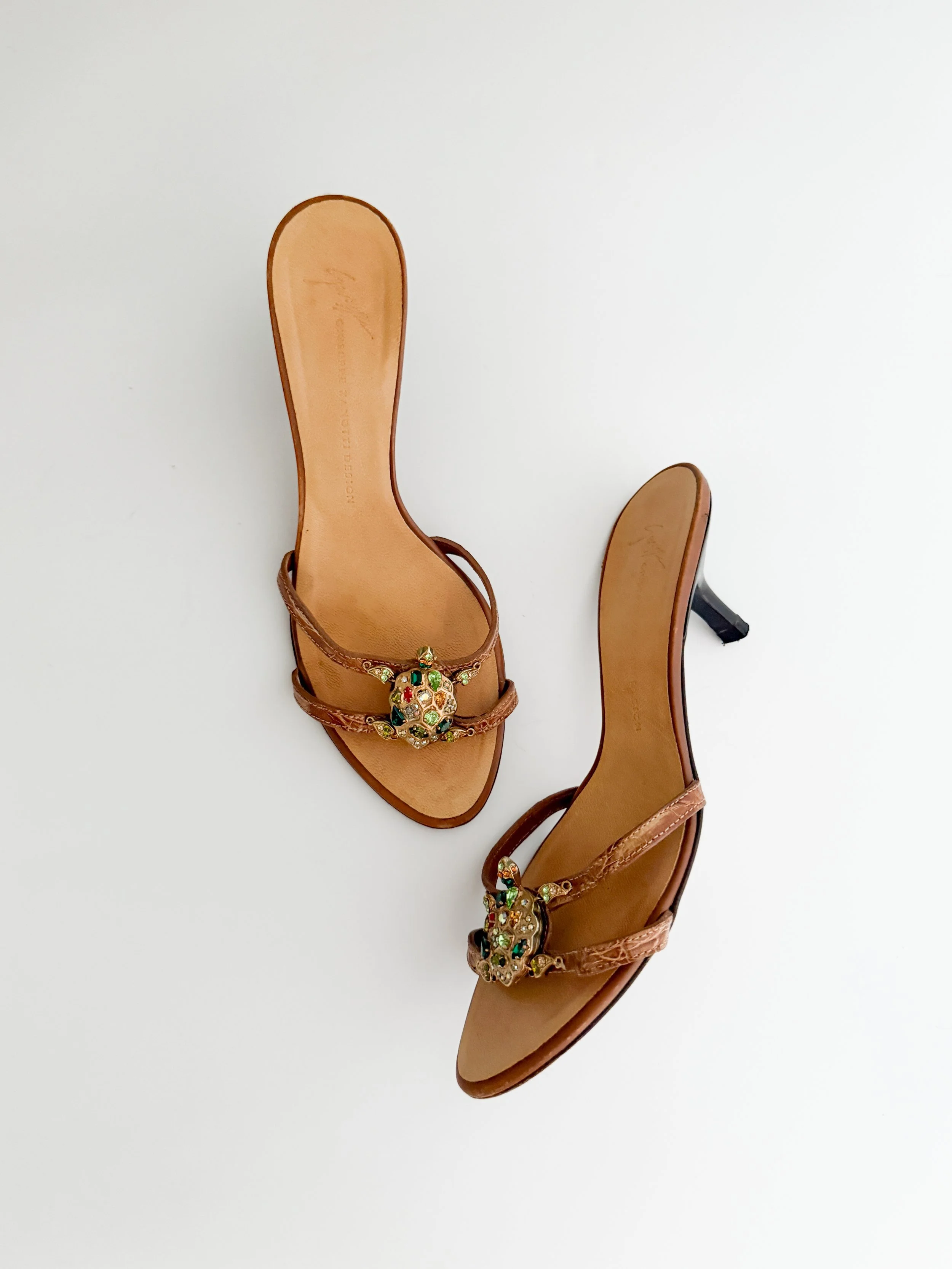 Giuseppe Zanotti Italian Luxury Turtle Jewel Sandal Heels (US 7 / IT 37)