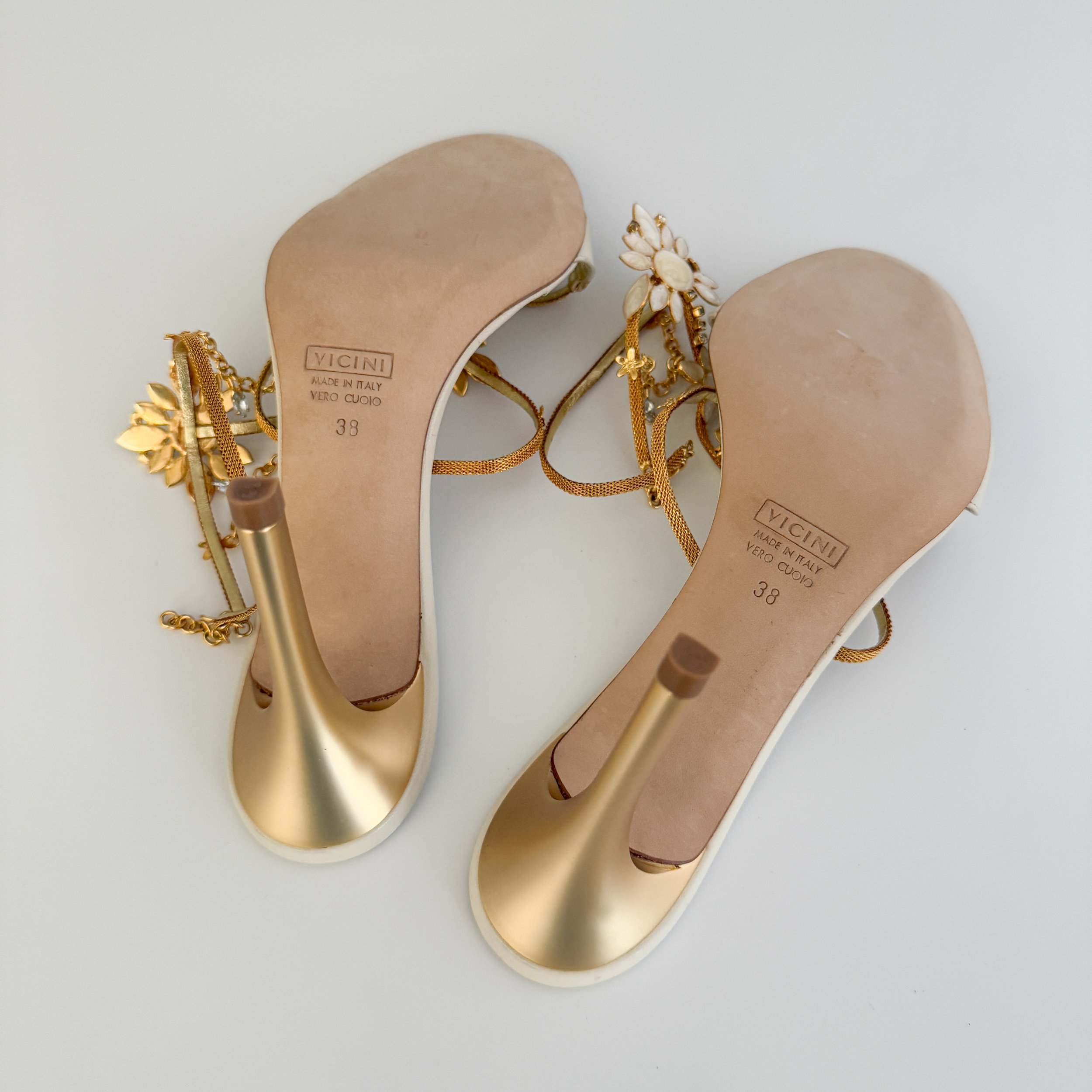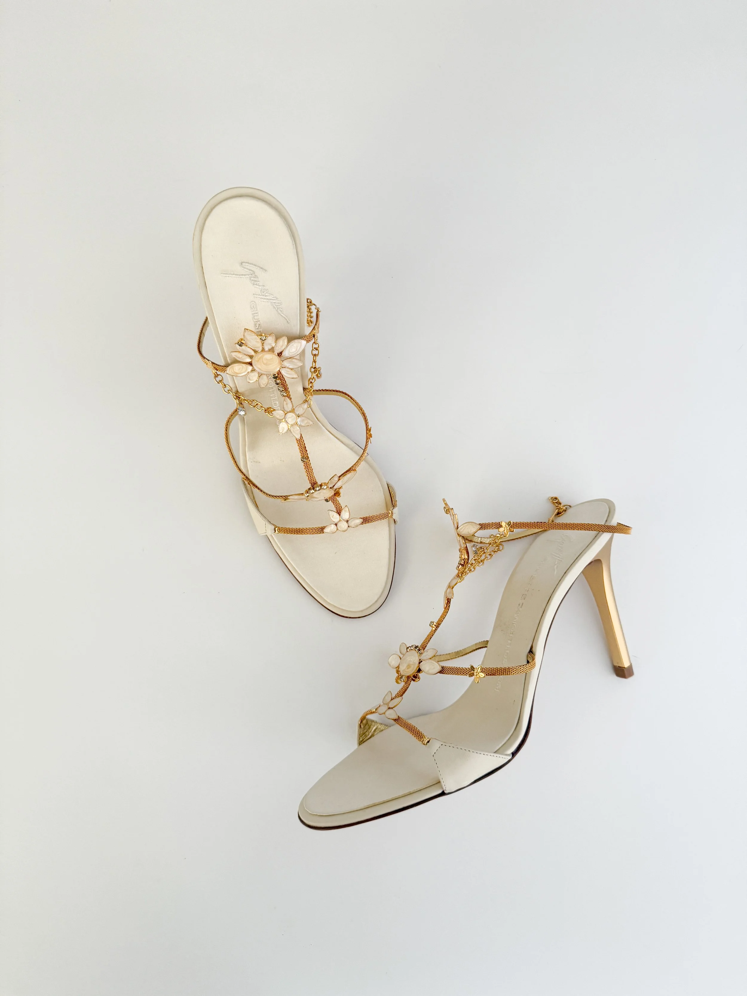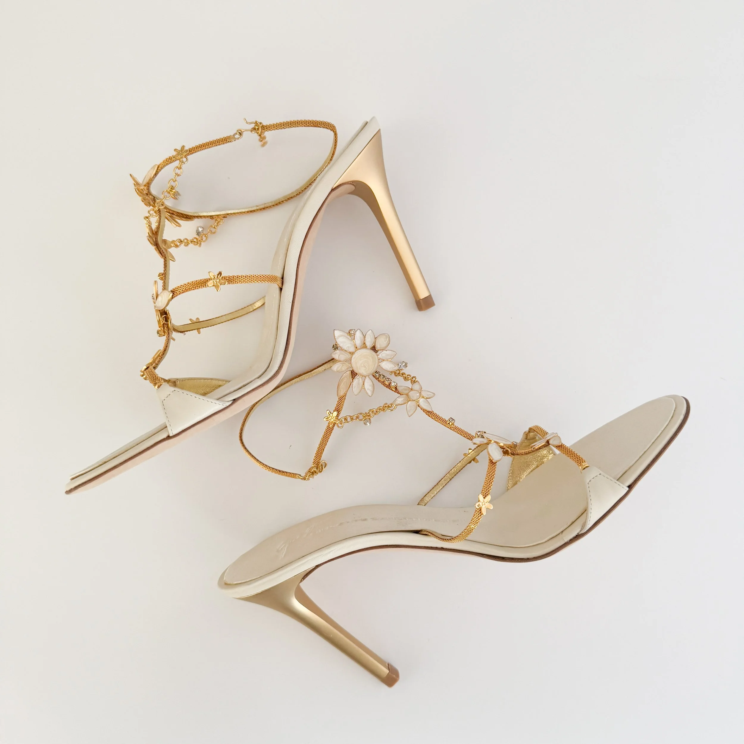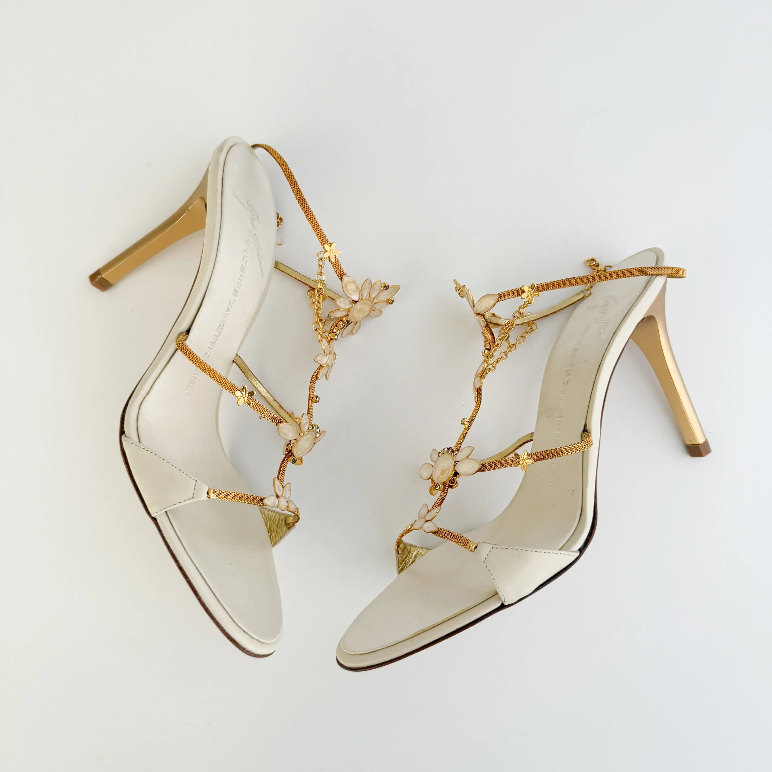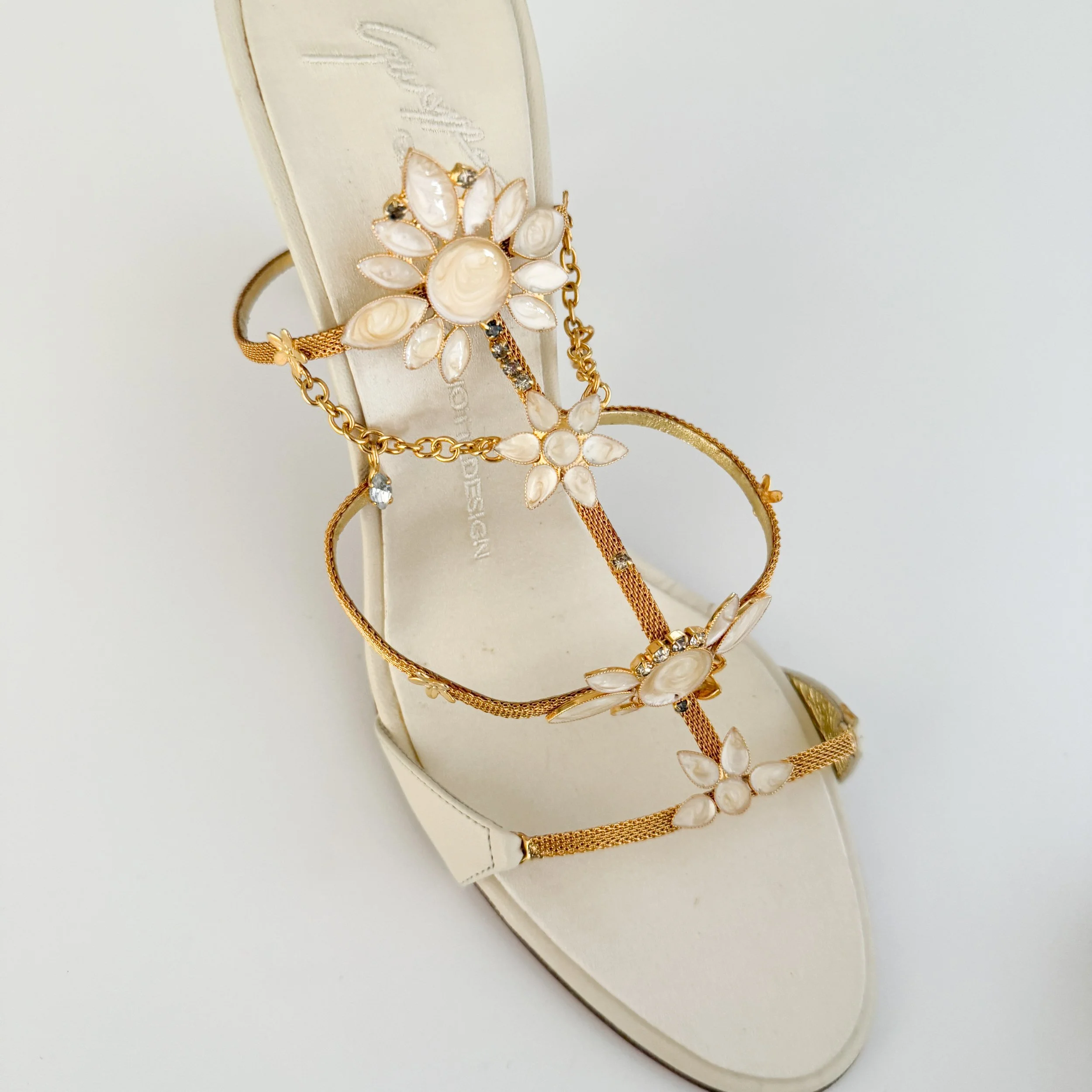 Giuseppe Zanotti Italian Luxury Ivory Rhinestone Sandal Heels (US 8 / IT 38)