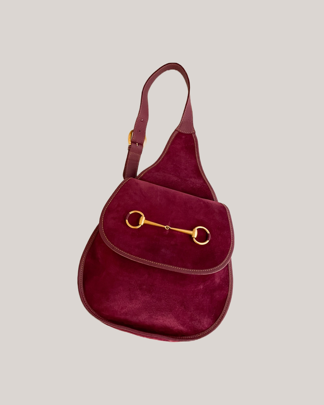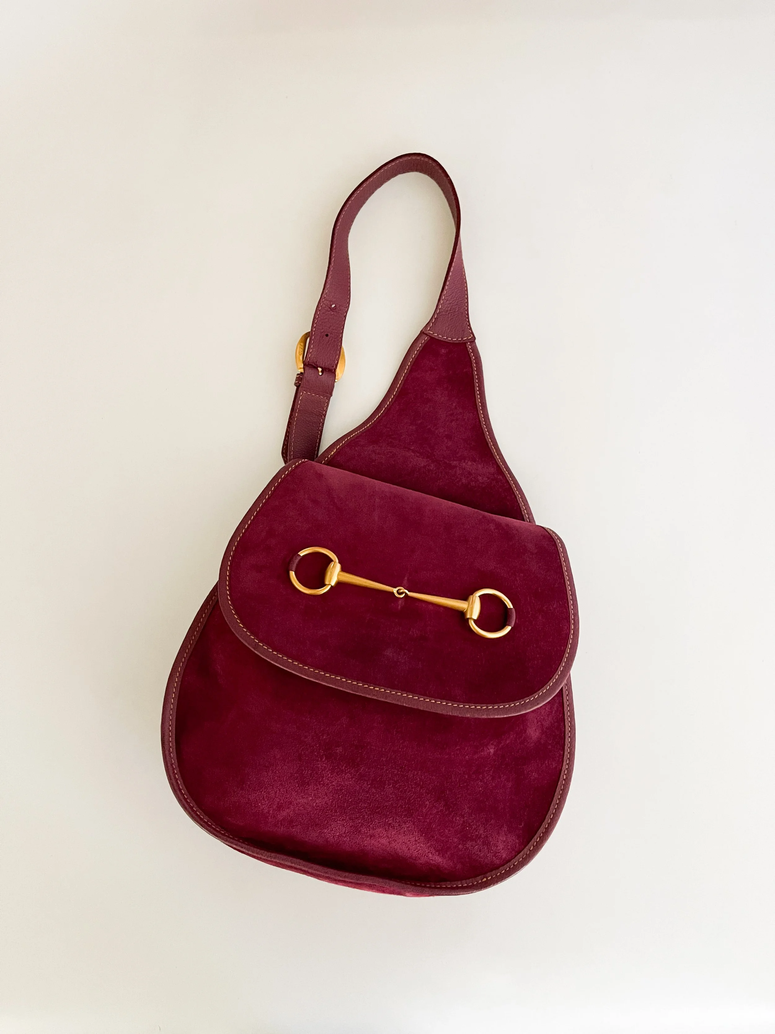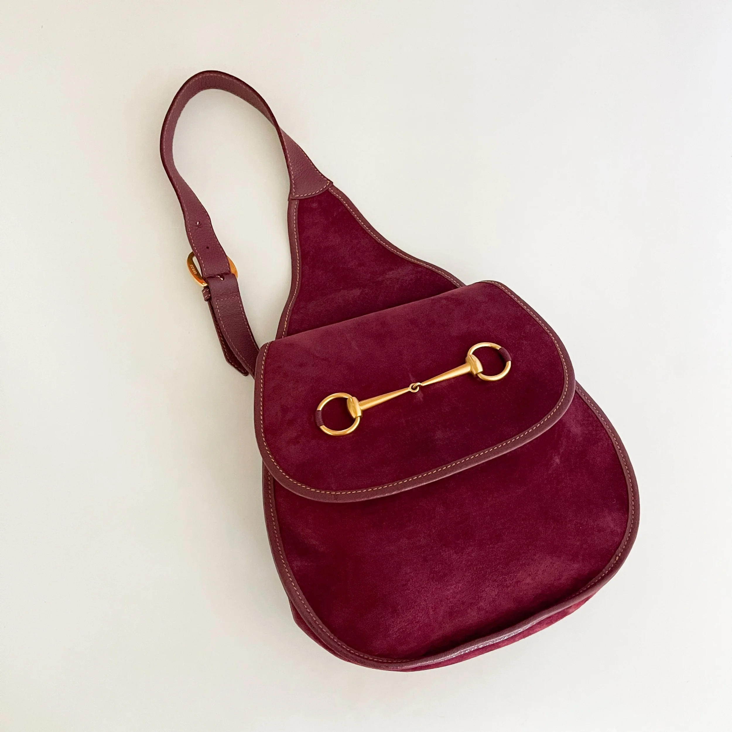The most chic suede horsebit purse from iconic Italian fashion house Gucci. The iconic horsebit style was originally conceived by the brand in 1955, and has since become a staple of Gucci.