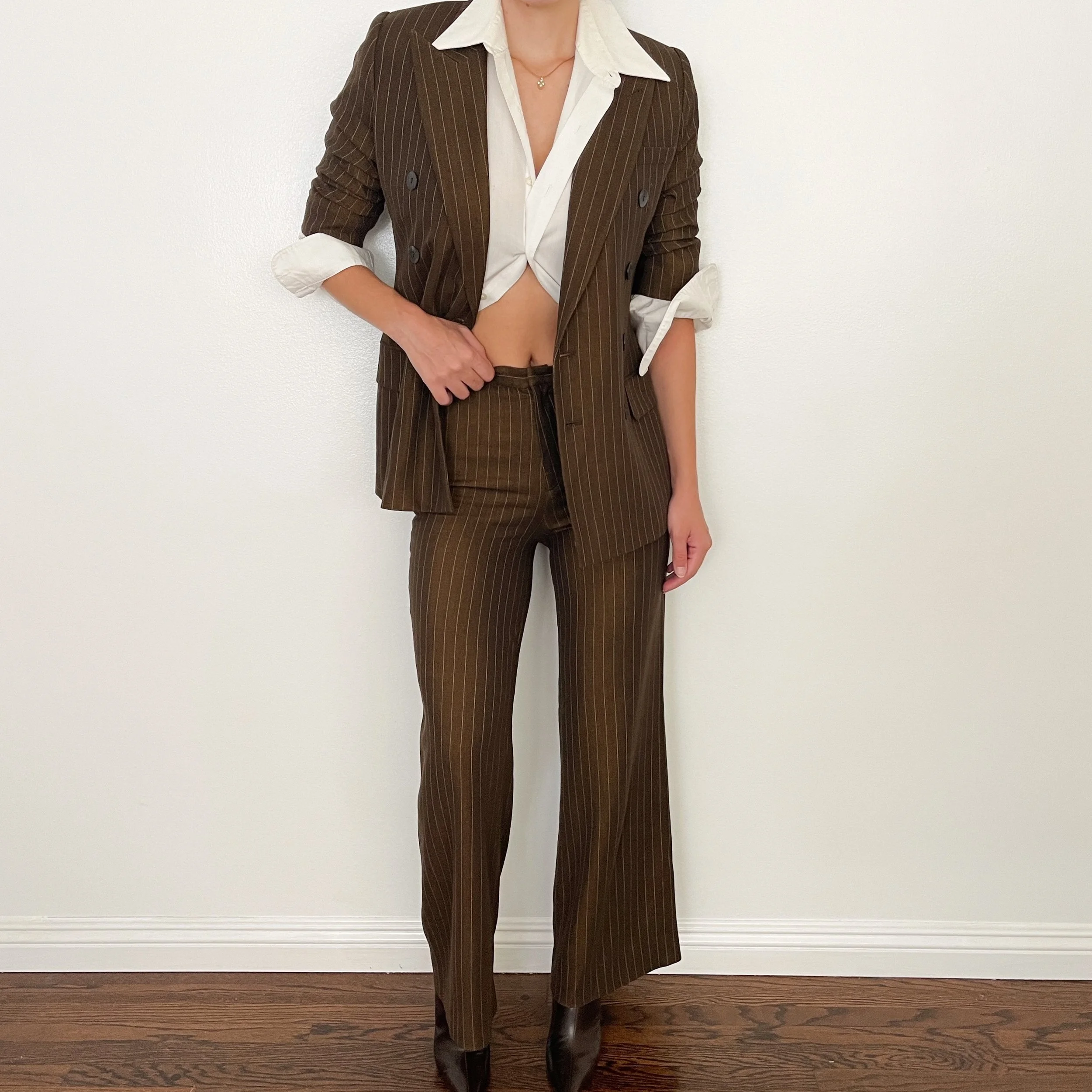 Jean Paul Gaultier Vintage F/W 1997 Brown Pinstripe Double-Breasted Pantsuit (Medium)