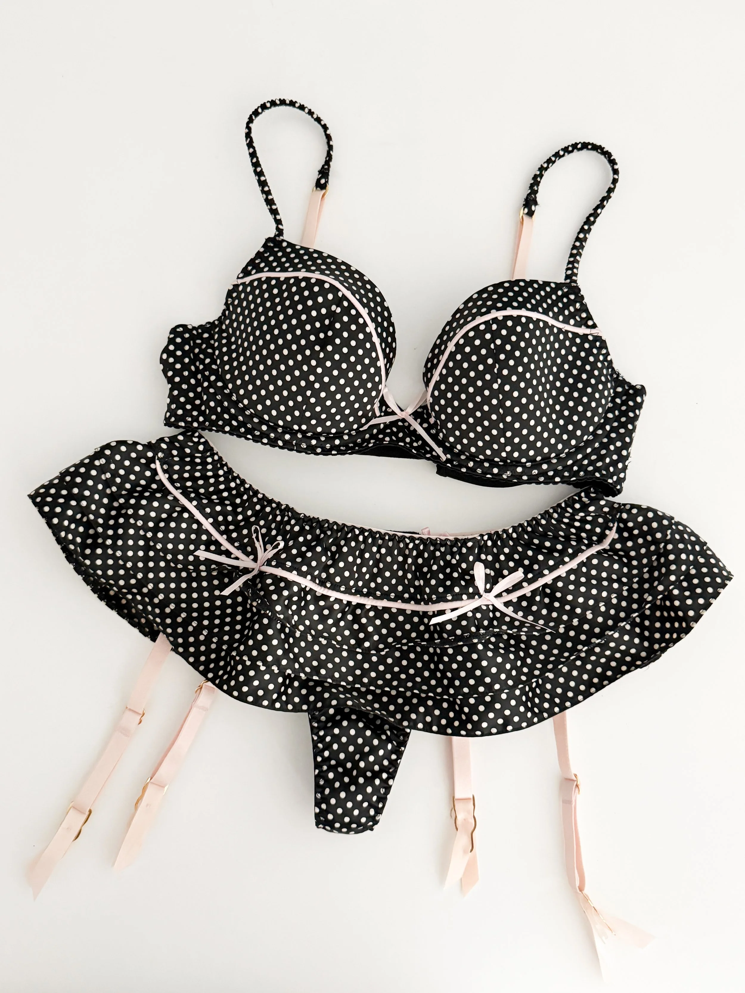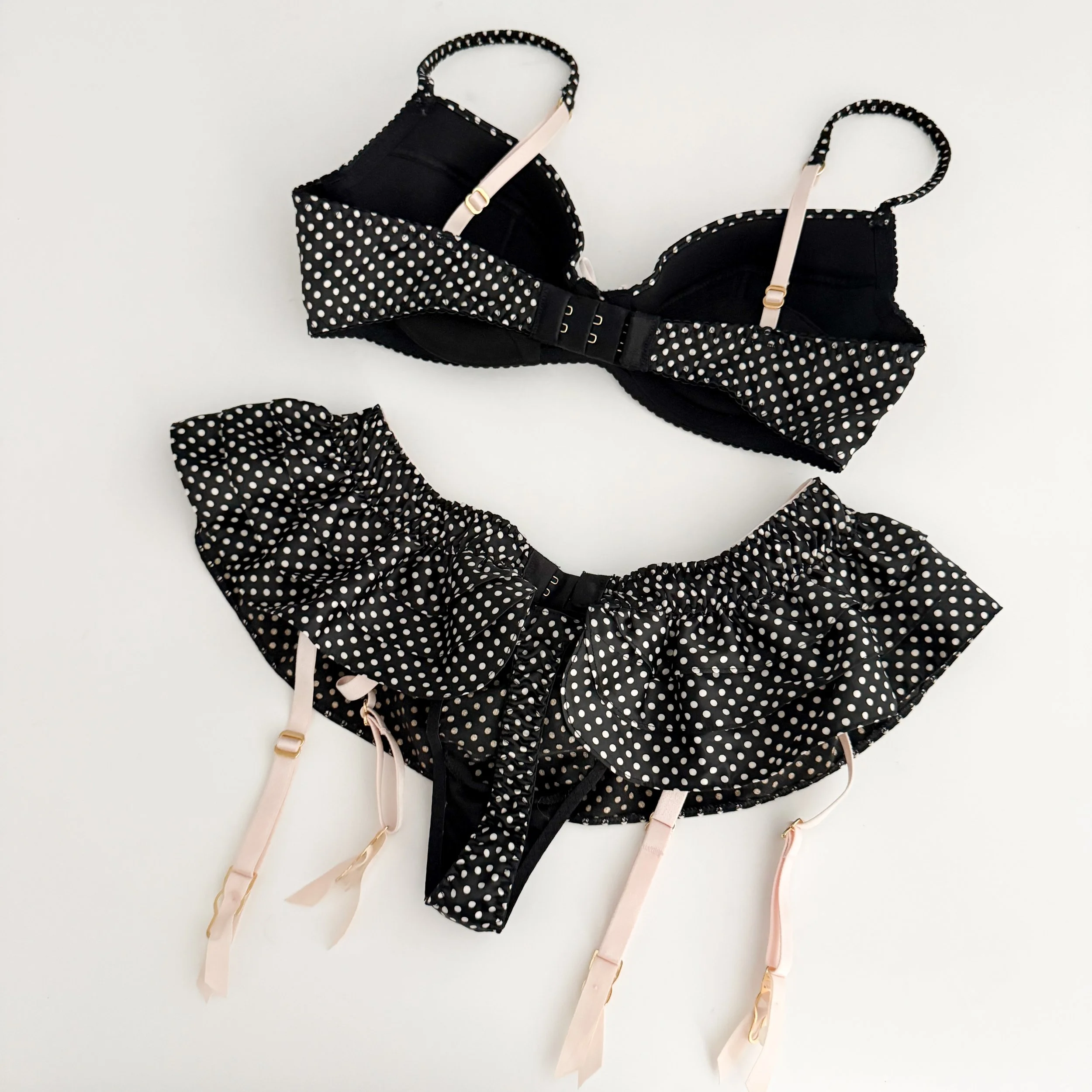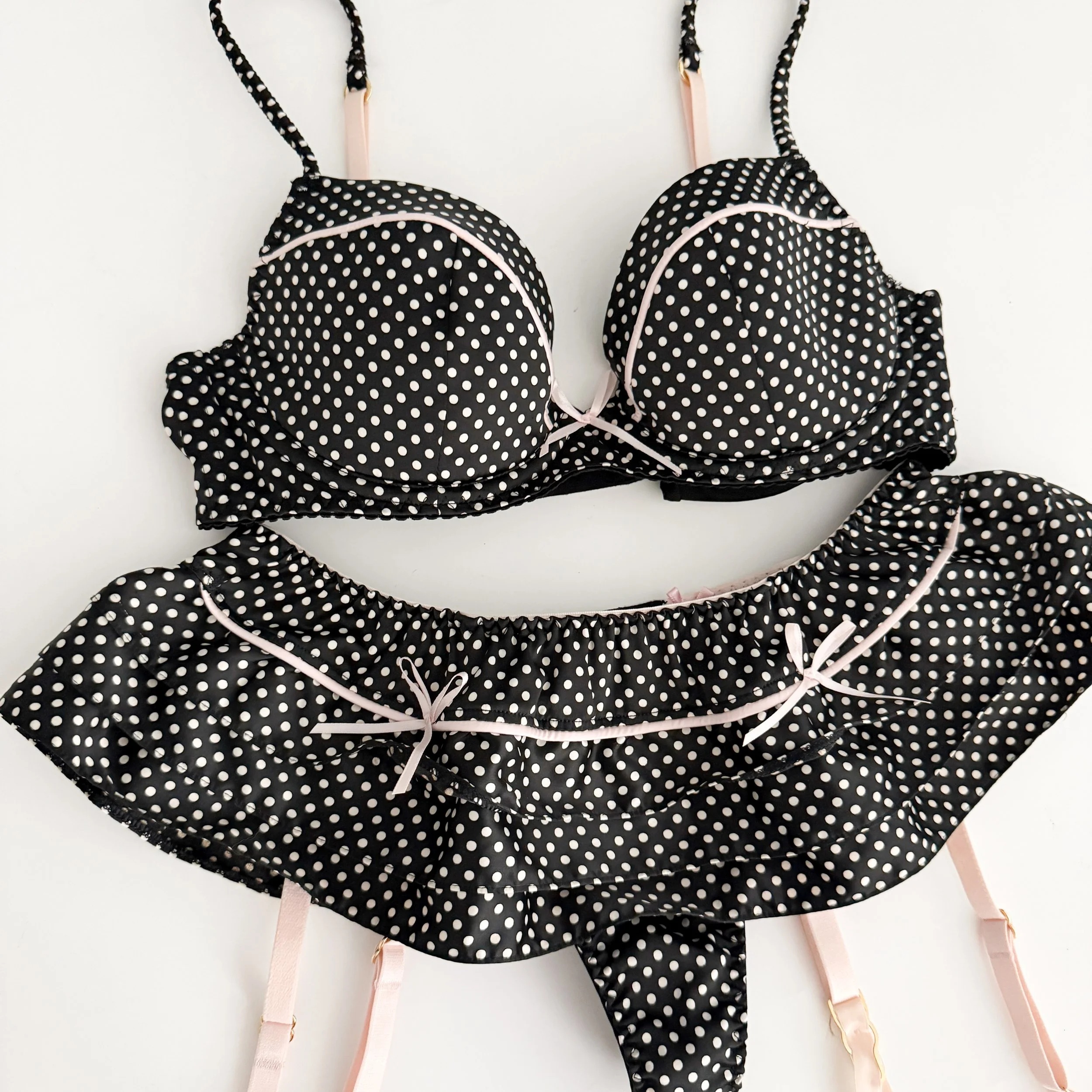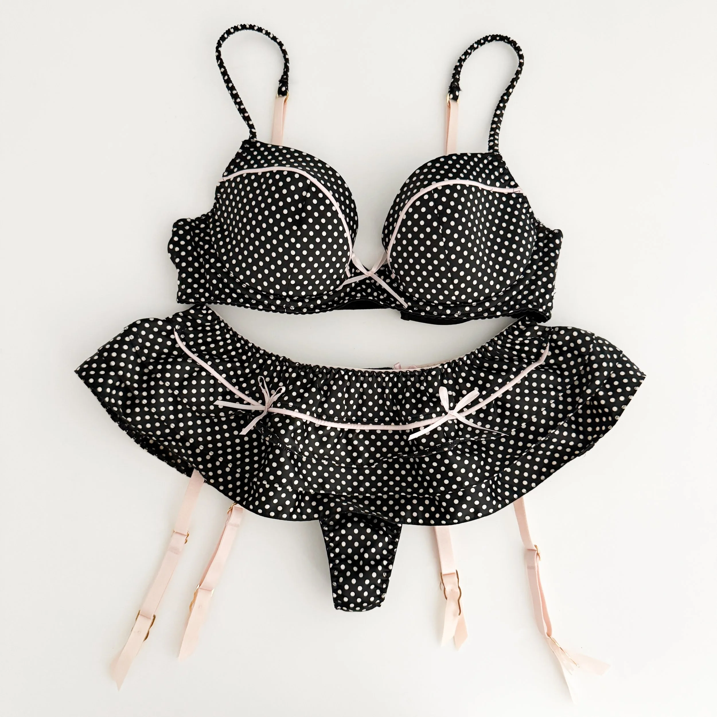 La Perla Maison F/W 1995 Vintage Navy & Ivory Embroidered Lace Trim Bra & Panty Lingerie Set (XS-S)