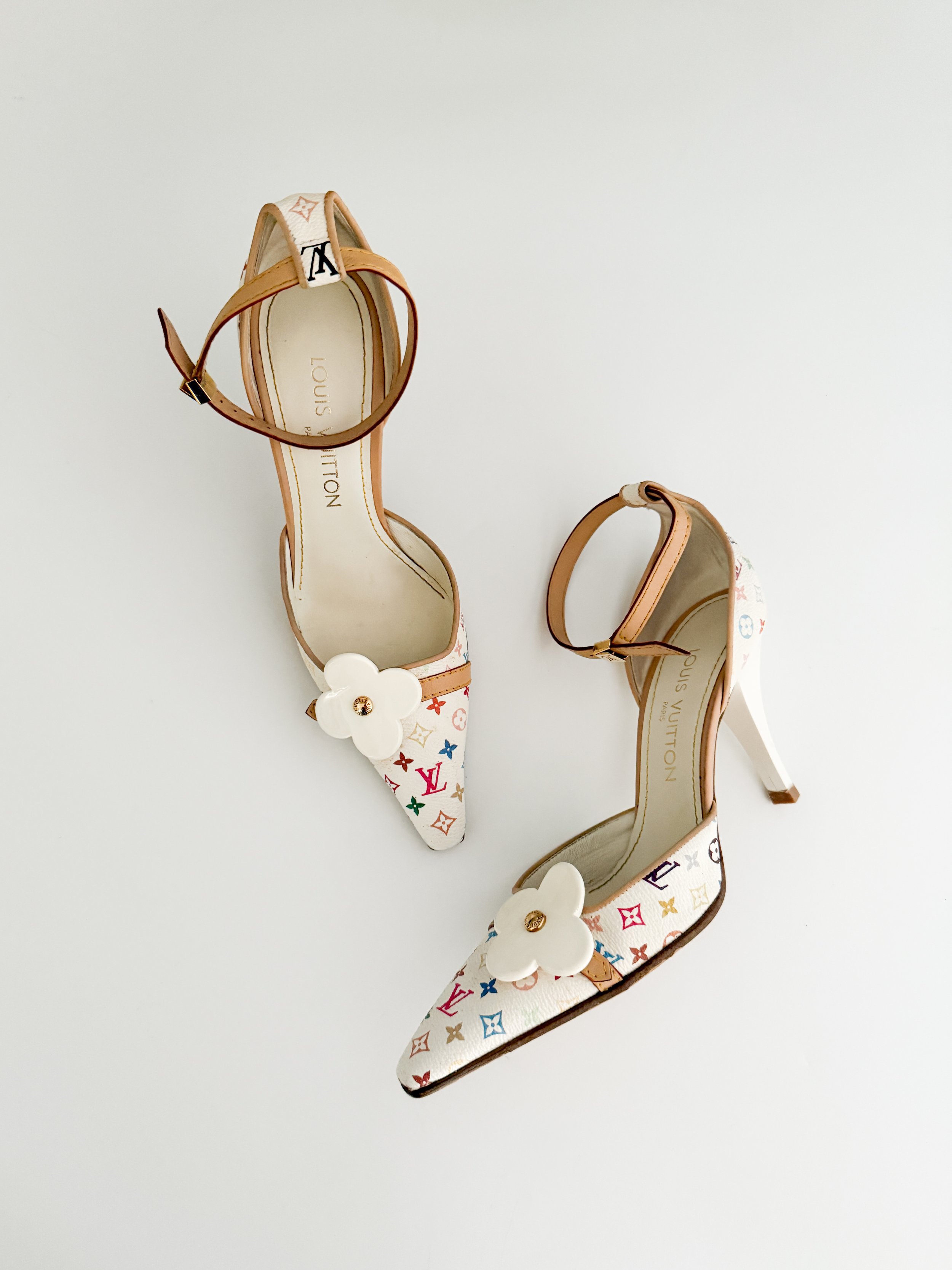 The most incredible vintage leather heels from Louis Vuitton. The “Monogram Multicolore” was introduced in the brand’s 2003 collaboration with iconic Japanese artist Takashi Murakami.