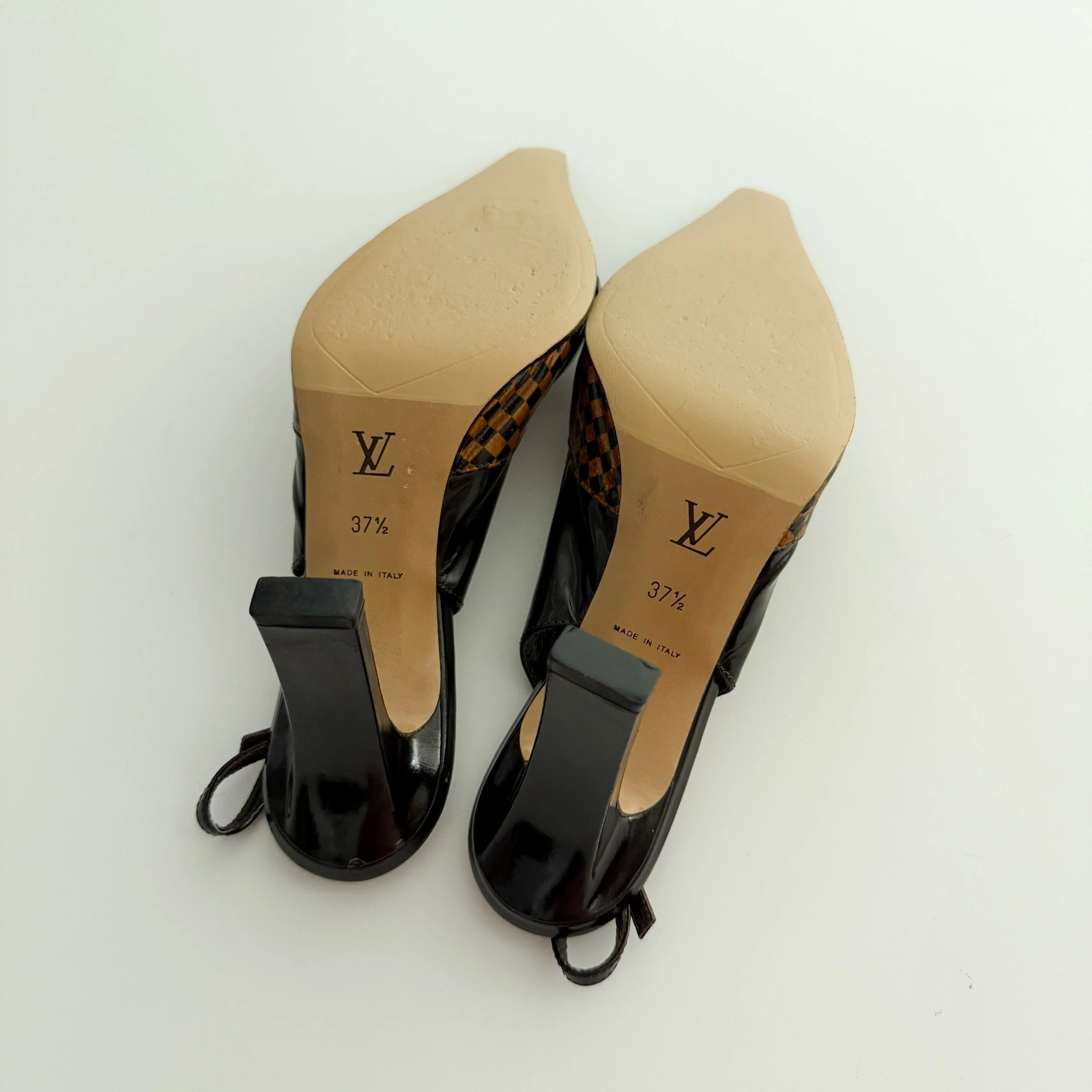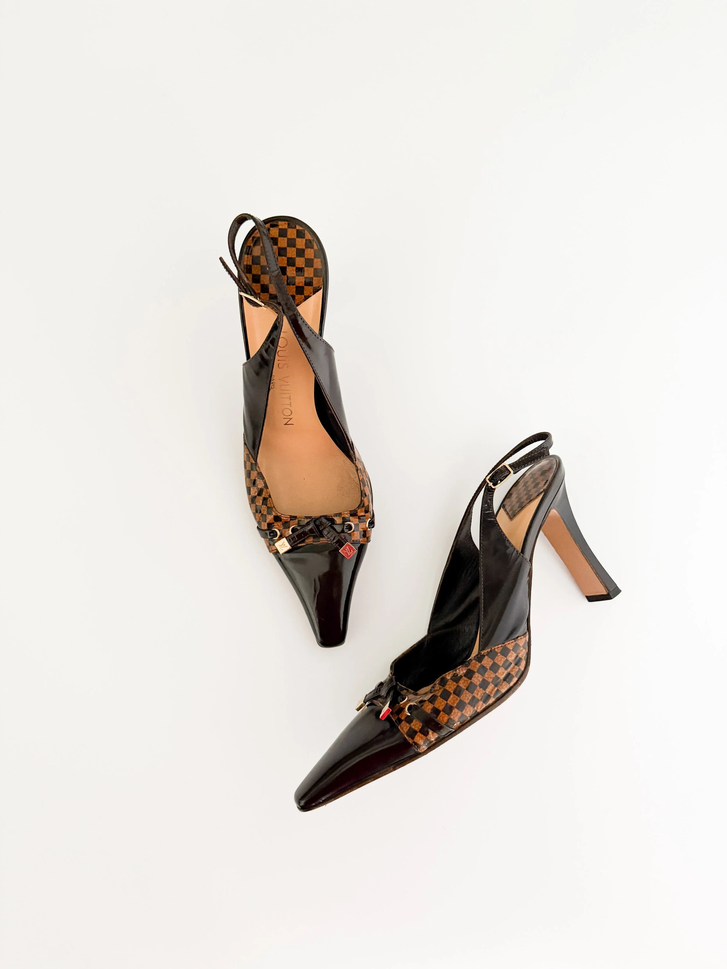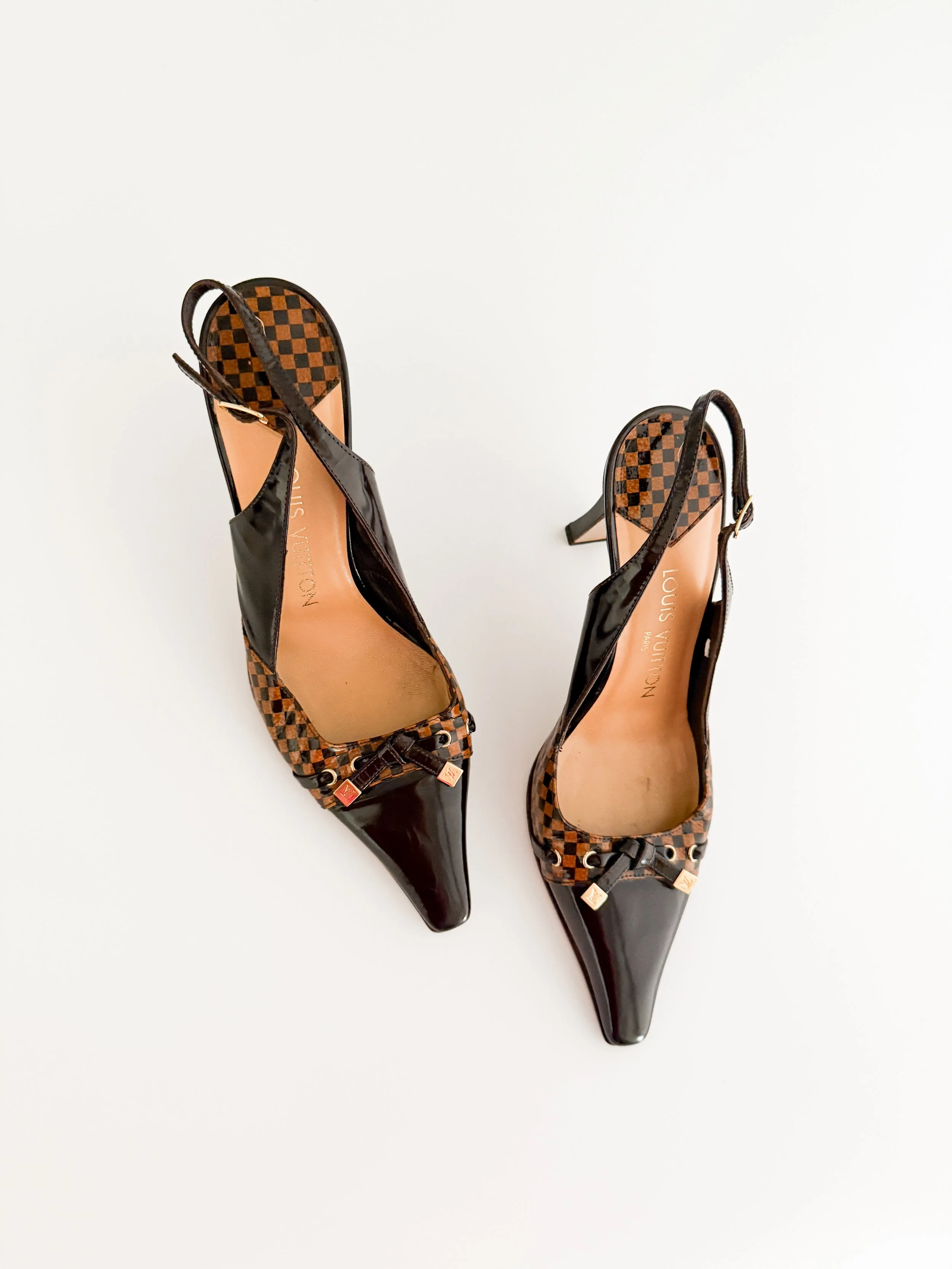 Louis Vuitton Vintage Brown Damier Checkered "LV" Slingback Heels (US 7 / IT 37.5)