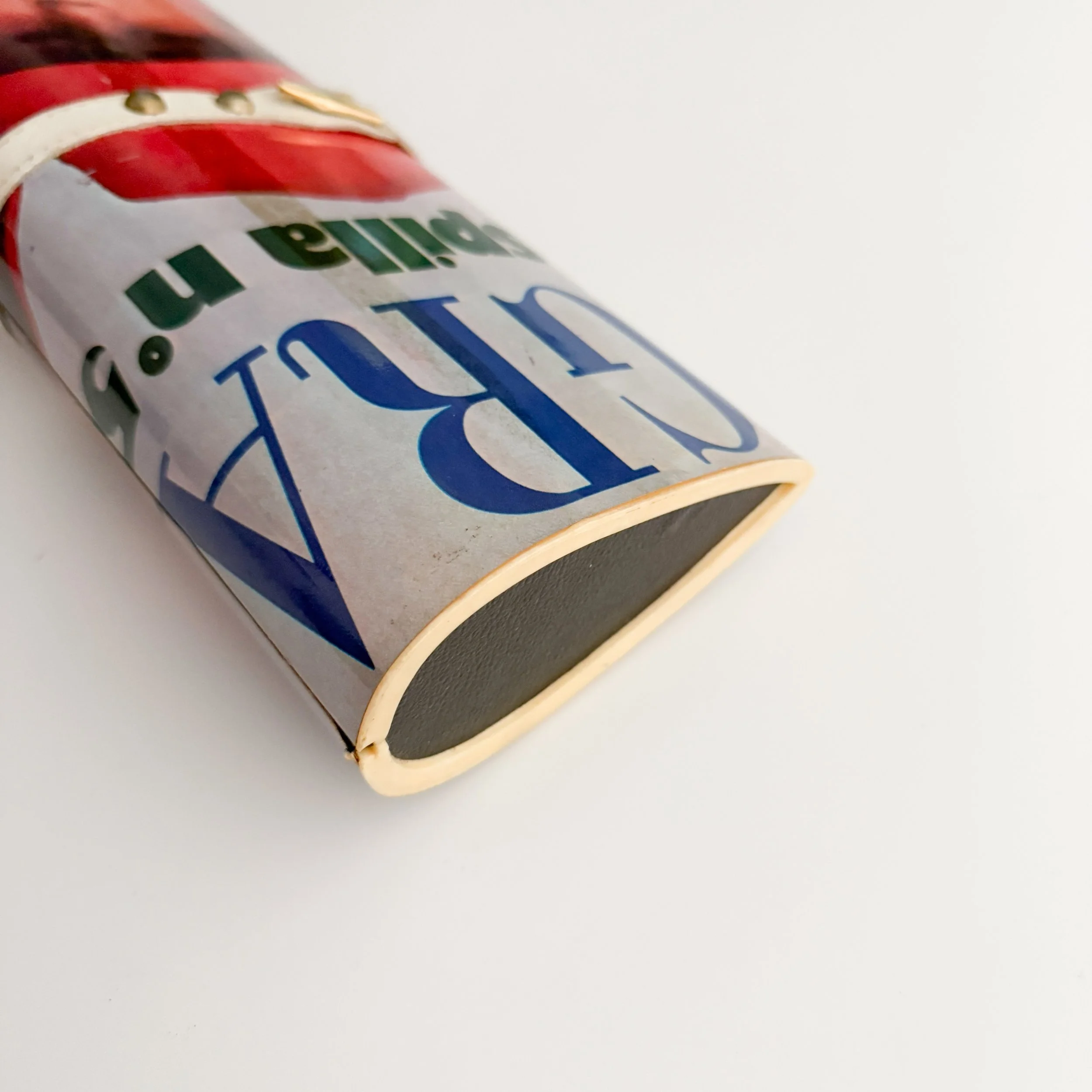 A similar vintage magazine clutch style can be seen on Carrie Bradshaw in Season 3, Episode 8 of Sex and the City.