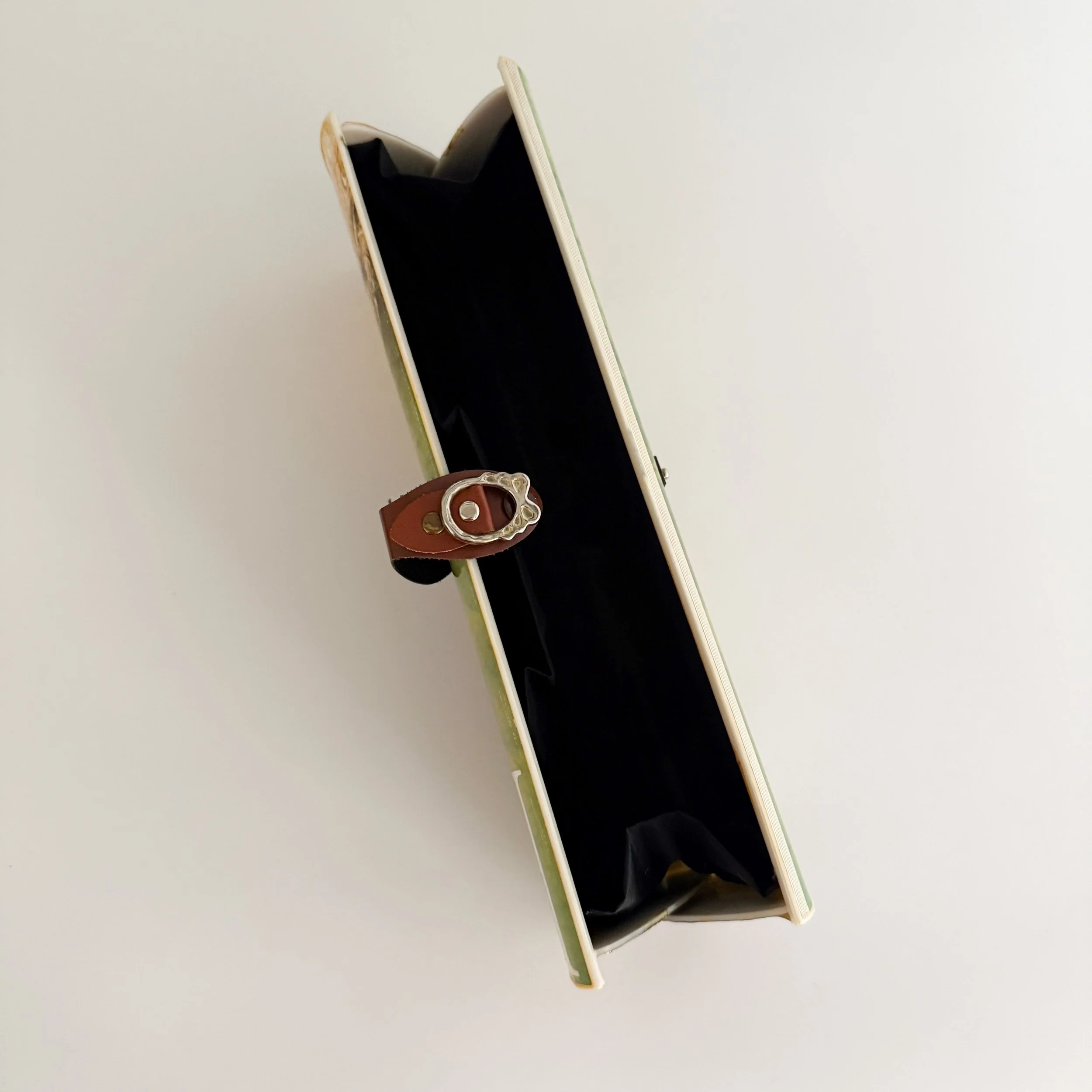 A similar clutch style from the same brand can be seen on Carrie Bradshaw in Season 3, Episode 8 of Sex and the City.