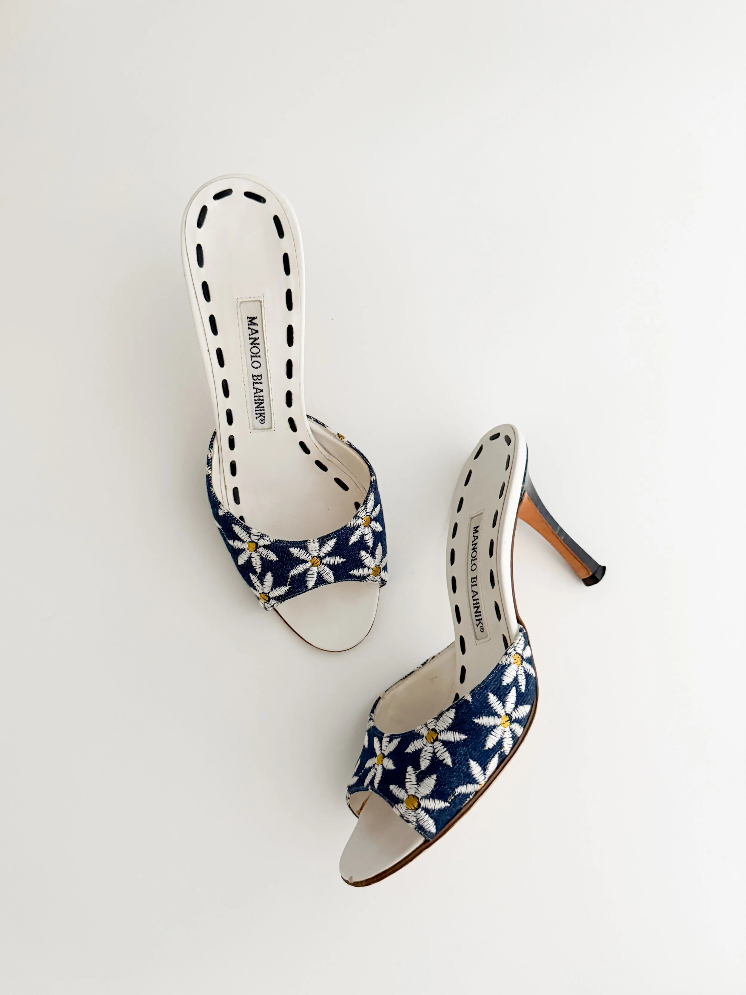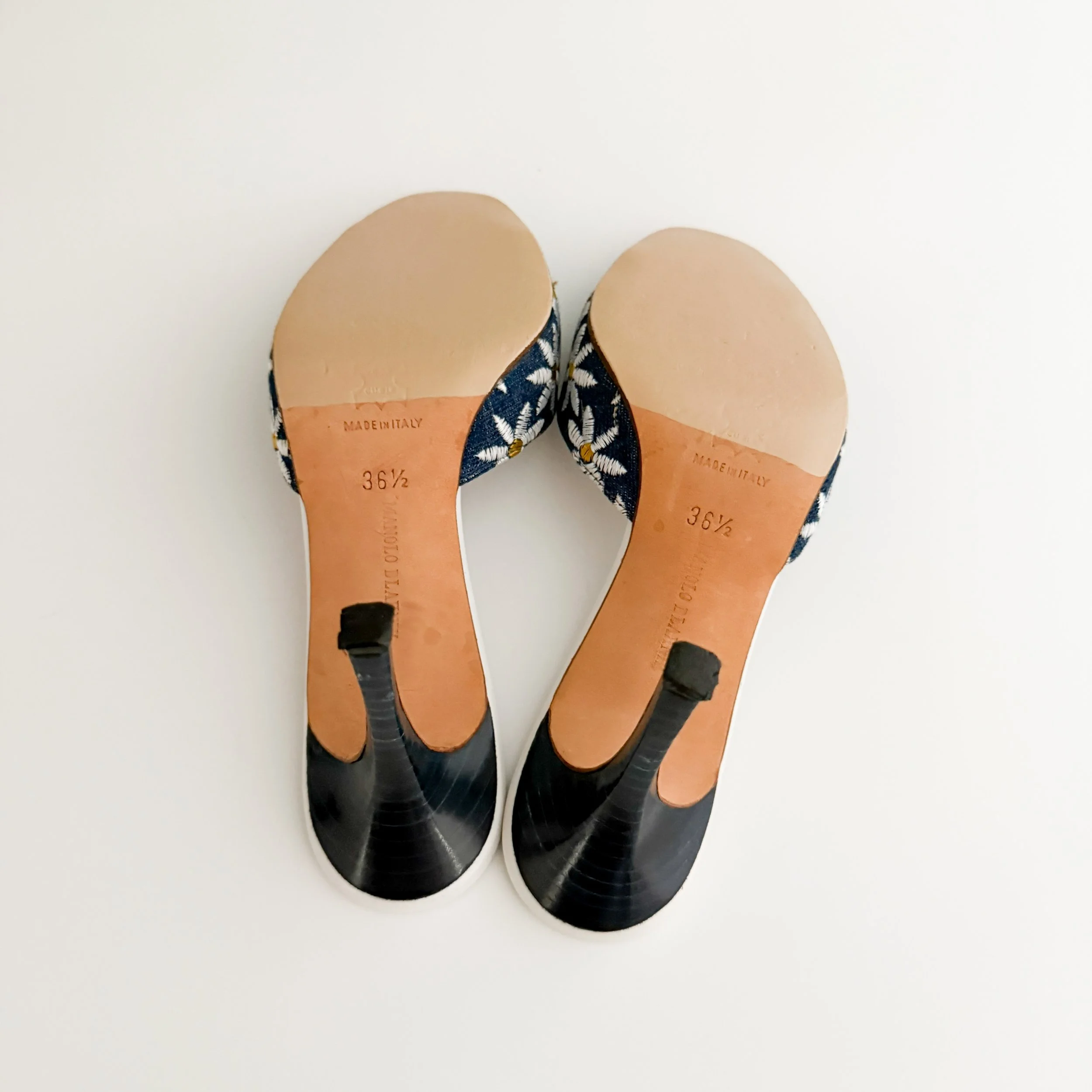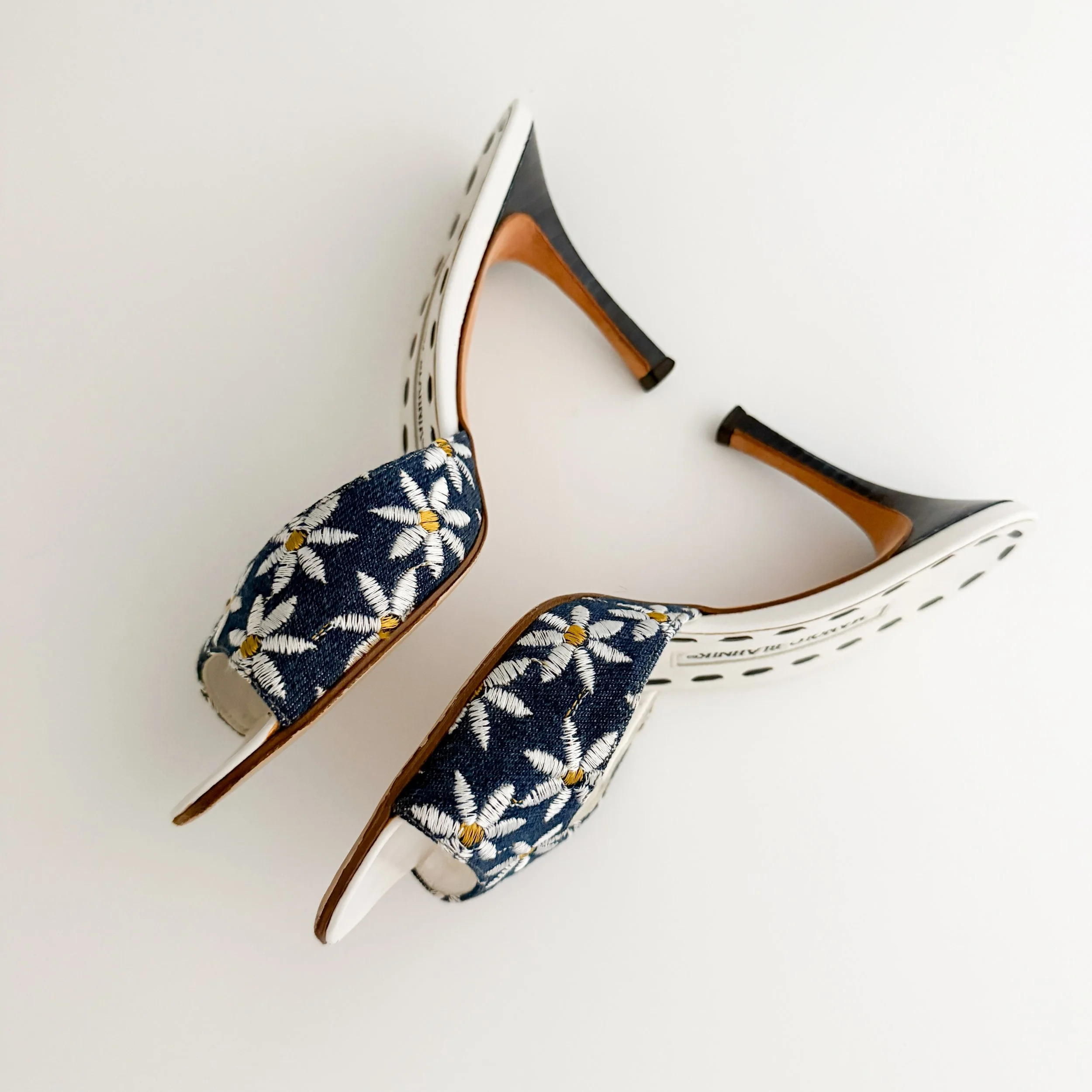 The most chic eyelet heels from iconic luxury shoe designer Manolo Blahnik. A pair of heels to treasure forever. Perfect for the spring and summer seasons. A coveted, rare pair.