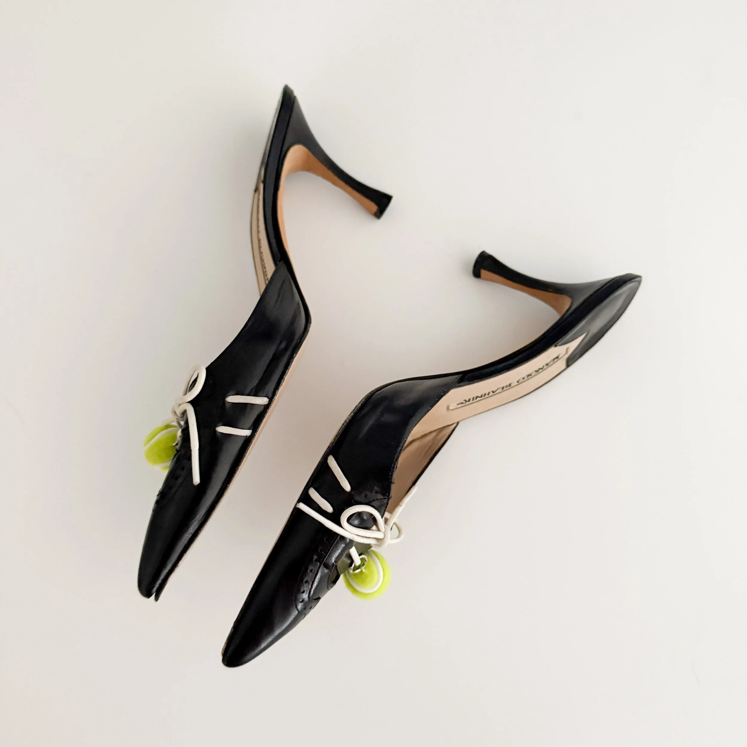 Manolo Blahnik Iconic Tan Leather Eyelet D'Orsay Heels (IT 36.5)