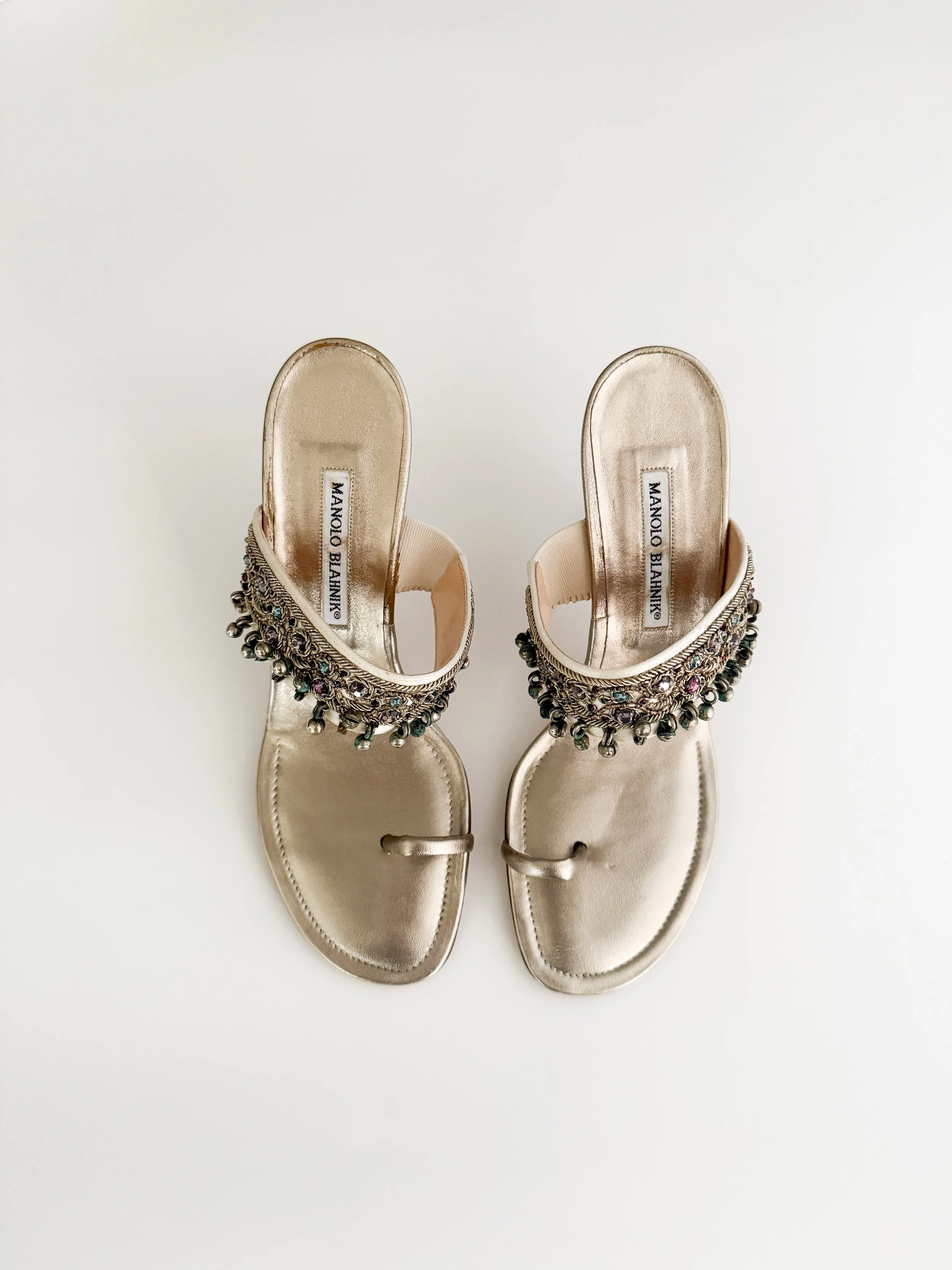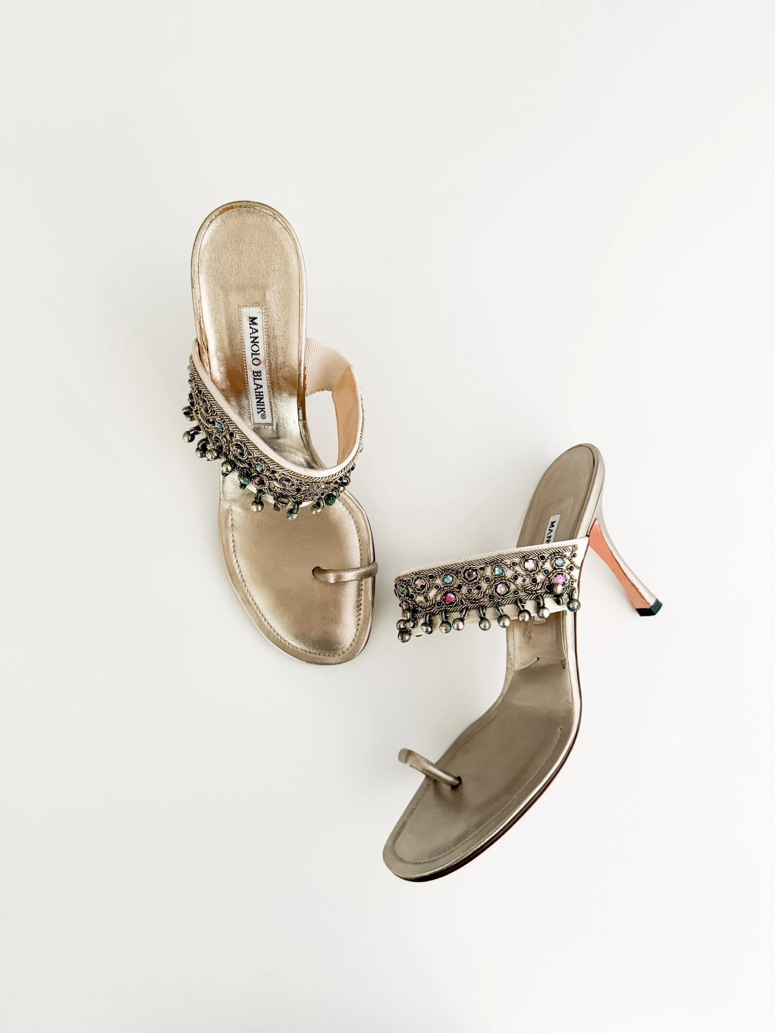 Manolo Blahnik Rhinestone Beaded Sandal Heels (US 9 / IT 40)