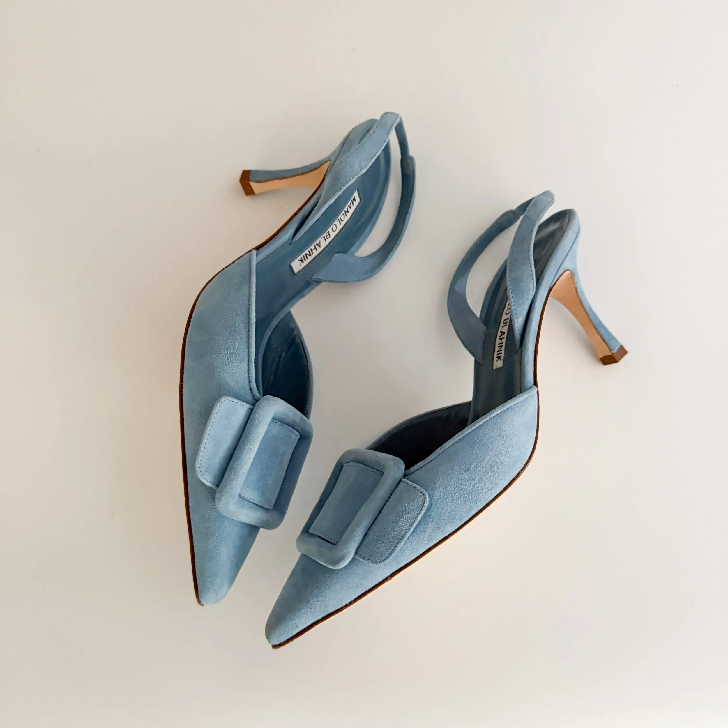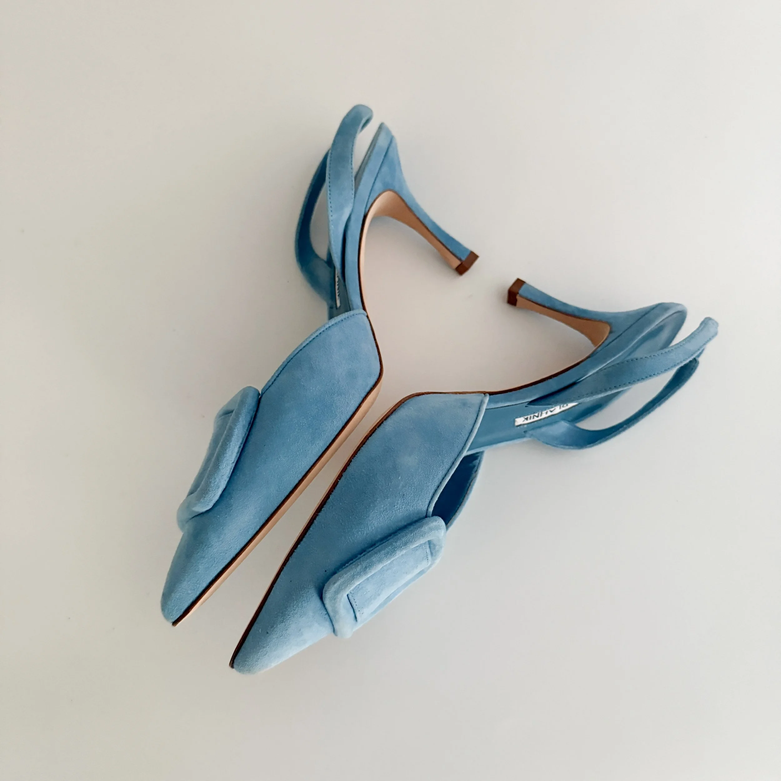 Manolo Blahnik Blue Buckle Slingback Mule Heels (US 8 / IT 38)