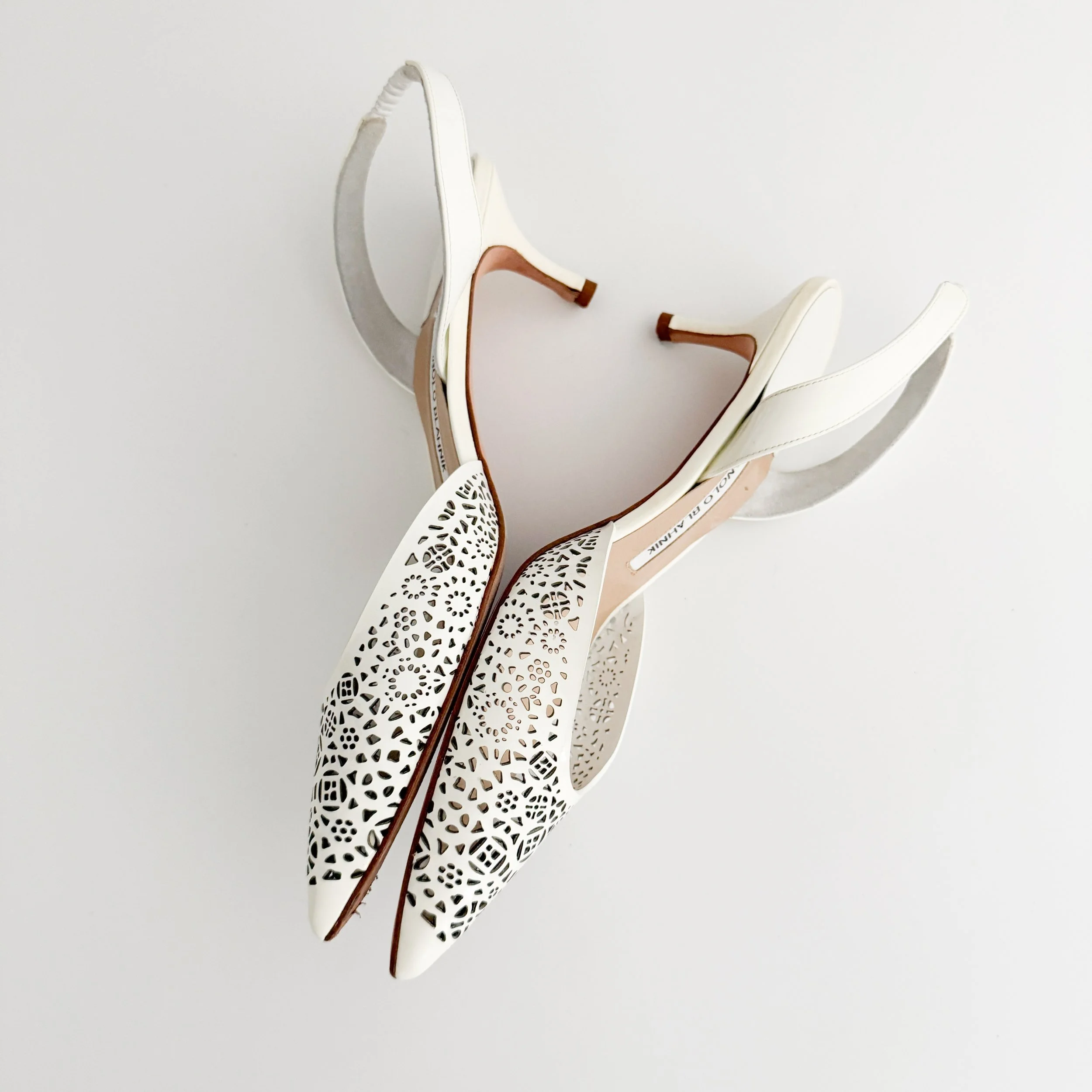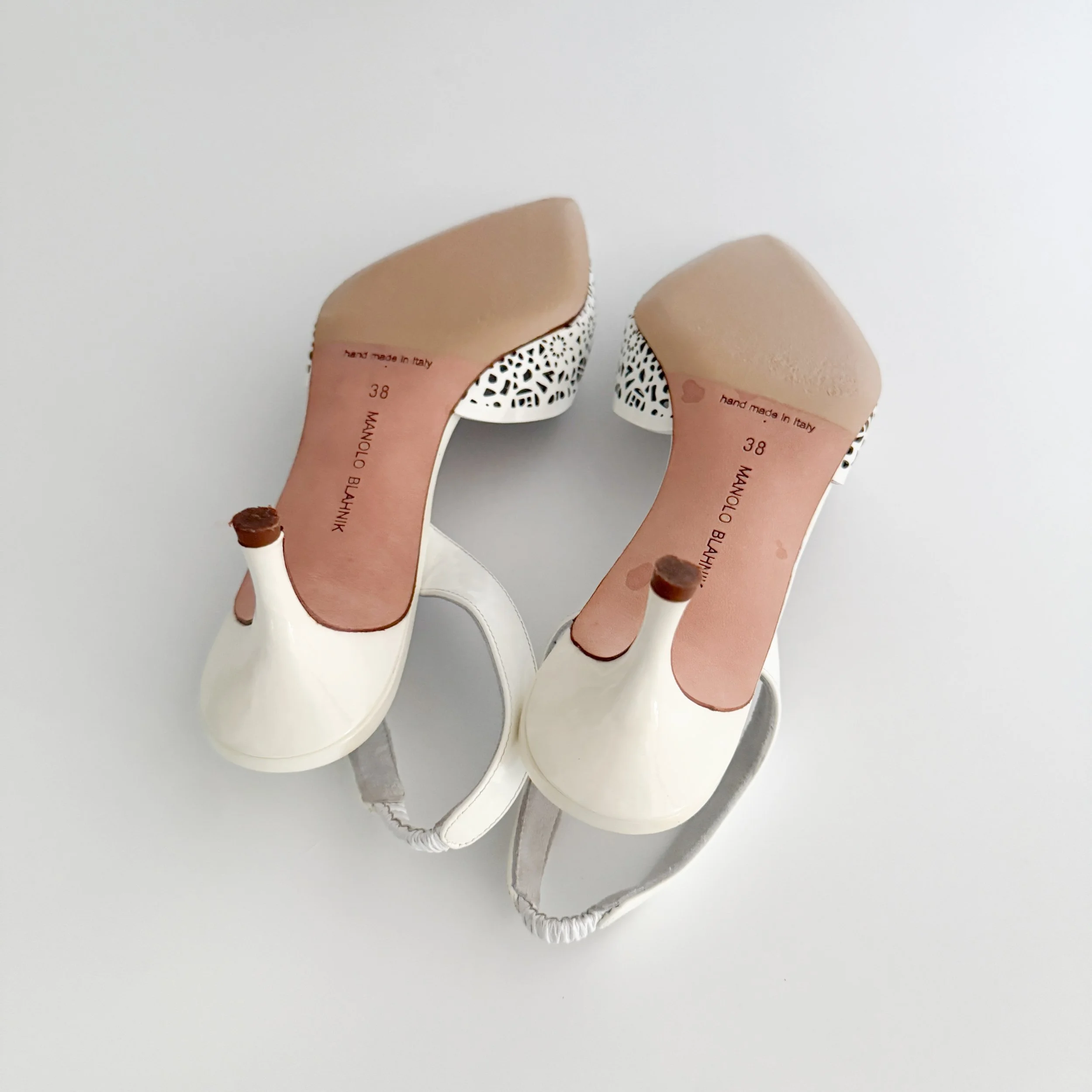 Manolo Blahnik White Cutout Slingback Mule Heels (US 8 / IT 38)