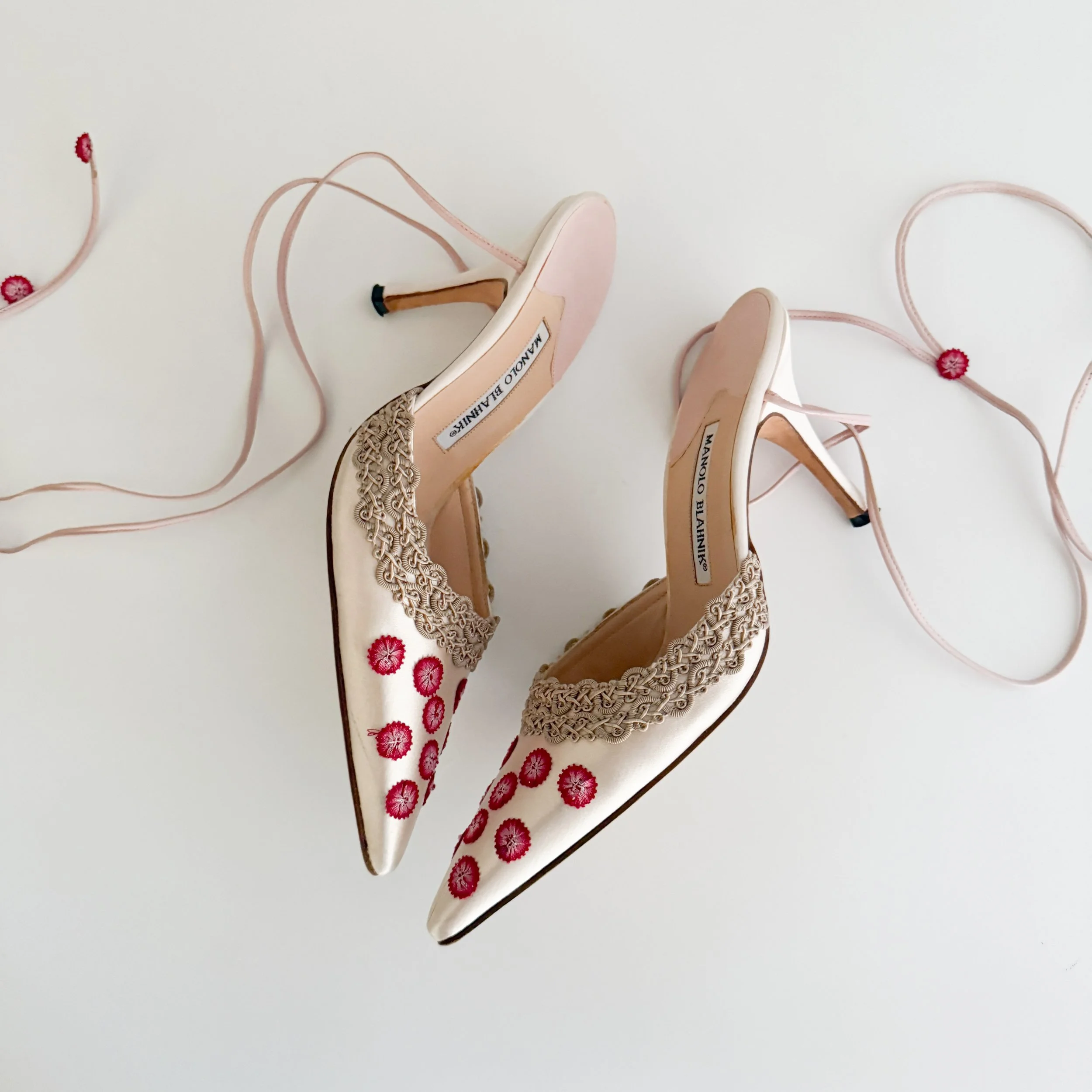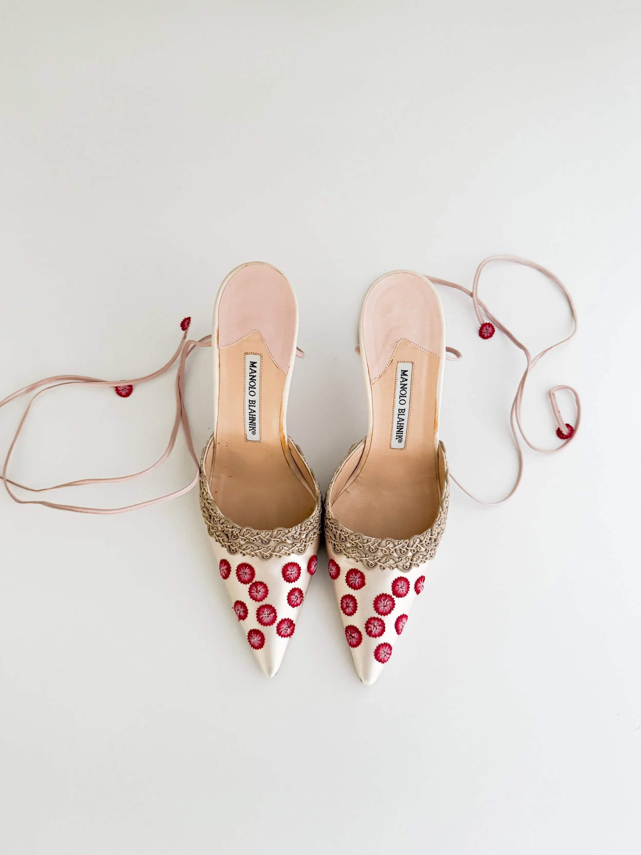 Manolo Blahnik Embellished Ankle Wrap Mule Heels (US 8 / IT 38)