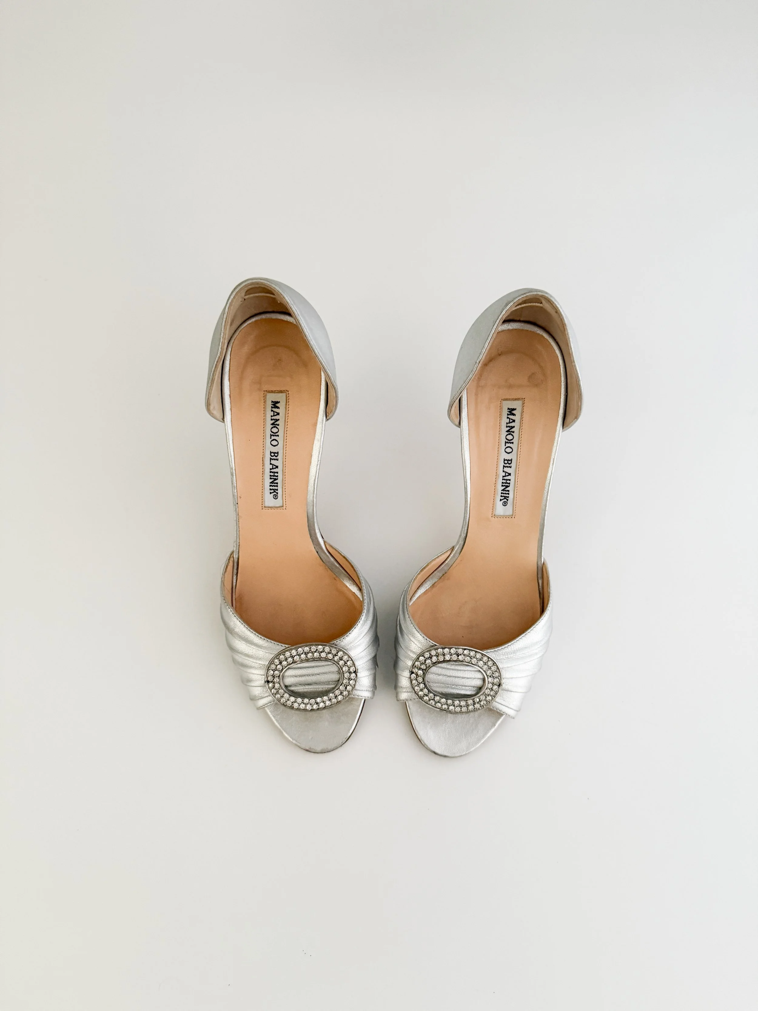 Manolo Blahnik Iconic Silver D'Orsay Rhinestone Heels - As Seen On Sex and the City (IT 36)