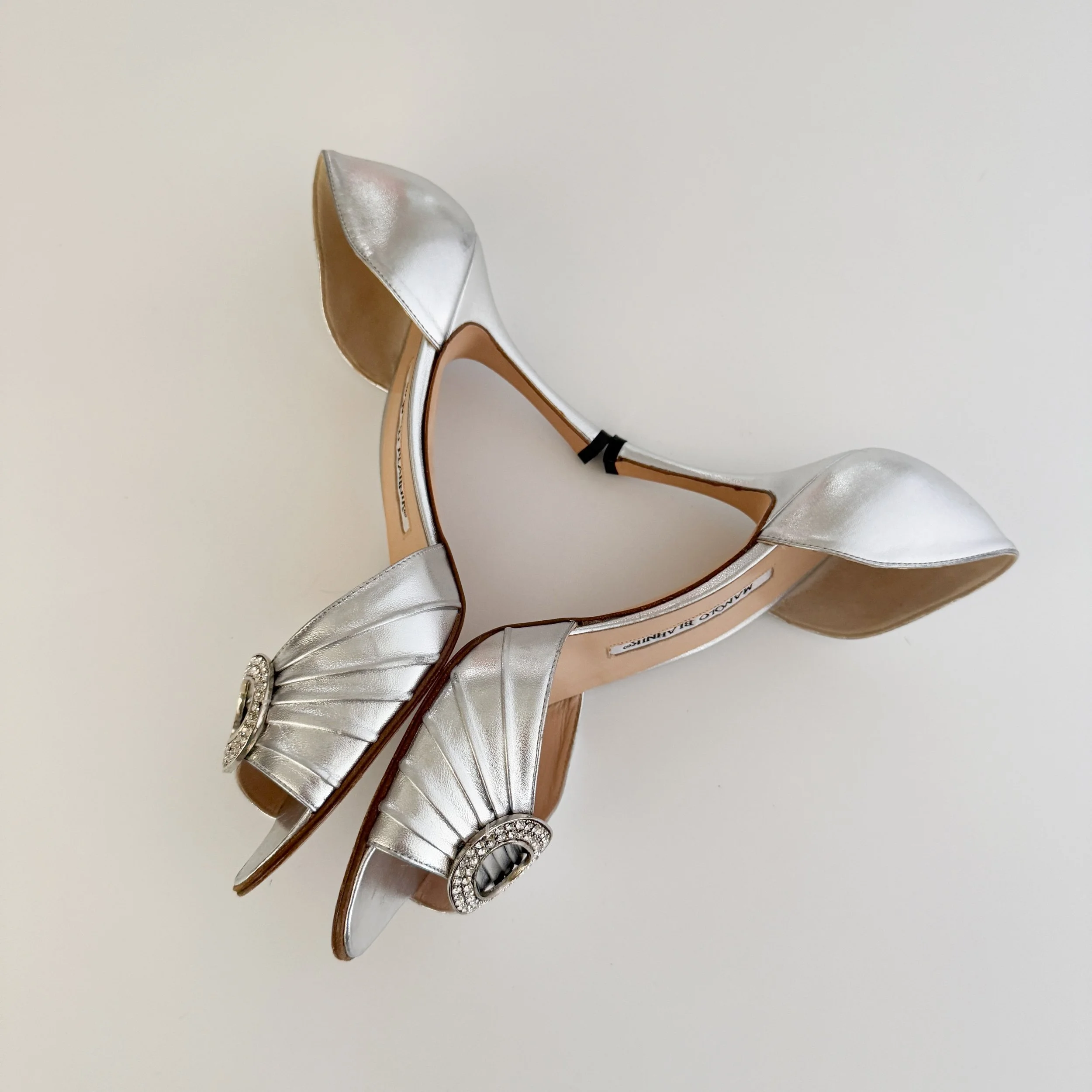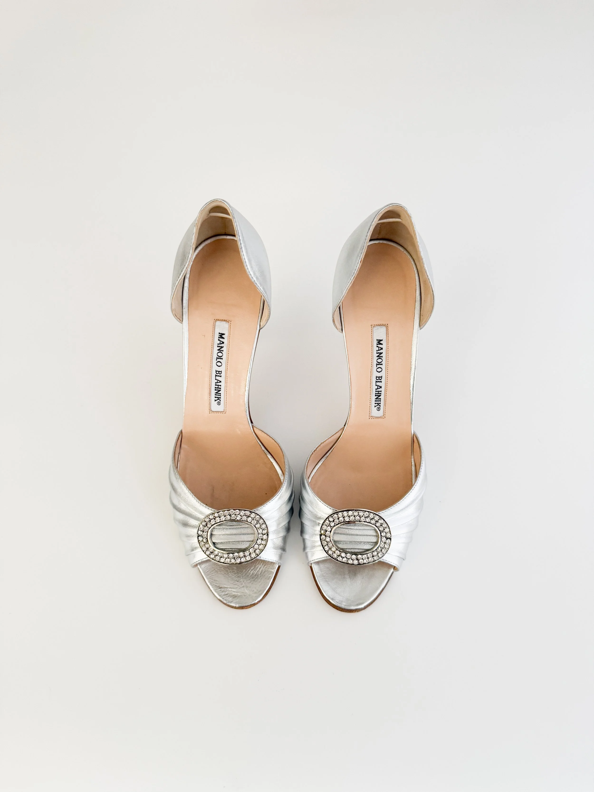 Manolo Blahnik Iconic Silver D'Orsay Rhinestone Heels - As Seen On Sex and the City (US 9.5 / IT 39)