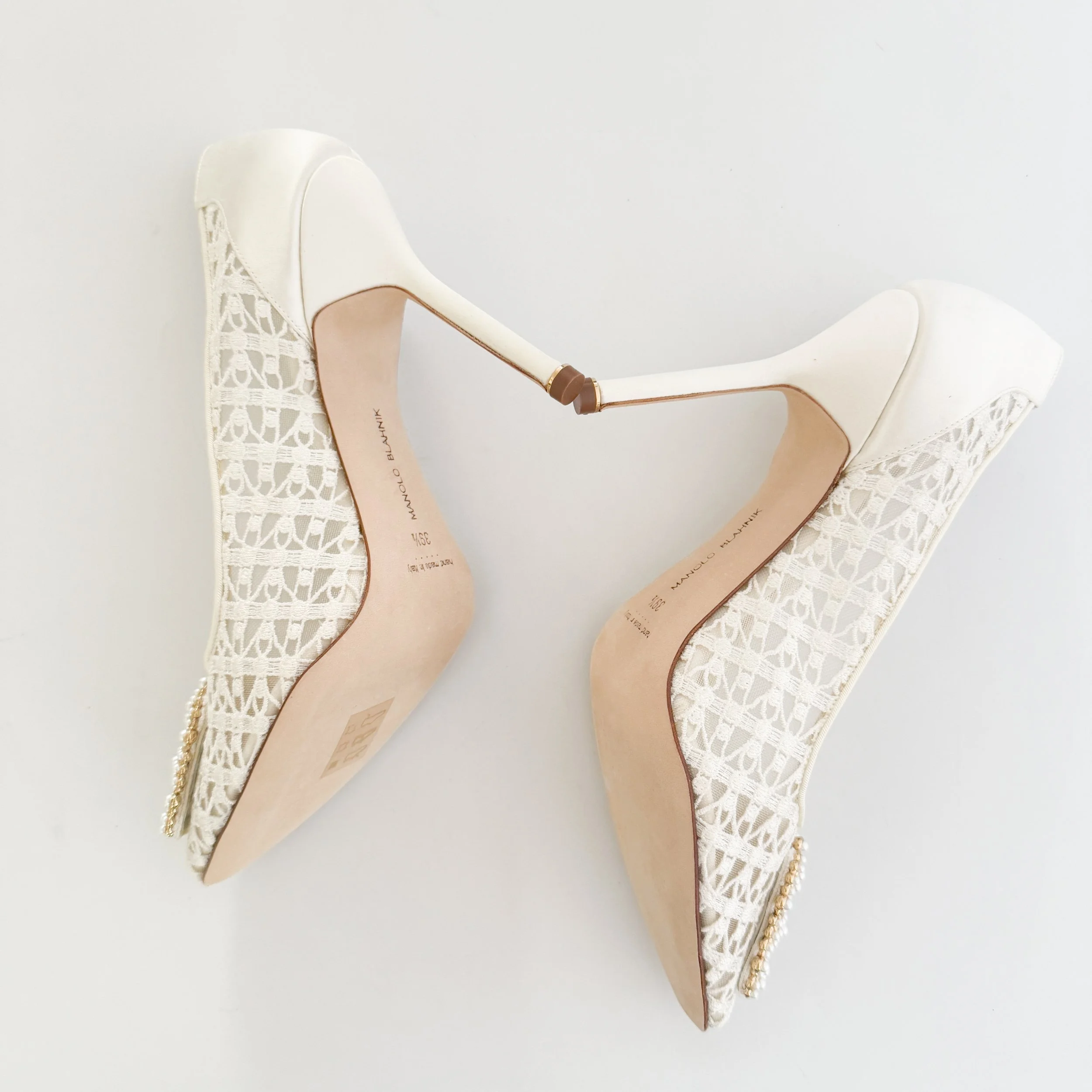 Manolo Blahnik Iconic Ivory Lace Pearl Beaded Heels (US 9 / IT 39.5)