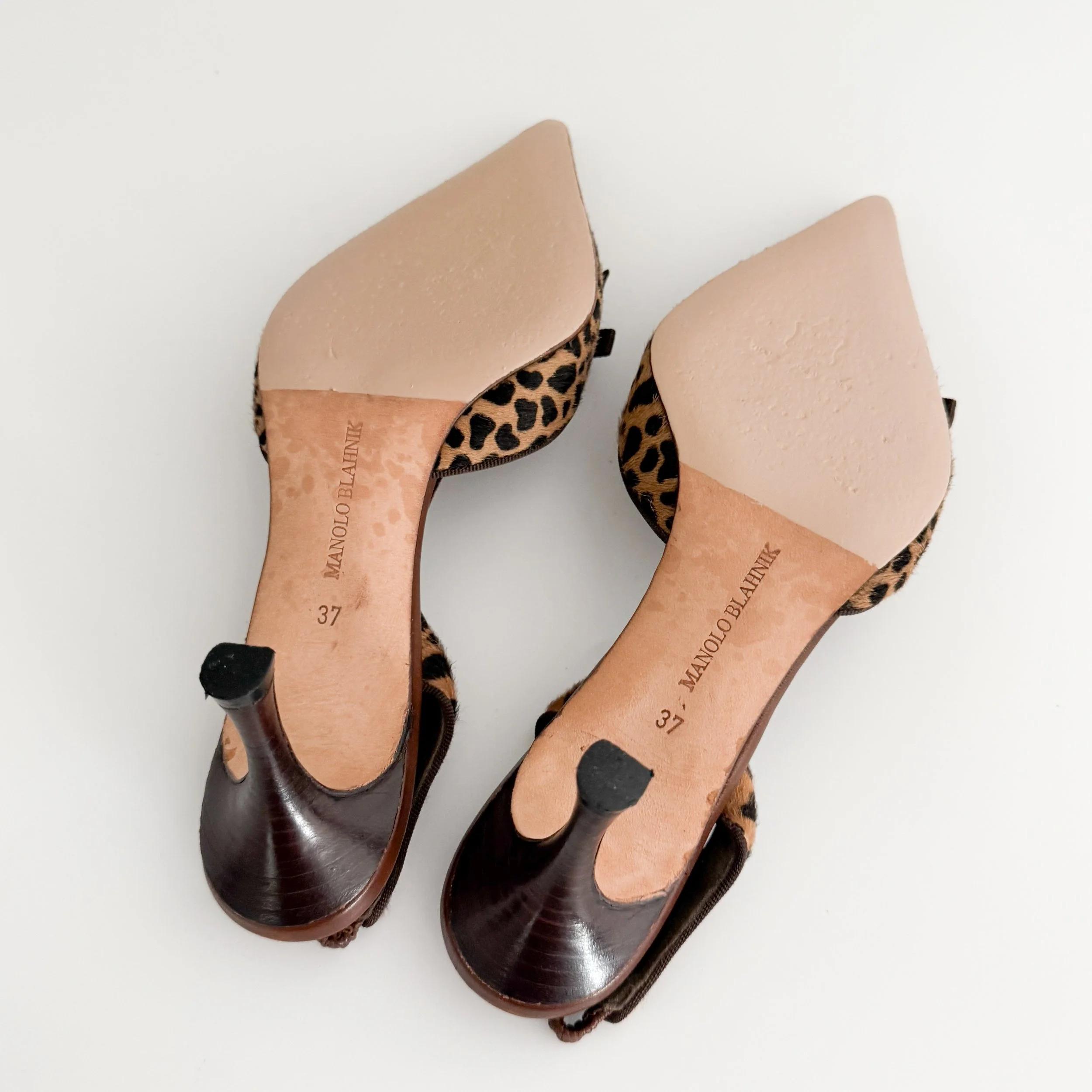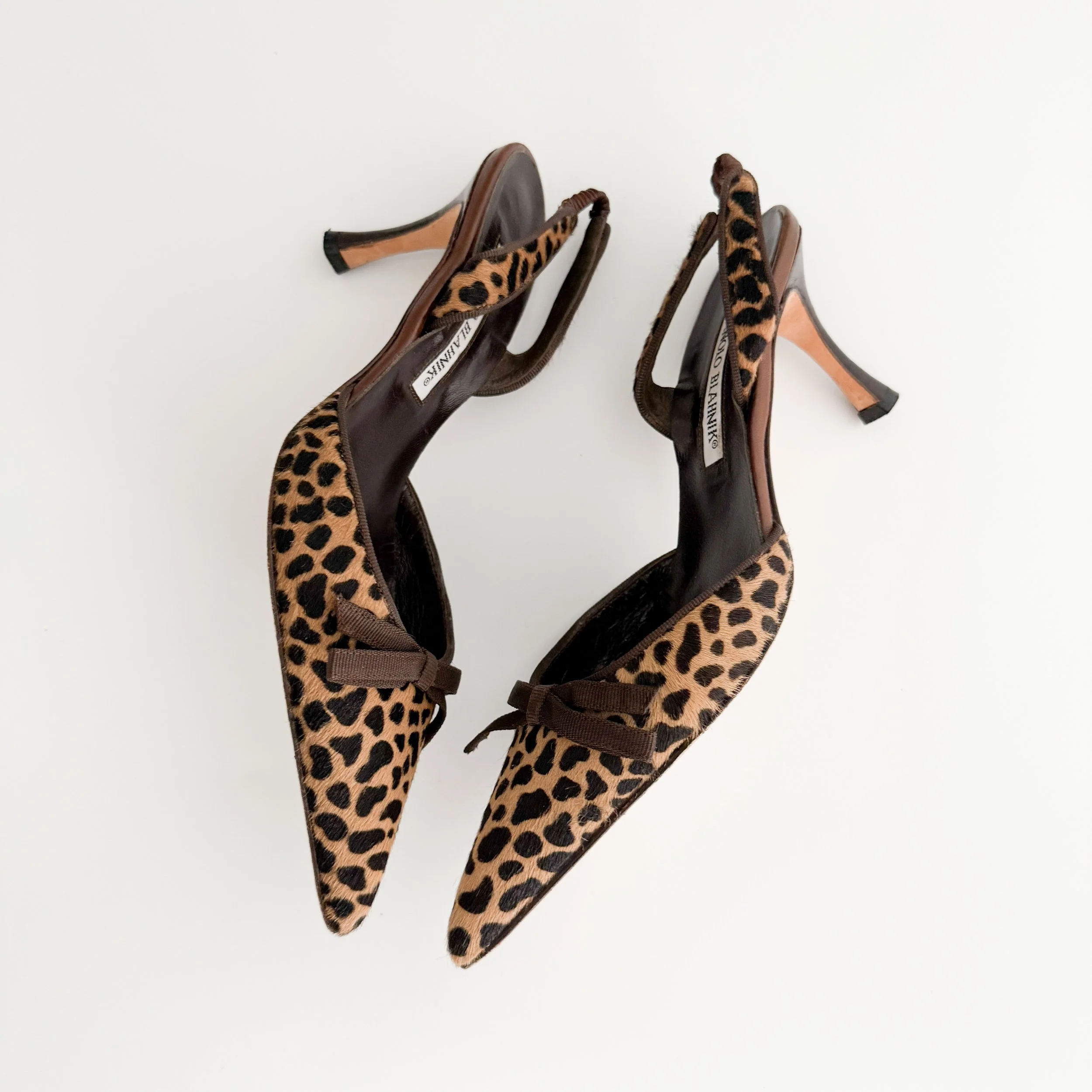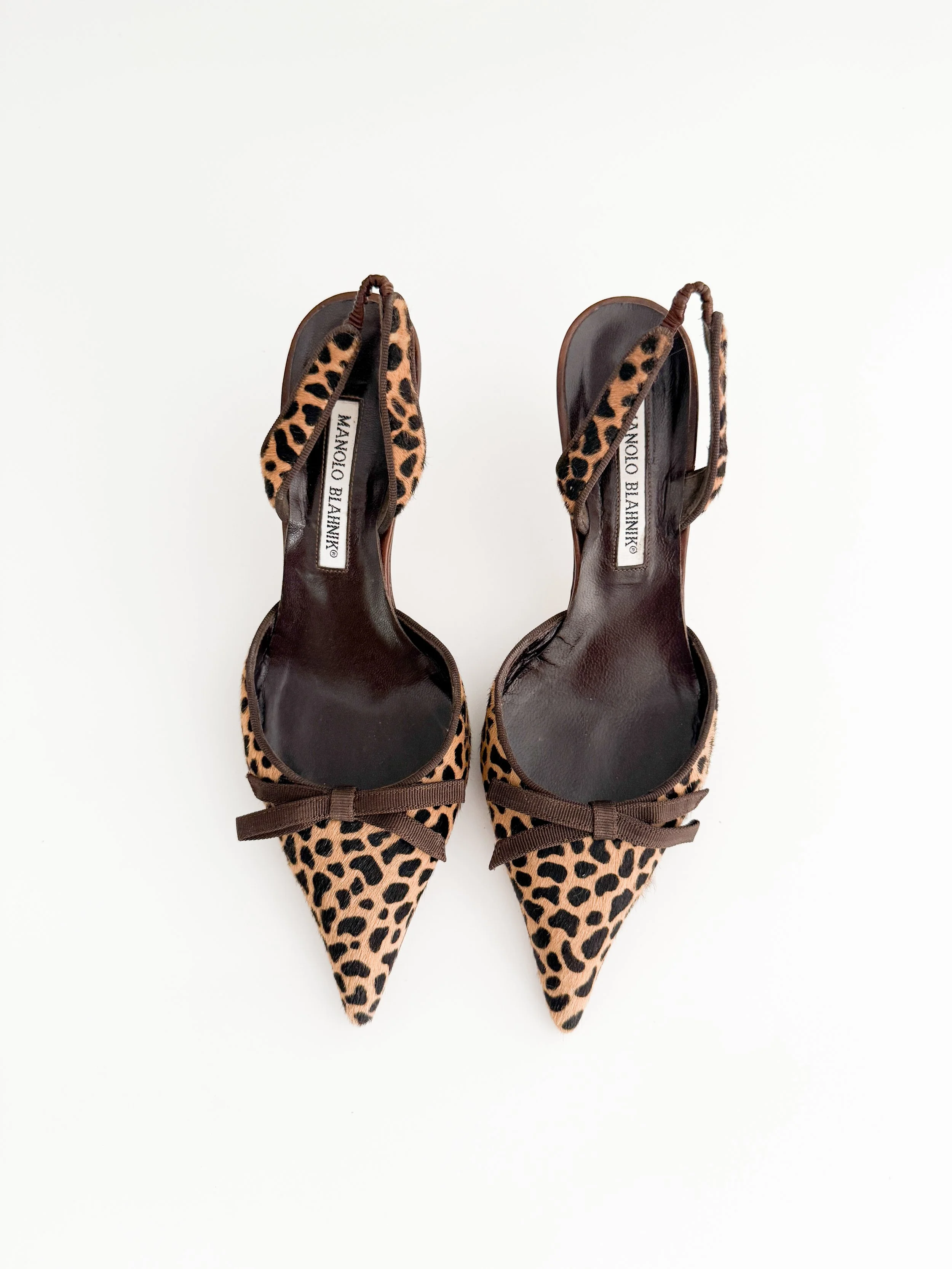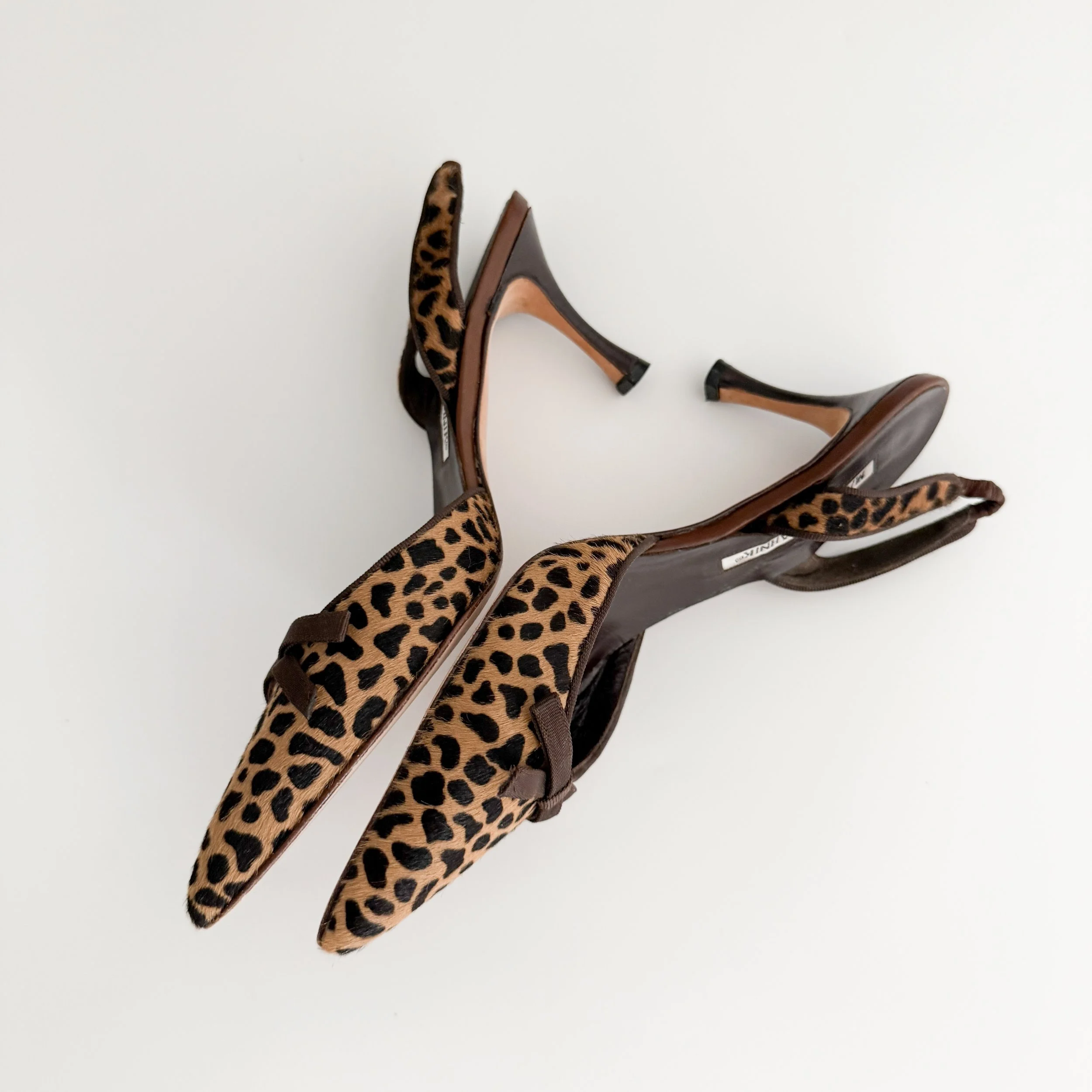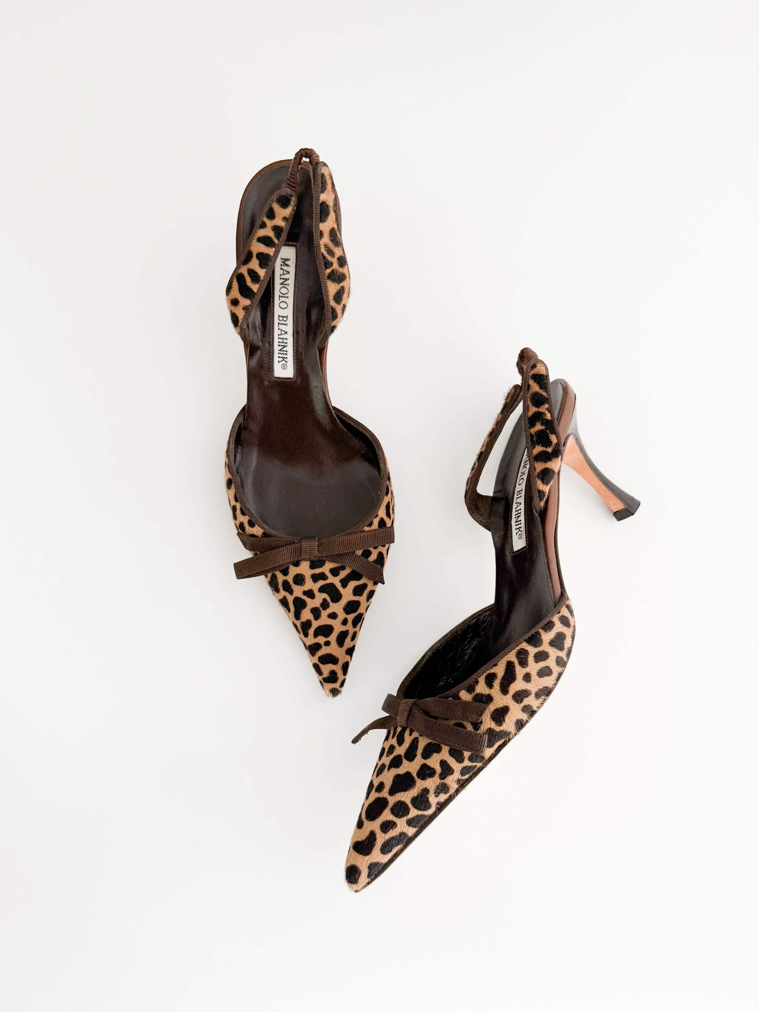 Manolo Blahnik Vintage Pony Hair Animal Print Bow Slingback Heels (US 7 / IT 37)